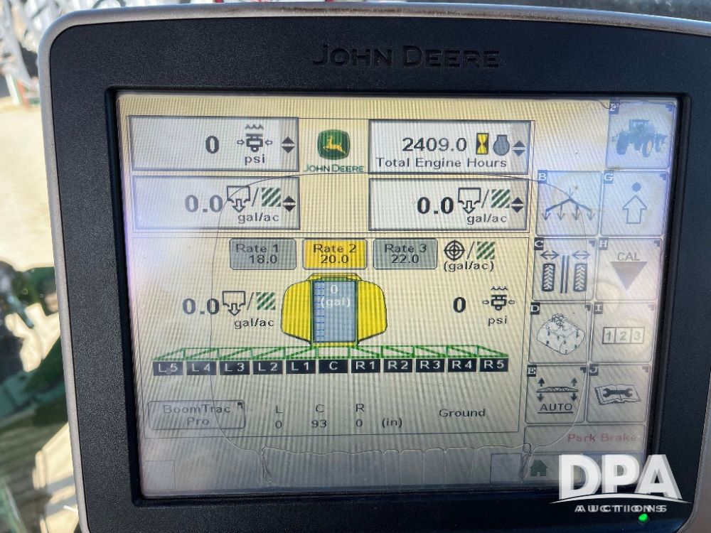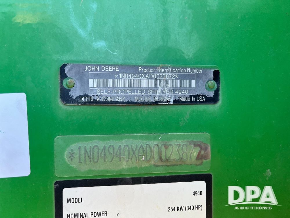 2013 John Deere 4940 Sprayer (DR13247 Unit 97651), John Deere diesel engine, hydrostatic drive, 1200 gallon stainless steel liquid system, 120' boom, Pit Stop load, 5 way nozzle bodies, StarFire 3000 globe, John Deere 2630 display, cab heat/air conditioning, AM/FM CD radio, 380/105R50 row crop tires, shows 2,409 hours.