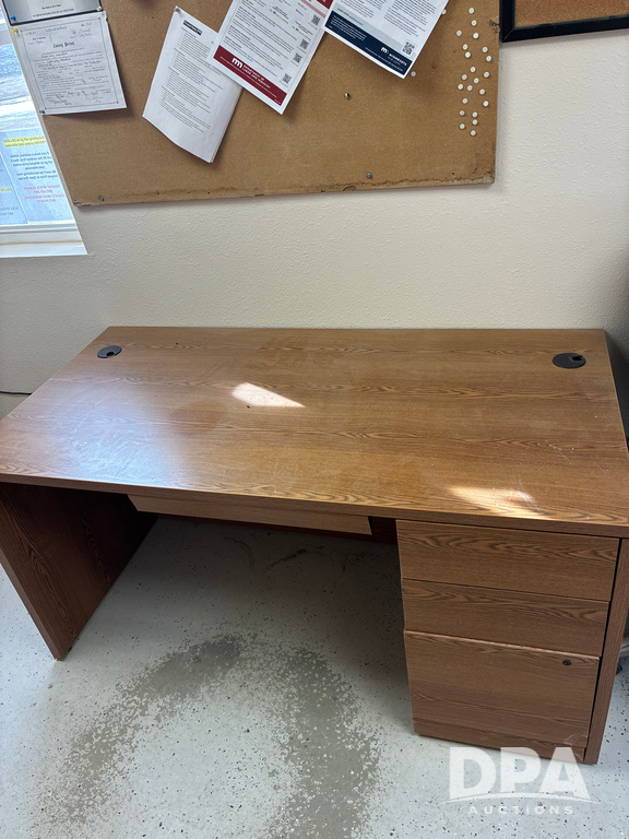 Office Desks (DR13253), metal office desk, wood office desk and chair, all sell as single lot.