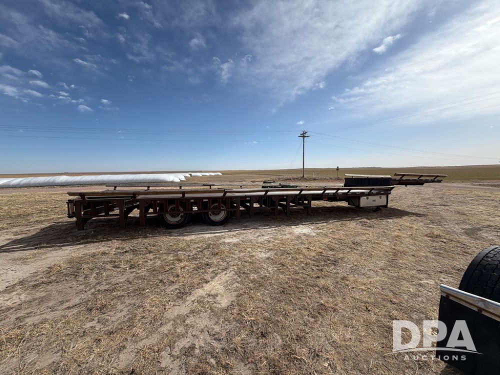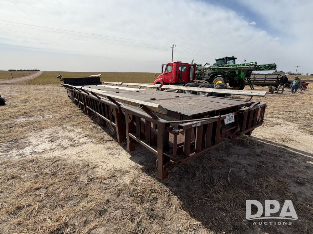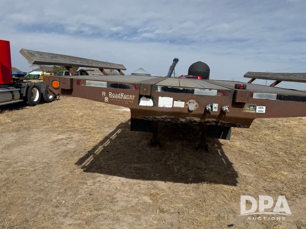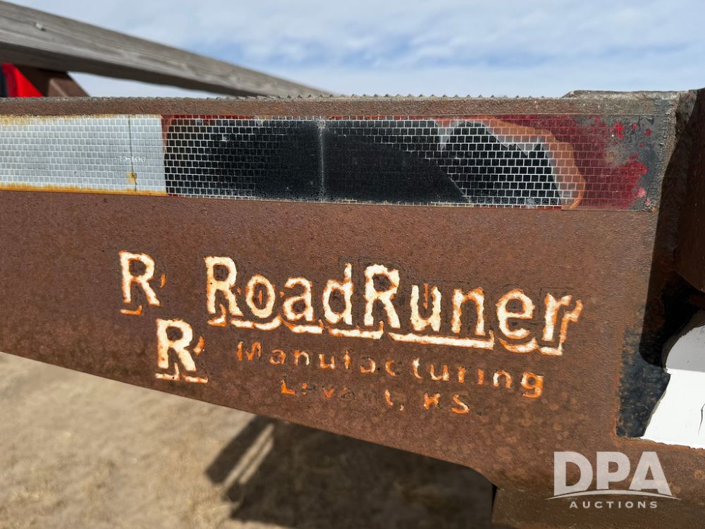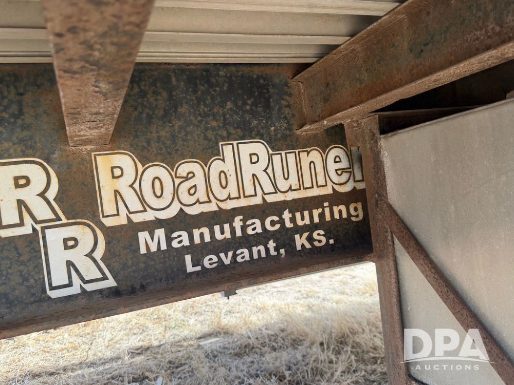 2010 Road Runner Sprayer Trailer (RR0604), semi trailer model 5000, 12-ft wide, aluminum and steel decking, manual slide outs, hyd hookups, 2 Merritt aluminum toolboxes, LED lights, tie down D-Rings, jacks, 255/70R22.5 tires.