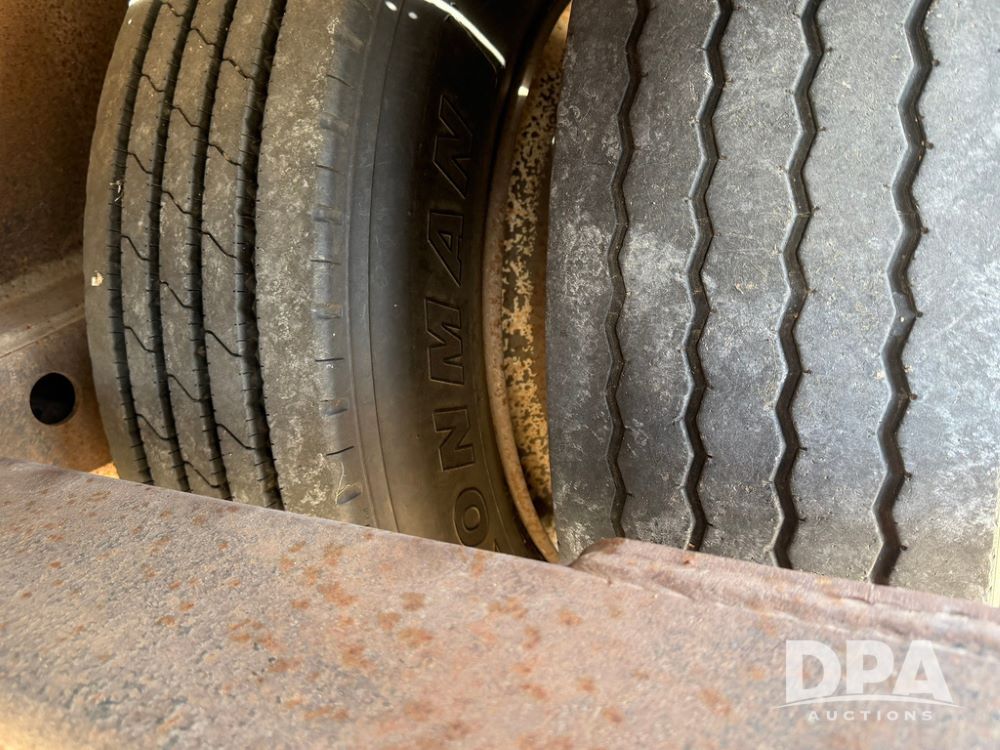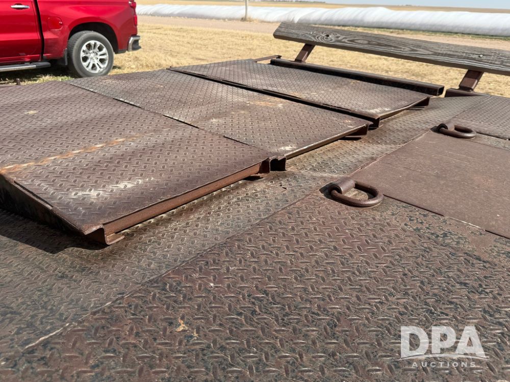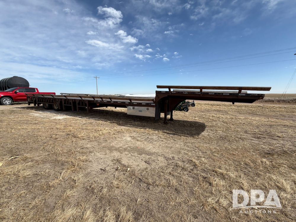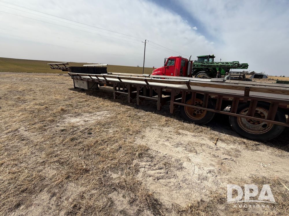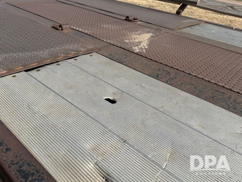 2010 Road Runner Sprayer Trailer (RR0604), semi trailer model 5000, 12-ft wide, aluminum and steel decking, manual slide outs, hyd hookups, 2 Merritt aluminum toolboxes, LED lights, tie down D-Rings, jacks, 255/70R22.5 tires.