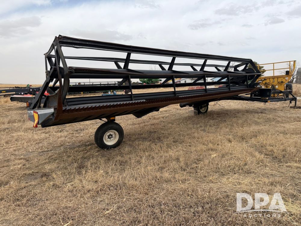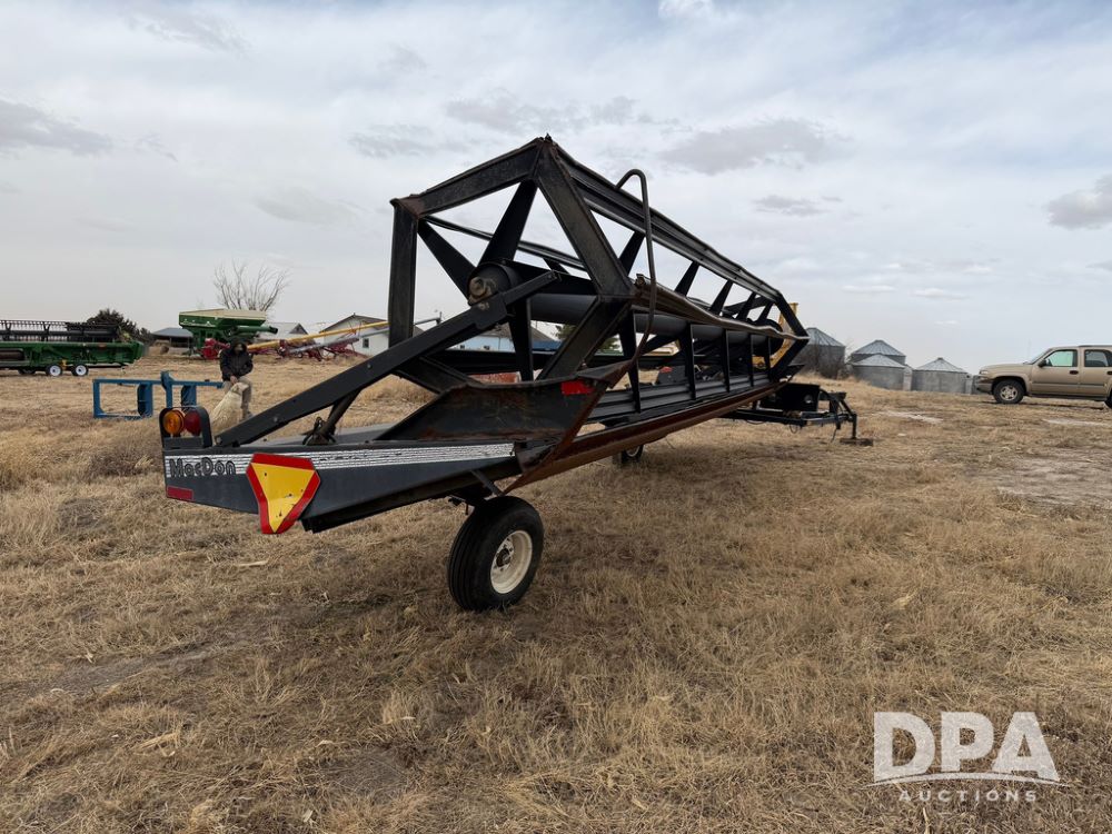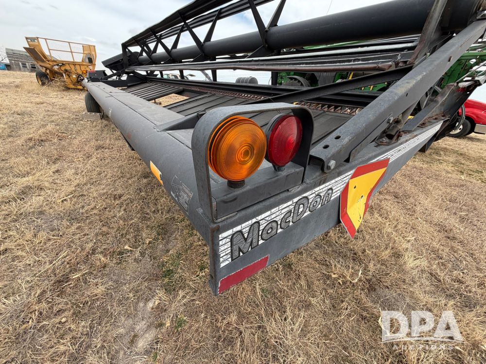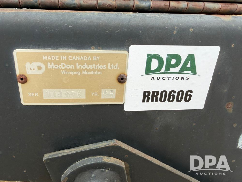 1995 MacDon 3000 Draper Head (RR0606), draper windrower head, 25-ft head, sickle drive, 1000 PTO, hydraulic couplers, 11LX15 tires.