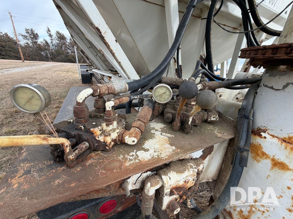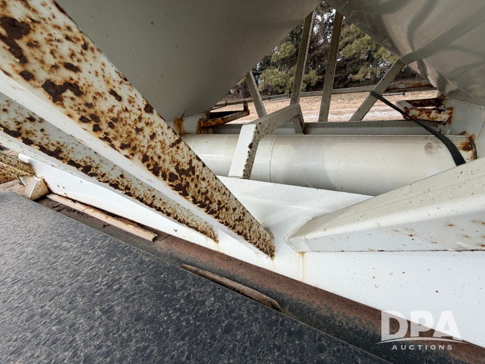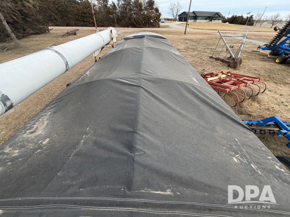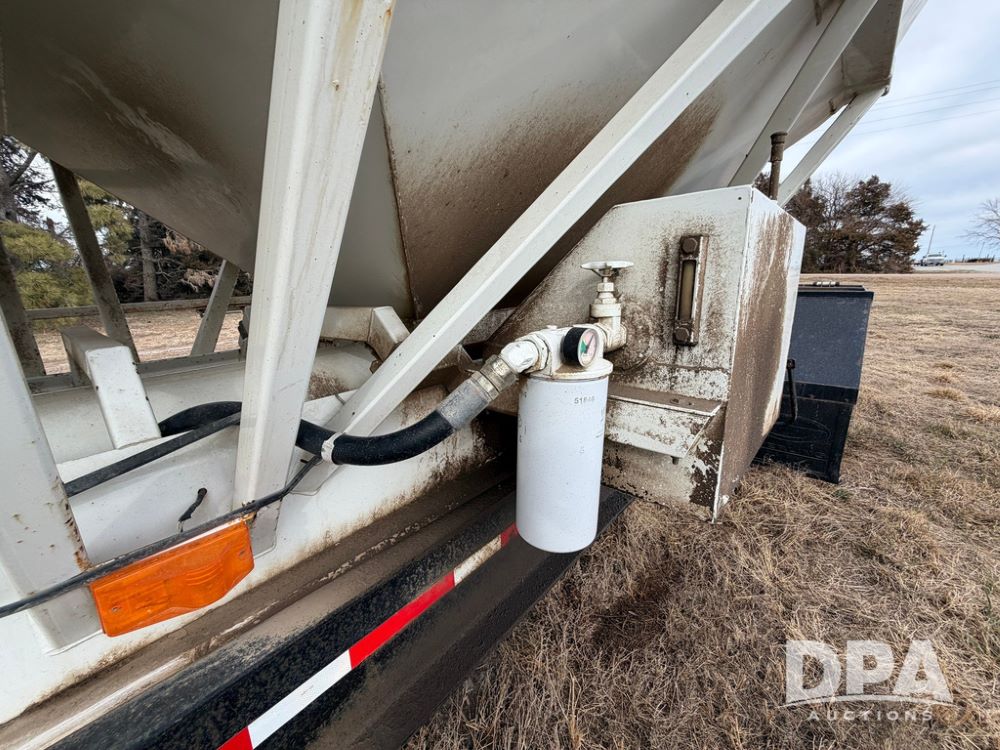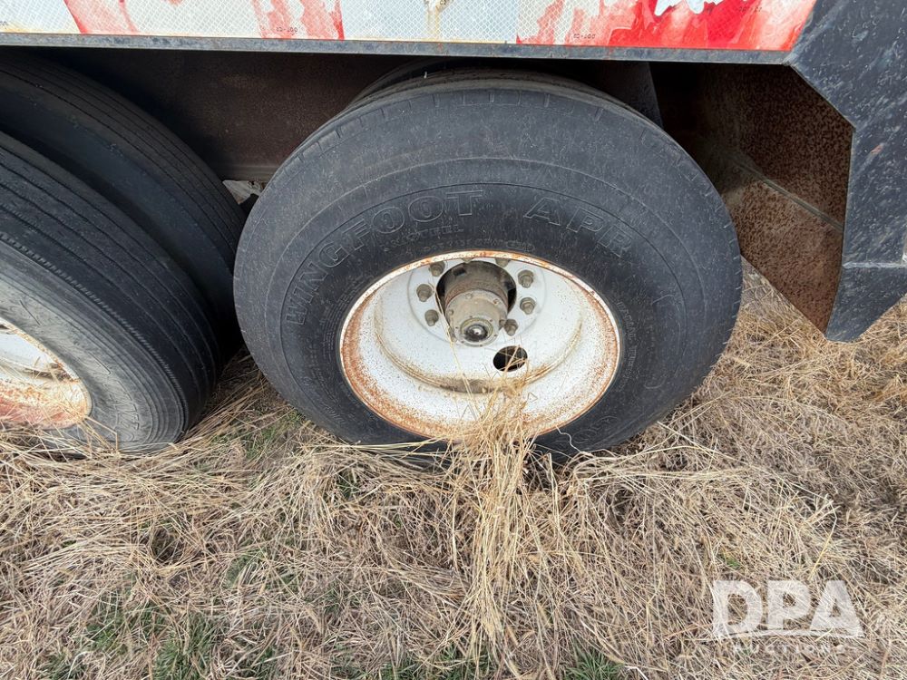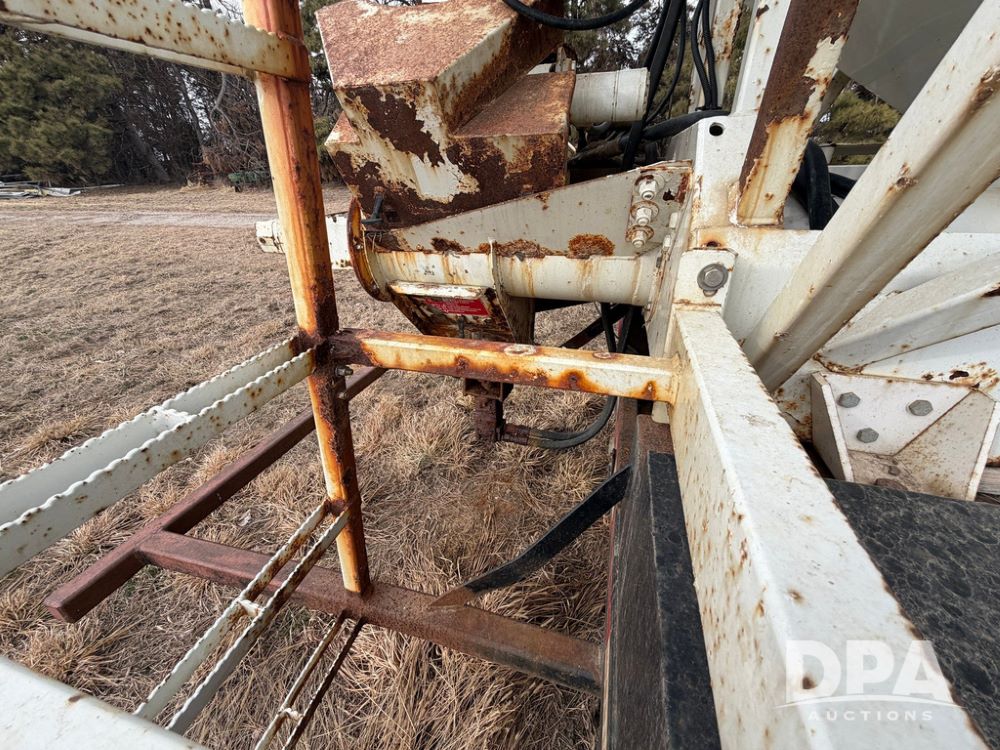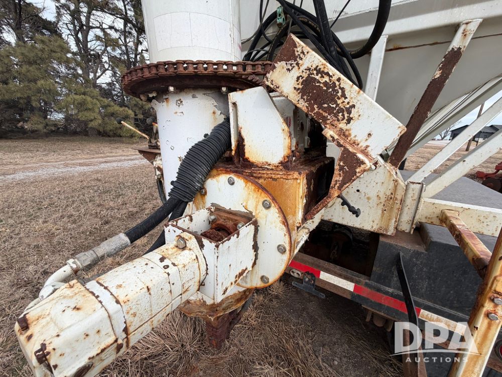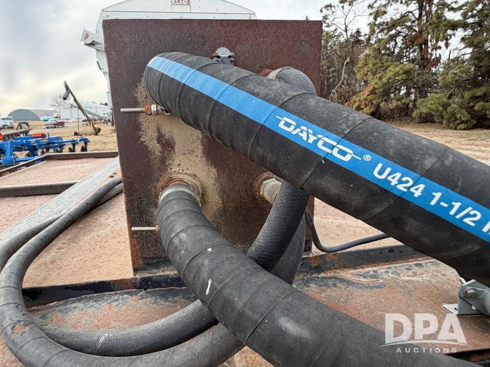 2002 Bauer Built Dry Tender Trailer (RR0613), 38-ft Bauer Built trailer, 11-ft top deck, 28-ft lower deck, air brakes, Loral Flomax compartment dry tender (SN:FM1069), 5 bins, electric SRT-2 roll over tarp, 16-ft unloading swing out top auger, rear controls, rear discharge, 11R22.5 tires.