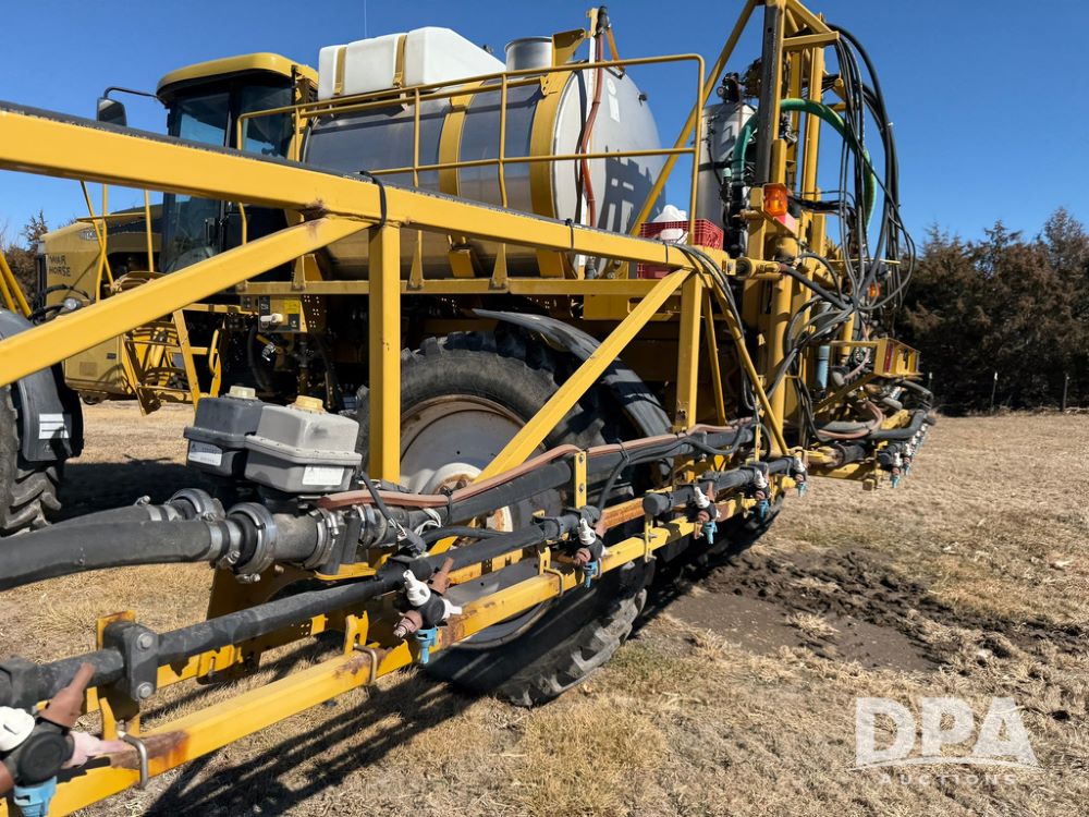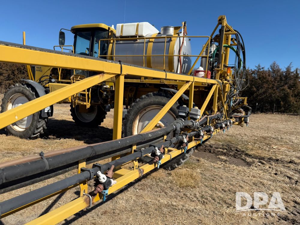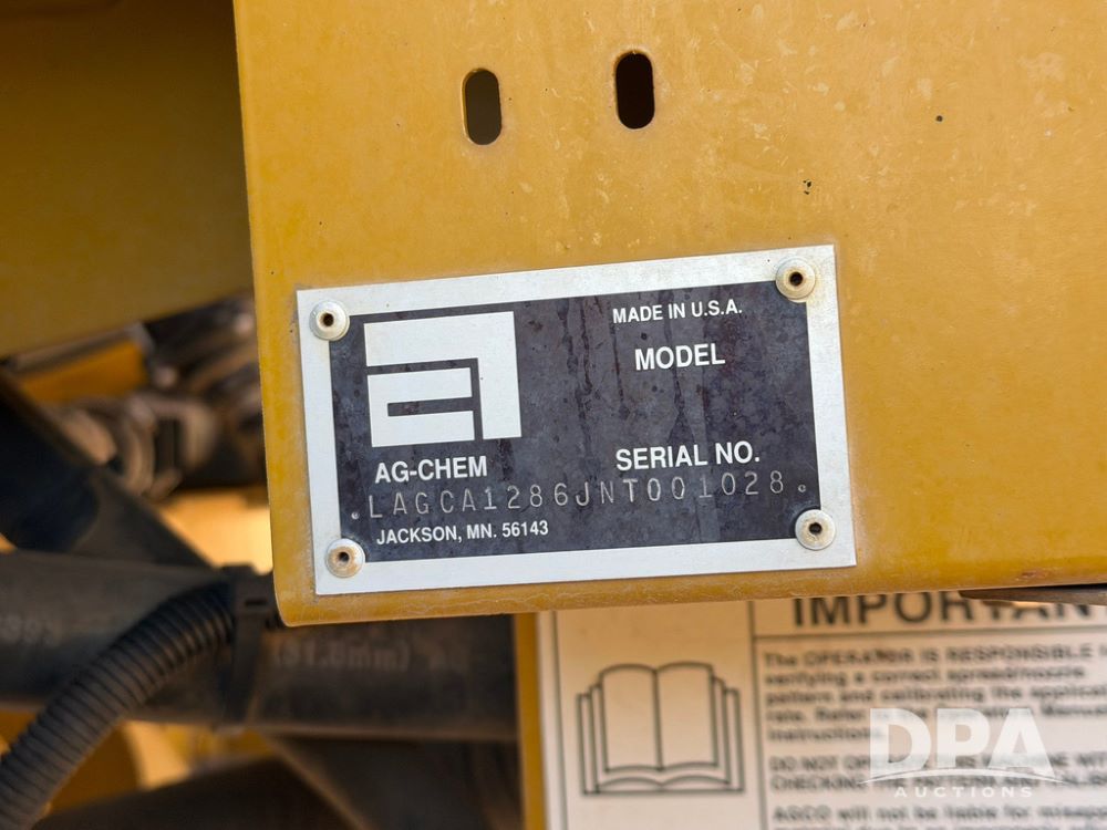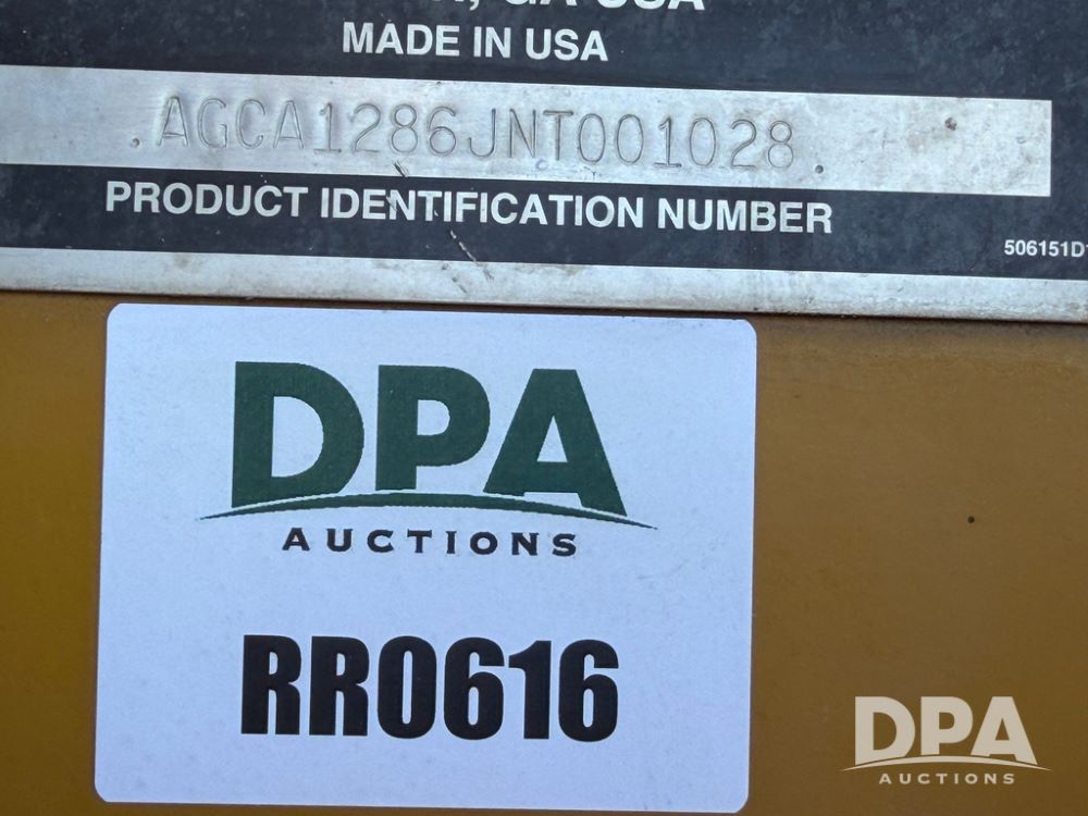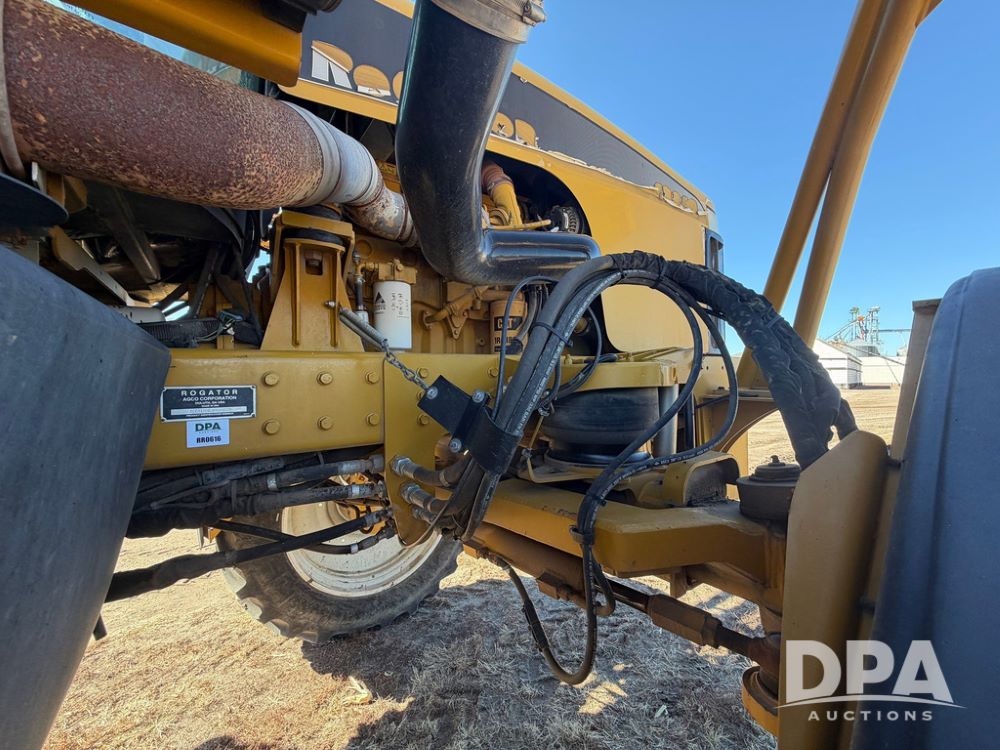 2008 RoGator 1286C Sprayer (RR0616), CAT C9 diesel engine, hydrostatic transmission, 4WD, heat, air conditioning, Delphi AM/FM radio, airbag suspension, hydraulic tread adjust, 1200 gallon stainless steel liquid system, 90' steel boom, poly wet boom plumbing, 3" side fill, poly inductor system, Hypro product pump, 36 gallon stainless steel foam marker tank, 20" off center boom plumbing, 5 way nozzle bodies, fenders, 380/90R46 tires, Raven autosteer, Raven Section control, Raven Viper Pro monitor, shows 3,200 hours.