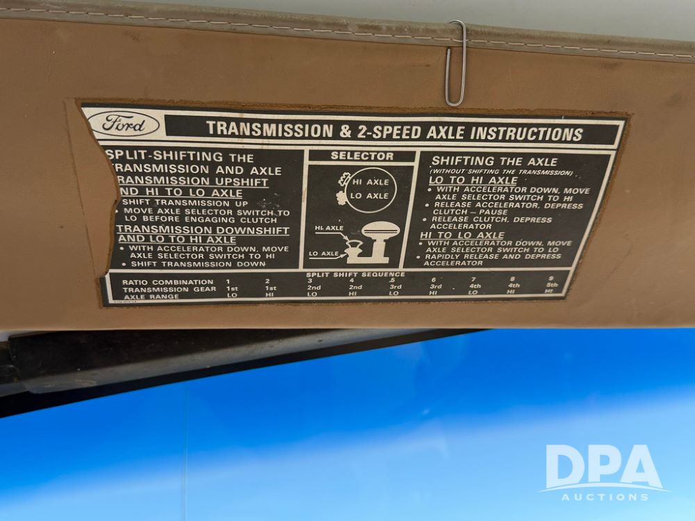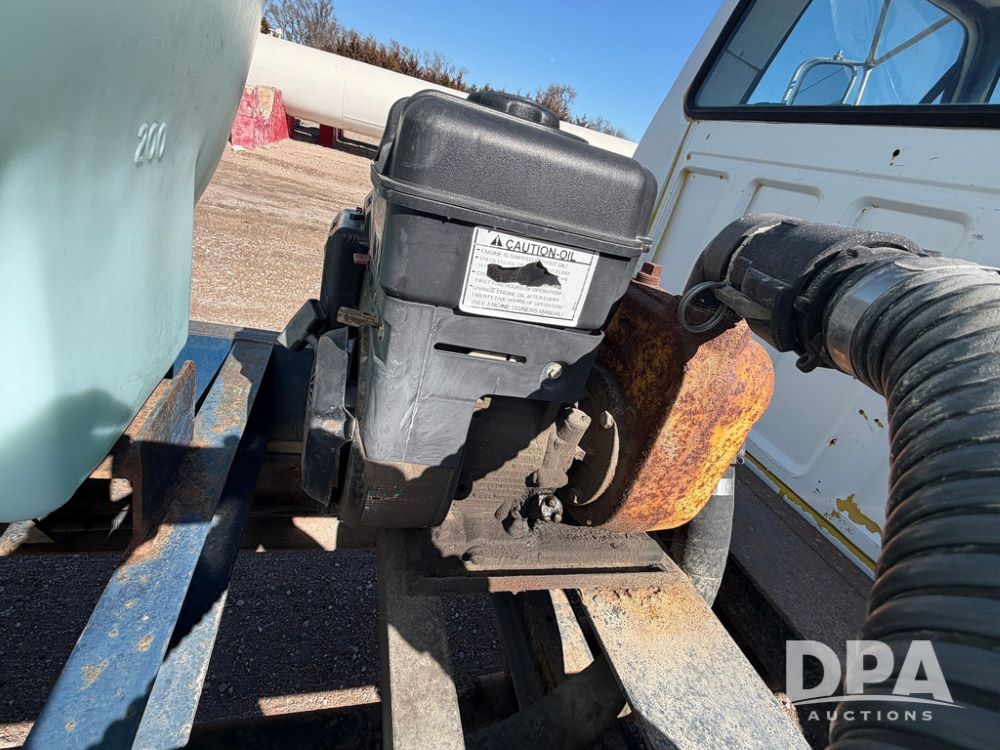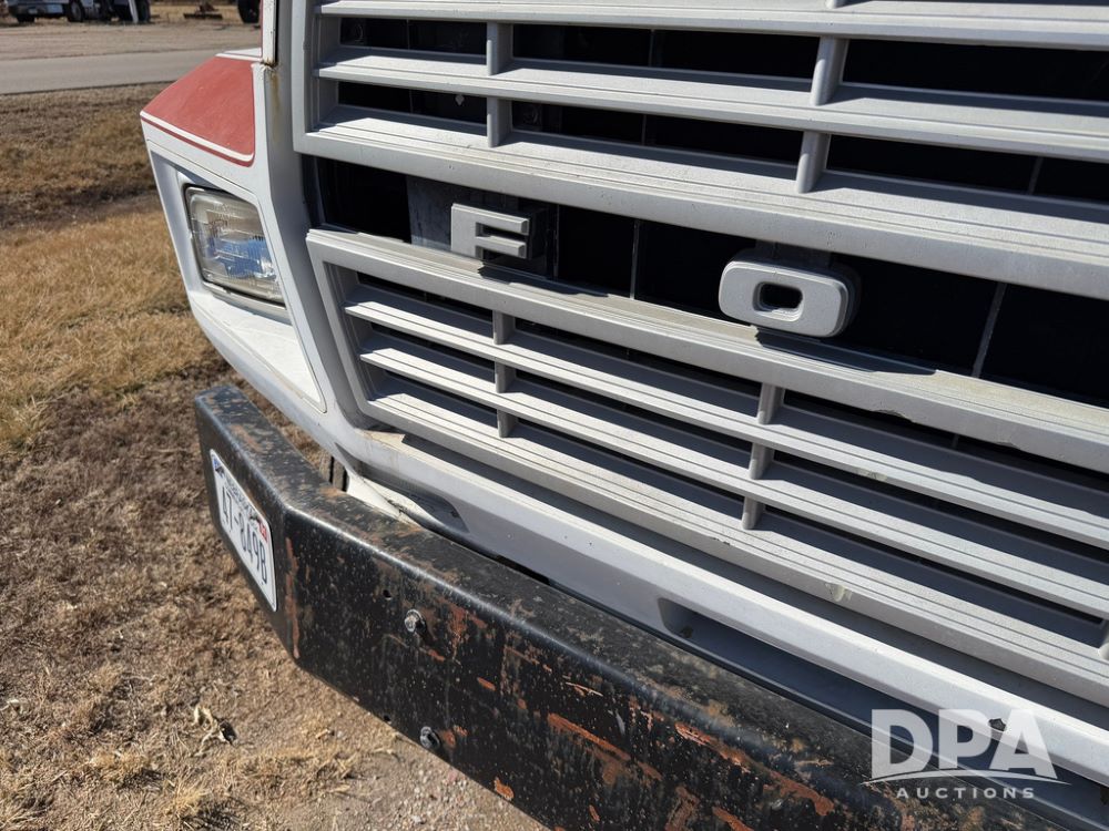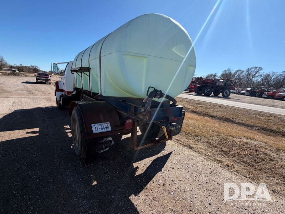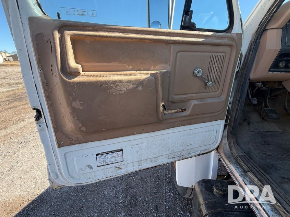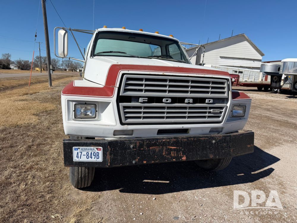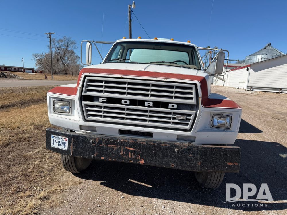 1983 Ford F800 Nurse Truck (RR0618), V-8 379CI gas engine, 5 speed manual transmission, heat, bucket seats, AM radio, 1,600 gallon poly leg tank, 5.5 HP Briggs Stratton pump, includes all plumbing, High/Lo axle, rear hitch, mud flaps, 10.00R20 front tires, 11R22.5 rear tires, steel finders, shows 68,554 miles.