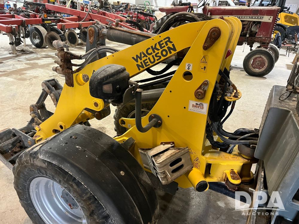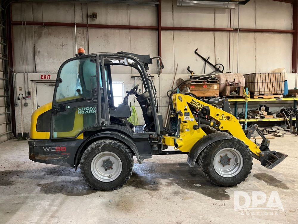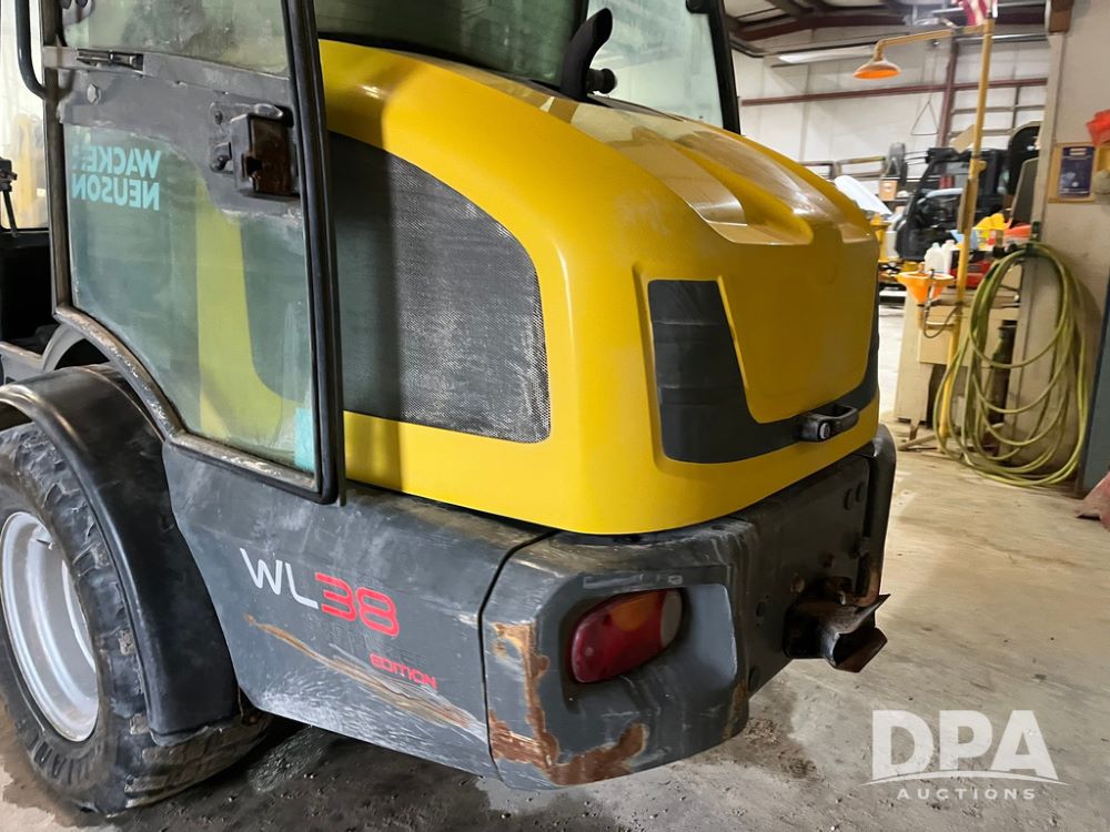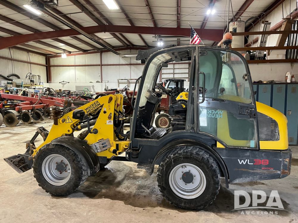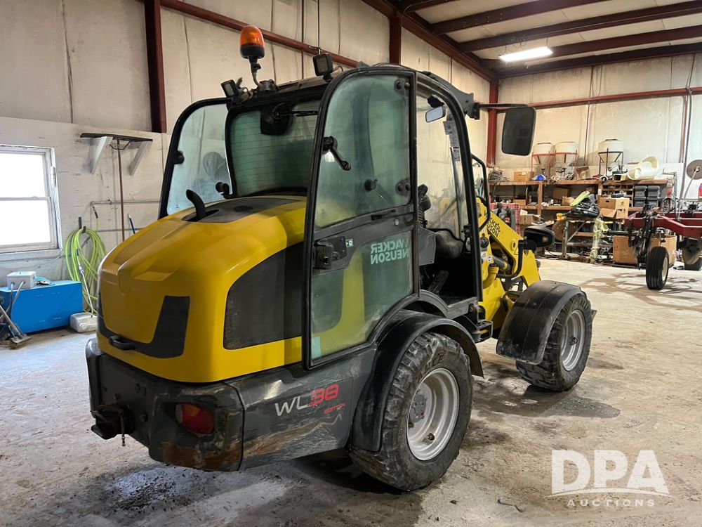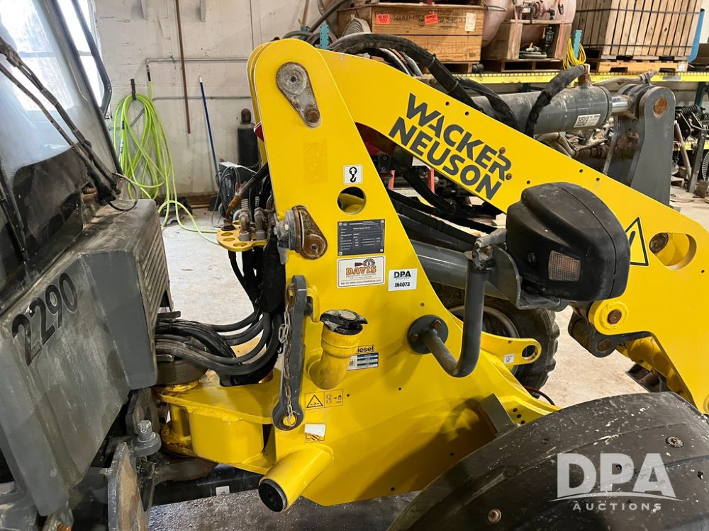 2021 Wacker Neuson WL38 Loader (JN4073, Unit 2290), diesel engine, shuttle shift transmission, cab, lights, no bucket, auxiliary hydraulics, Alliance 15.5/55R18 tires, fenders, shows 1,474 hours.