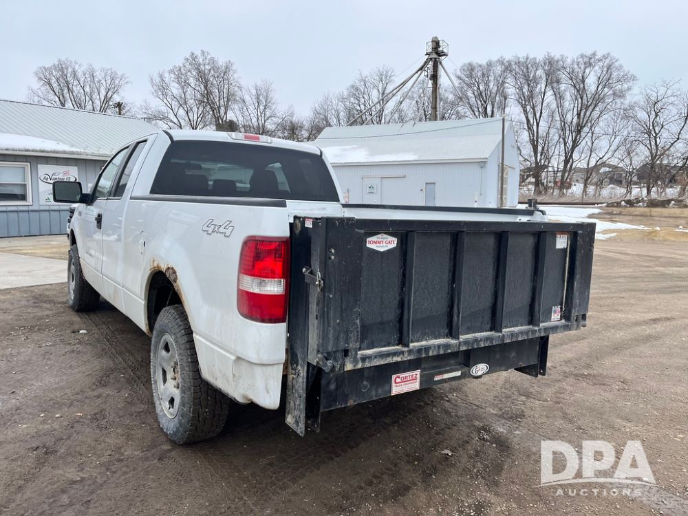 2008 Ford F150 XLT Extended Cab Pickup (JN4075, Unit 343), 4x4, Triton 5.4L gas engine, automatic transmission, air conditioning, heat, Am/Fm CD radio, cruise control, power windows & locks, rear Tommy Lift (S/N 00680832), 1300 lbs, LT245/70R17 tires, shows 230,041 miles.