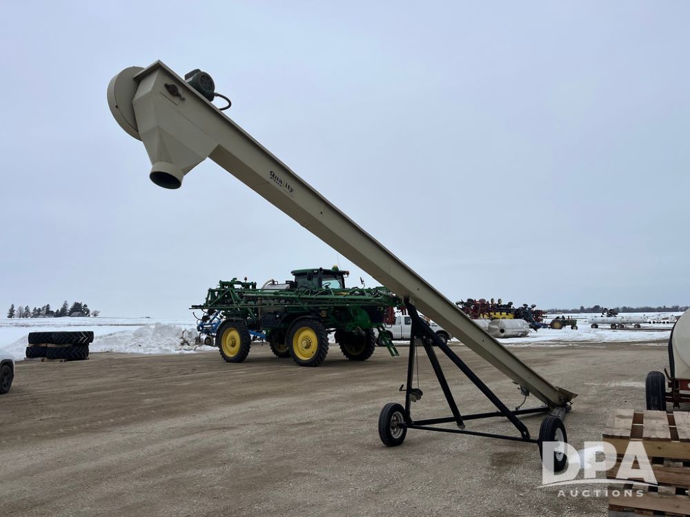 Quality Plus Seed Conveyor (JN4081, Unit 980), Quality Plus model 530ET seed conveyor, electric motor, portable, ST175/80R13 tires.