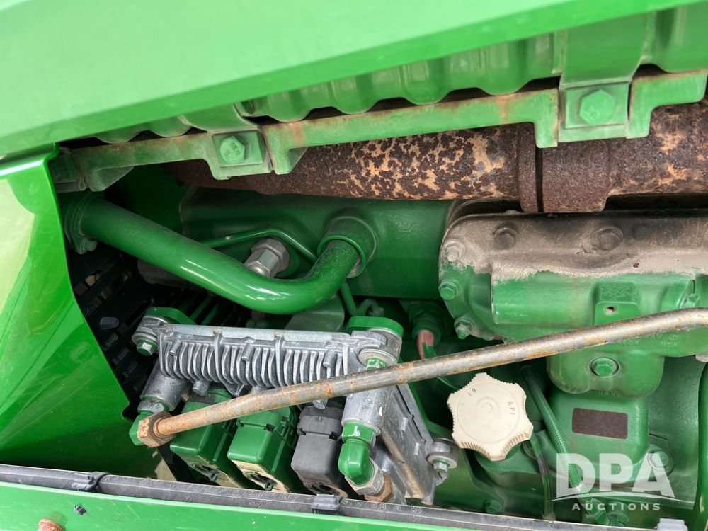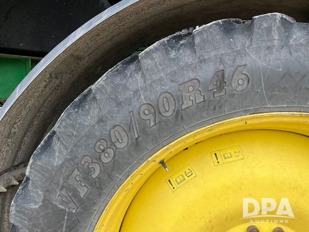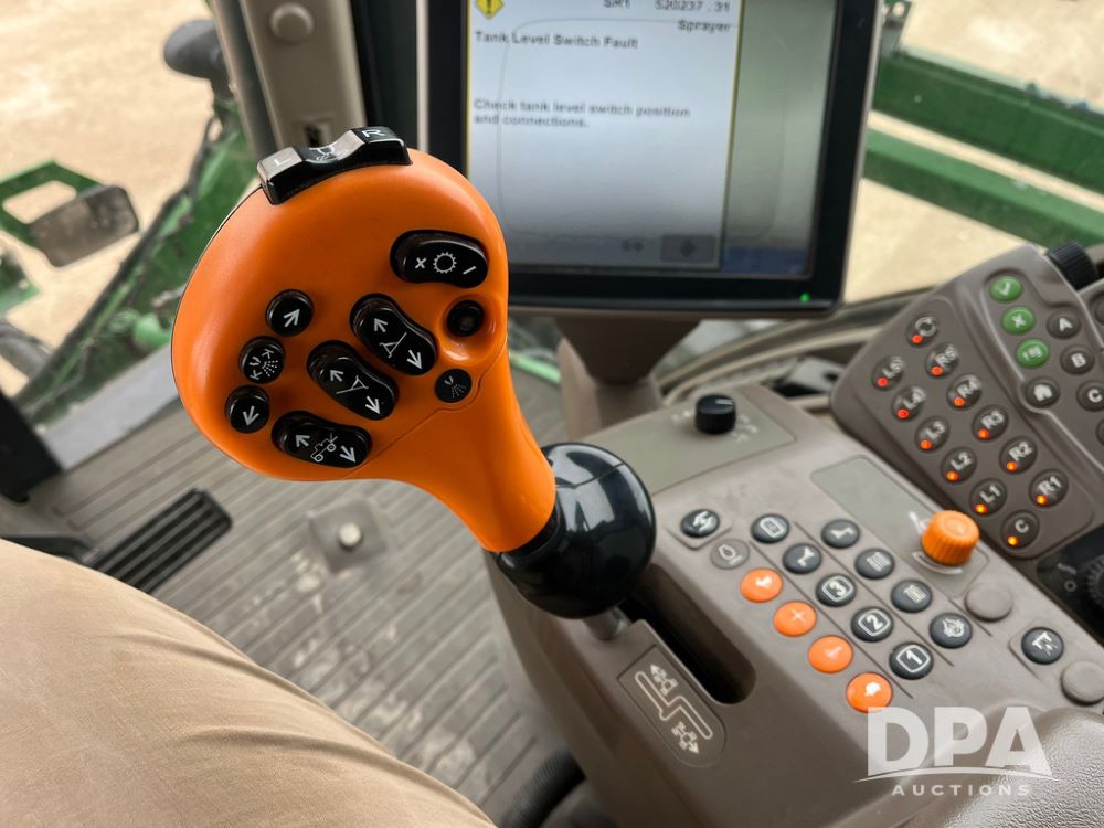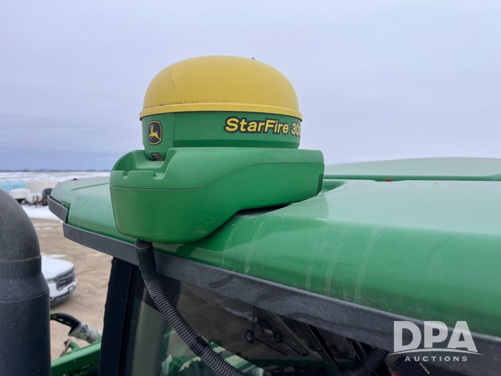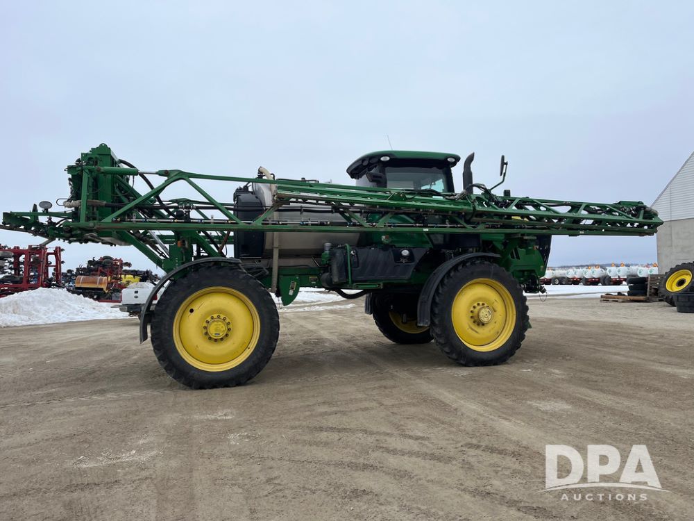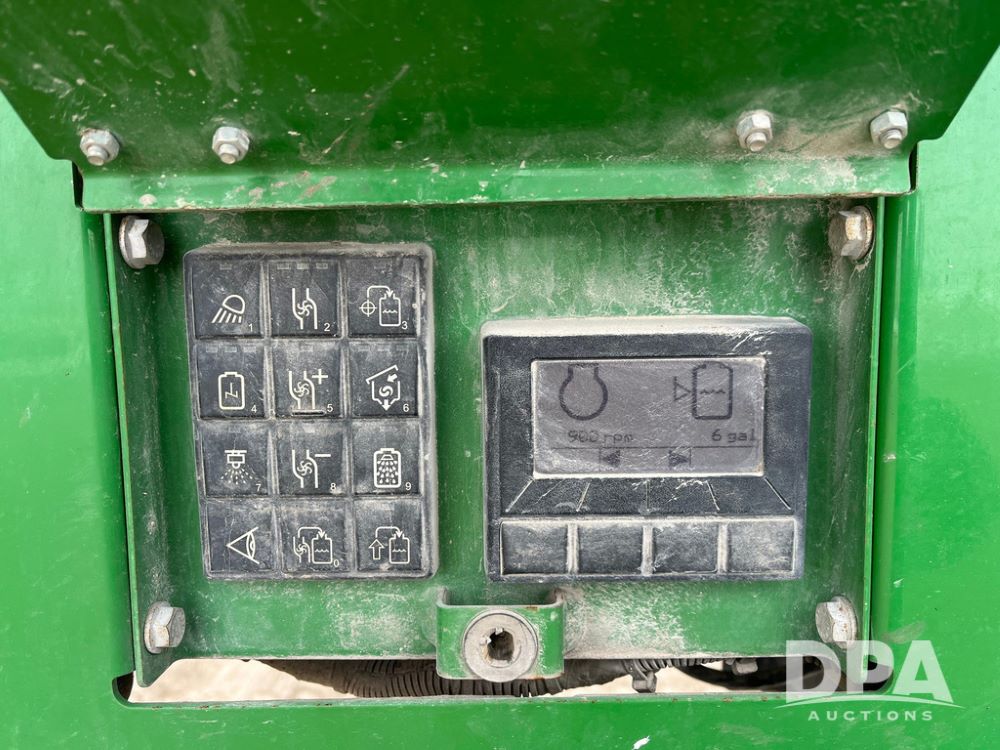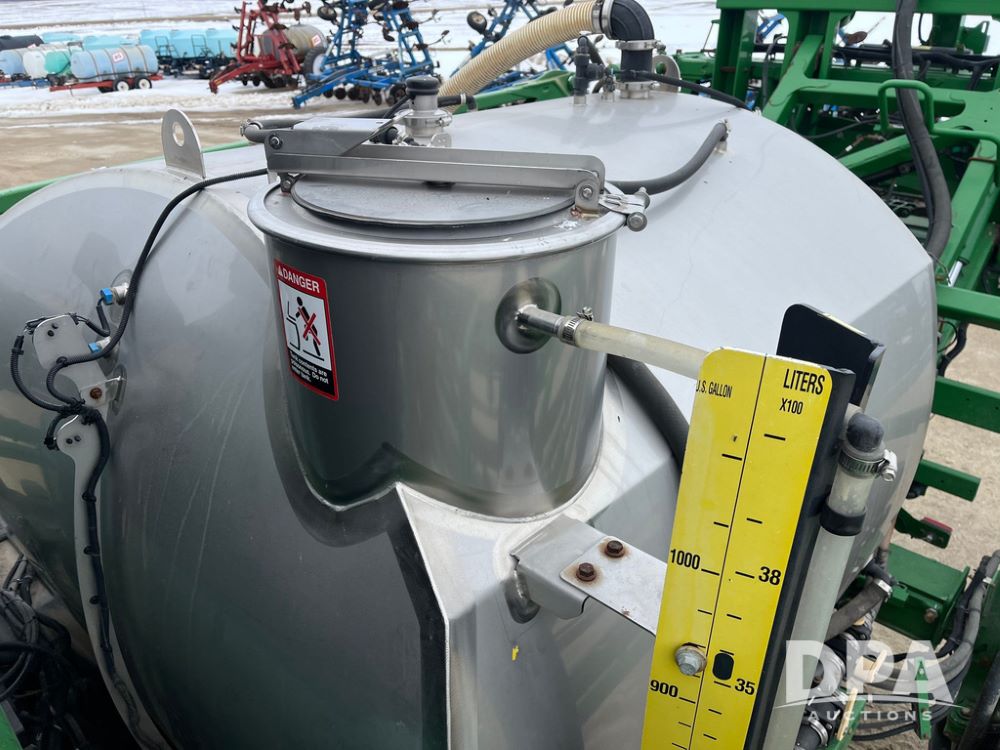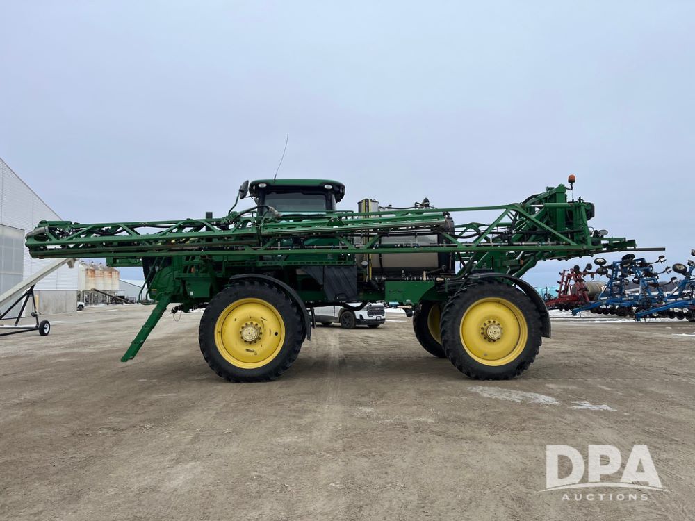 2015 John Deere R4038 Sprayer (JN4078, Unit 1586), John Deere diesel engine (S/N RG6090U013874), hydrostatic transmission, air conditioning, heat, Am/Fm CD radio, leather seat, buddy seat, beacon lights, 1000 gallon stainless steel liquid system, 120' boom, rear poly rinse tank, automatic solution control, front fill, BKT Agrimax Spargo VF380/90R46 tires, fenders, John Deere StarFire 3000 globe, John Deere monitor, shows 2,384 hours.