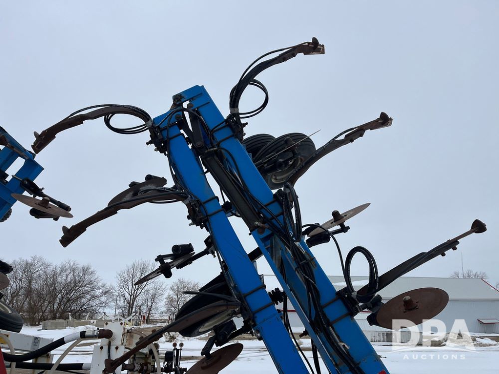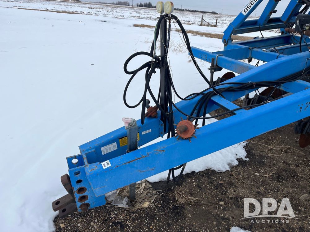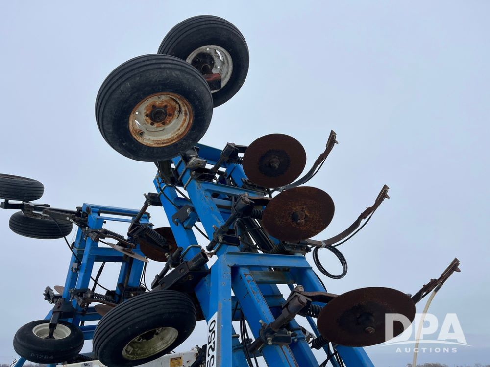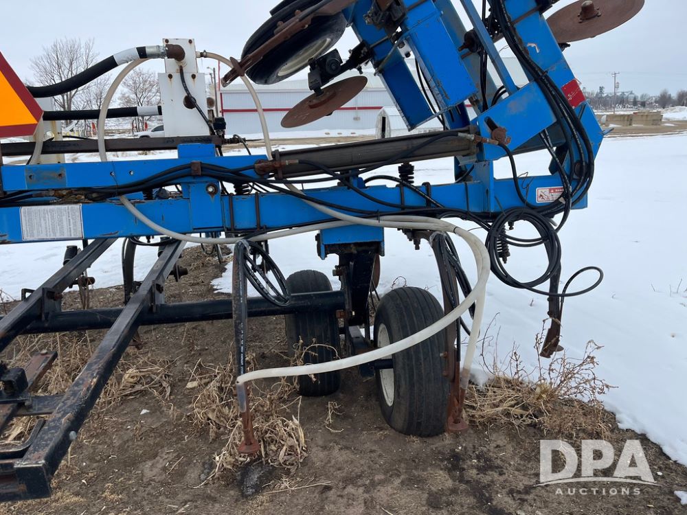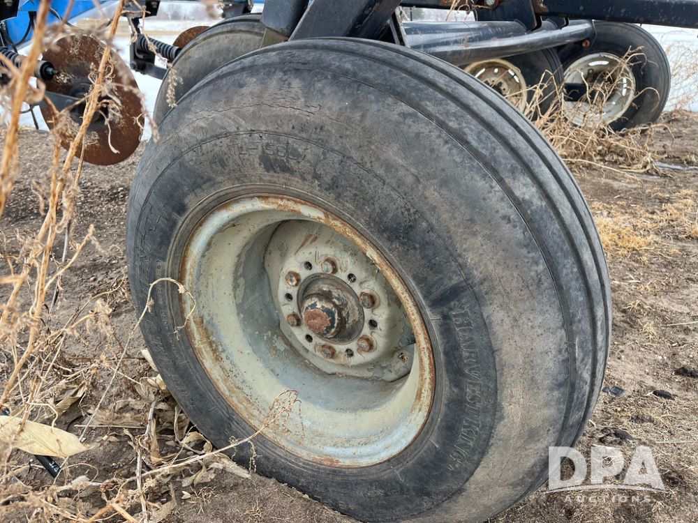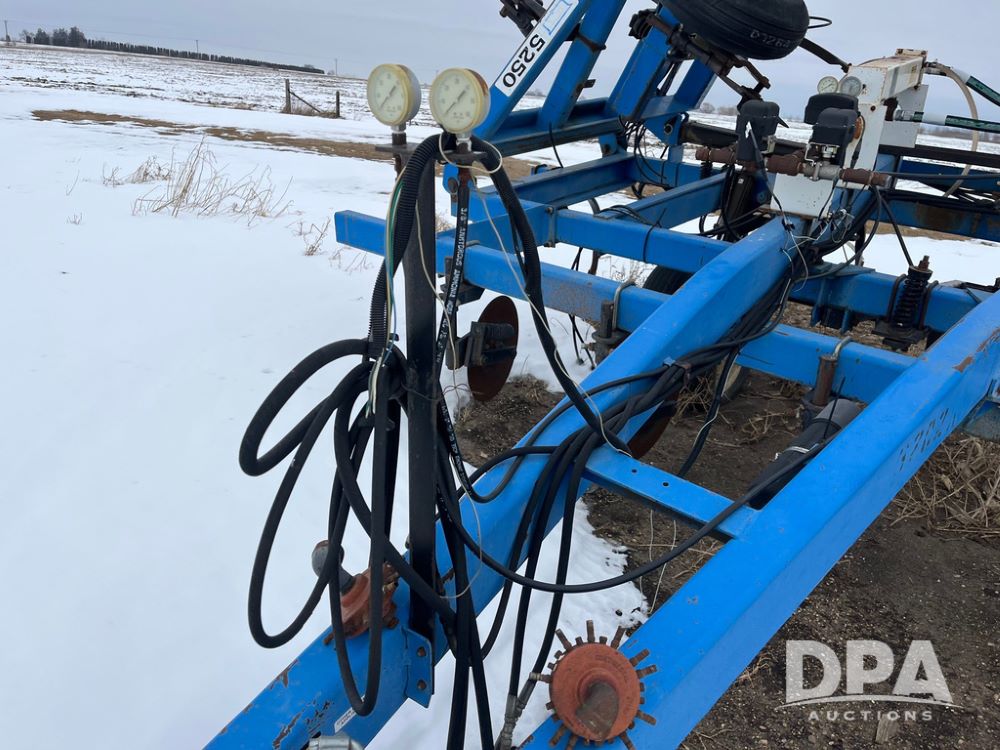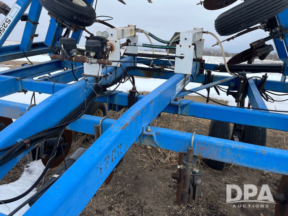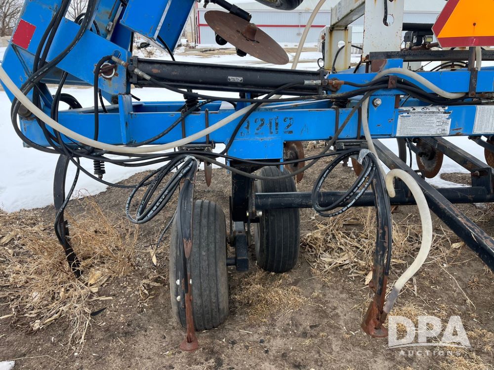 2001 DMI 5250 NH3 Tool Bar (JN4082, Unit 3202A), 2001 DMI 5250 19 knife pull type tool bar, coulters, Double Raven Super coolers, hydraulic wings, walking tandems, walking tandems on wings, rear hitch, 11L-15 flotation tires.
