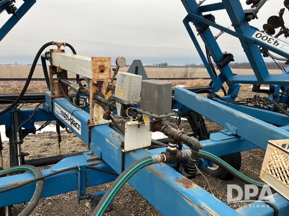 DMI 4300 NH3 Tool Bar (JN4088, Unit 35191), DMI 4300 15 knife pull type tool bar, coulters, Raven Super cooler, hydraulic wings, rear hitch, 12.5L-15 flotation tires.