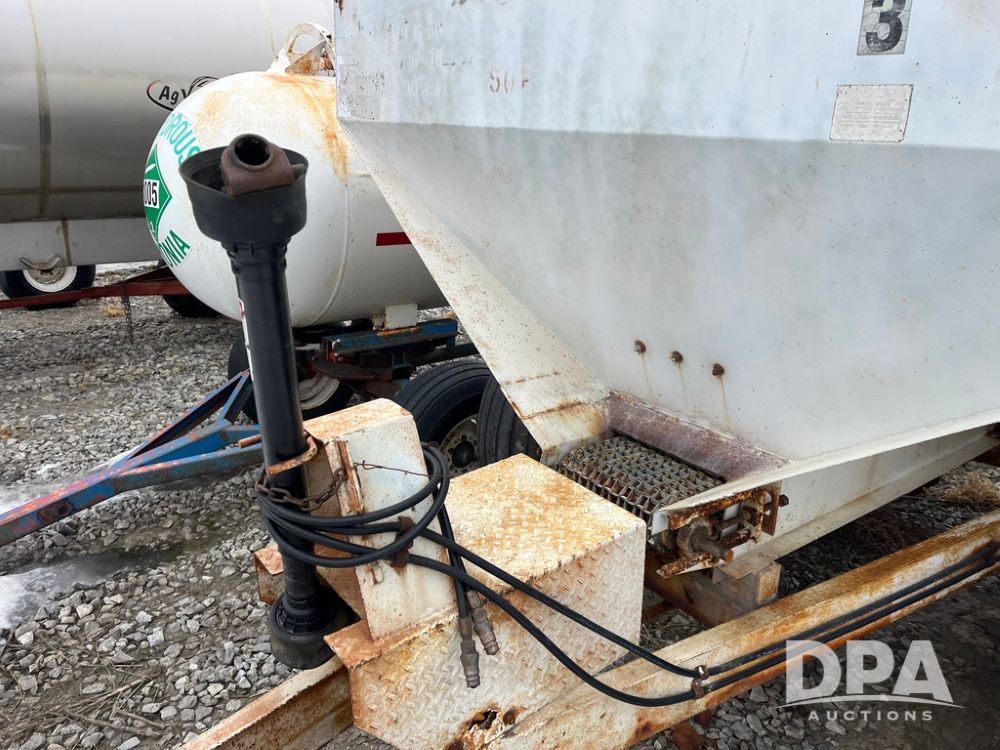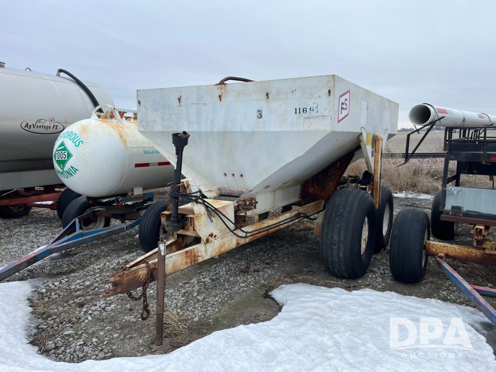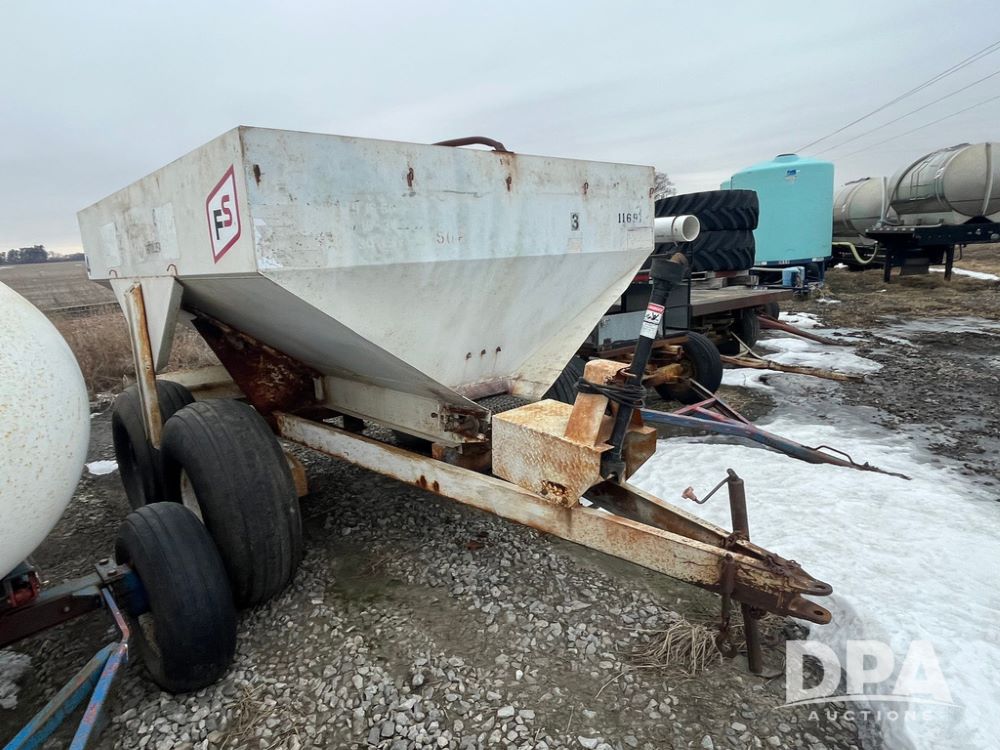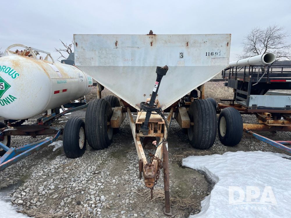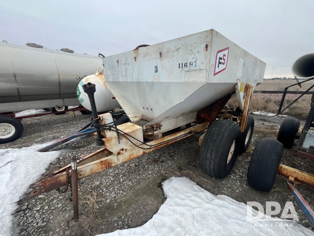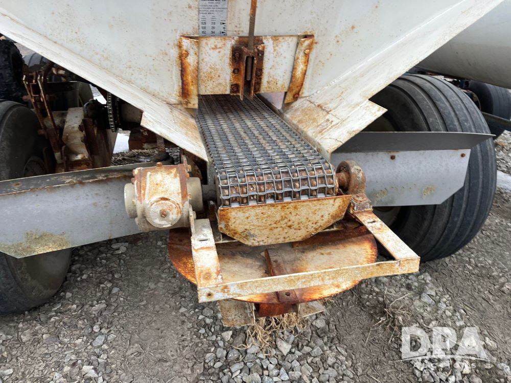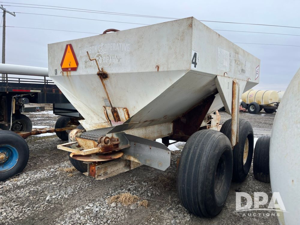 Simonsen Dry Spreader (JN4093, Unit 1169), Simonsen dry spreader, single spinner, PTO, tandem axle, 16.5L-16.1 flotation tires.