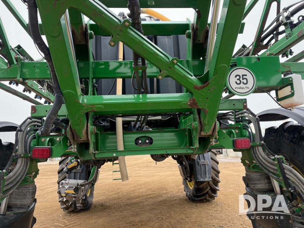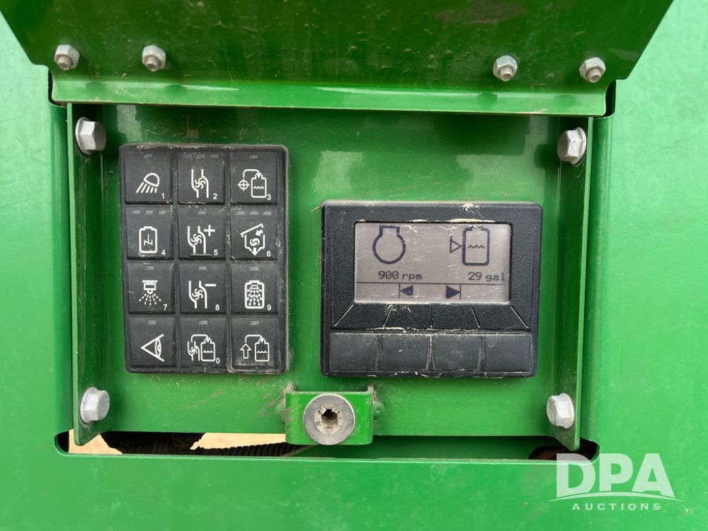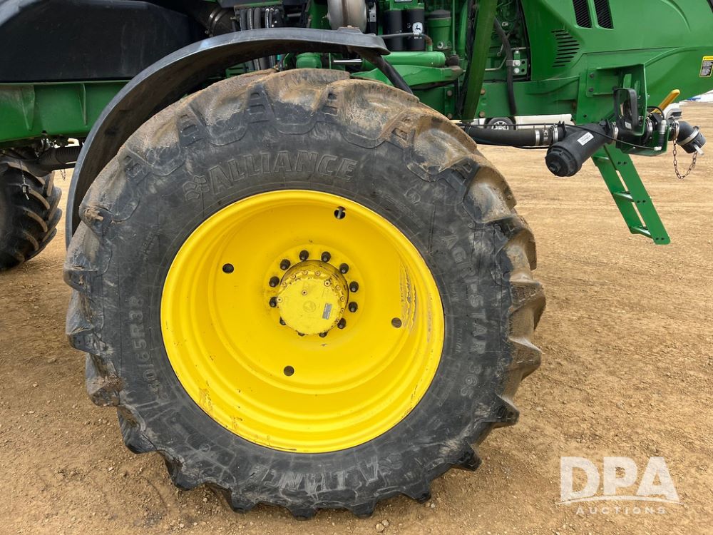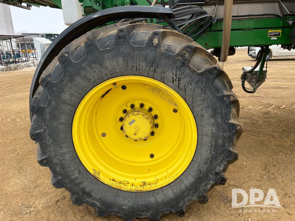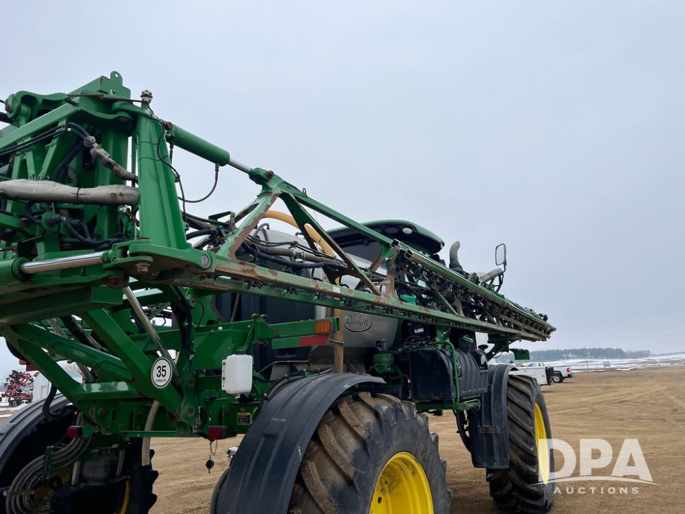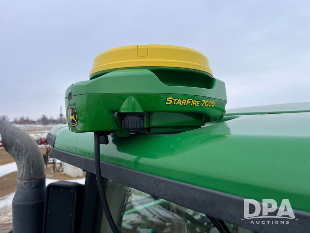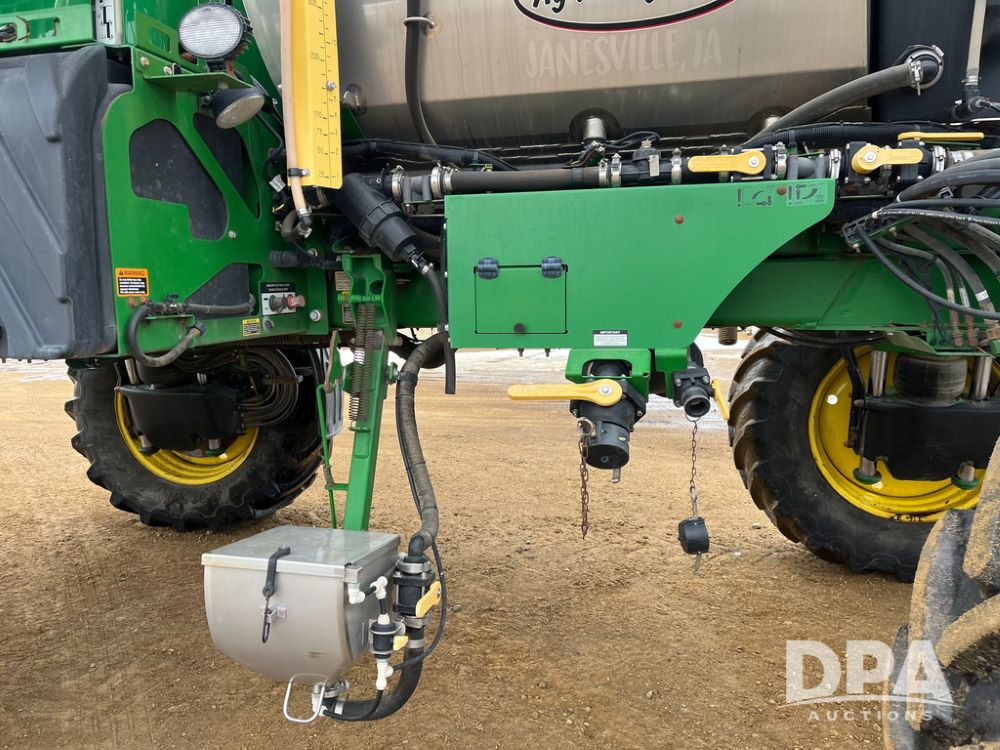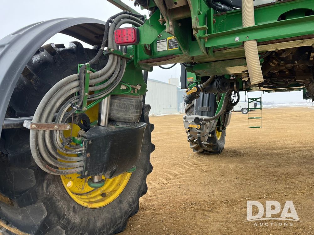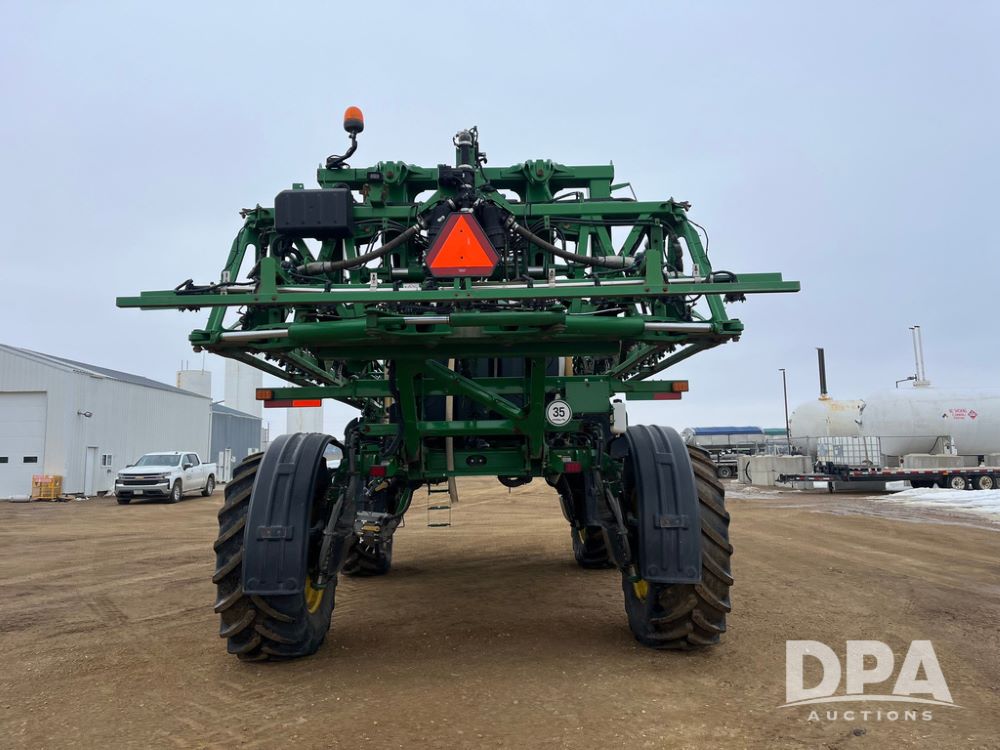2019 John Deere R4038 Sprayer (JN4097, Unit 1834), John Deere diesel engine (S/N RG6090U060422), hydrostatic transmission, air conditioning, heat, Am/Fm radio, leather seat, buddy seat, beacon lights, 1000 gallon stainless steel liquid system, 120' boom, rear poly rinse tank, stainless steel chemical inductor, automatic solution control, front fill, Alliance Agri-Star 365 650/65R38 flotation tires, fenders, John Deere StarFire 7000 globe, John Deere monitor, shows 2,287 hours.