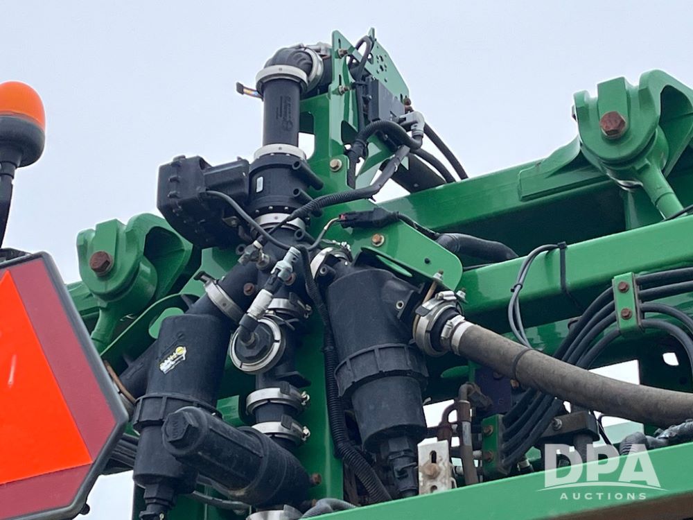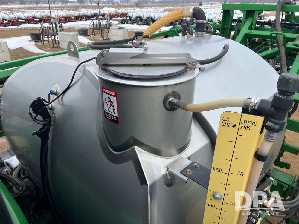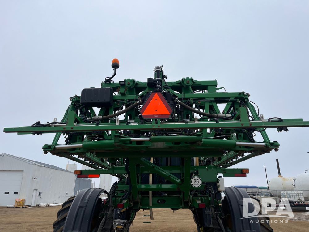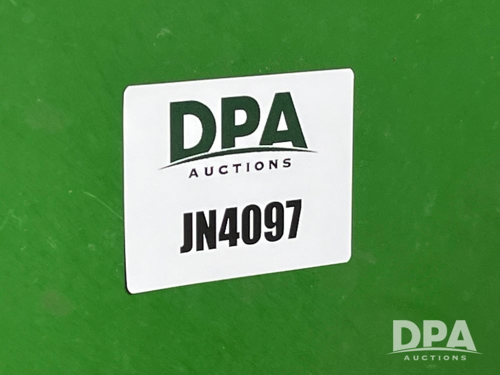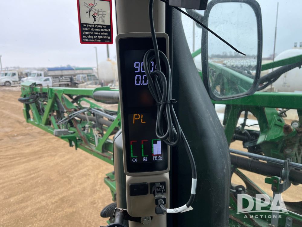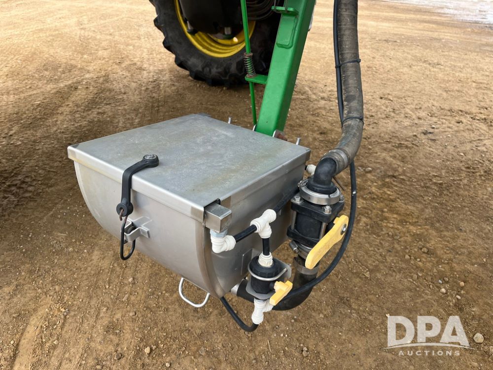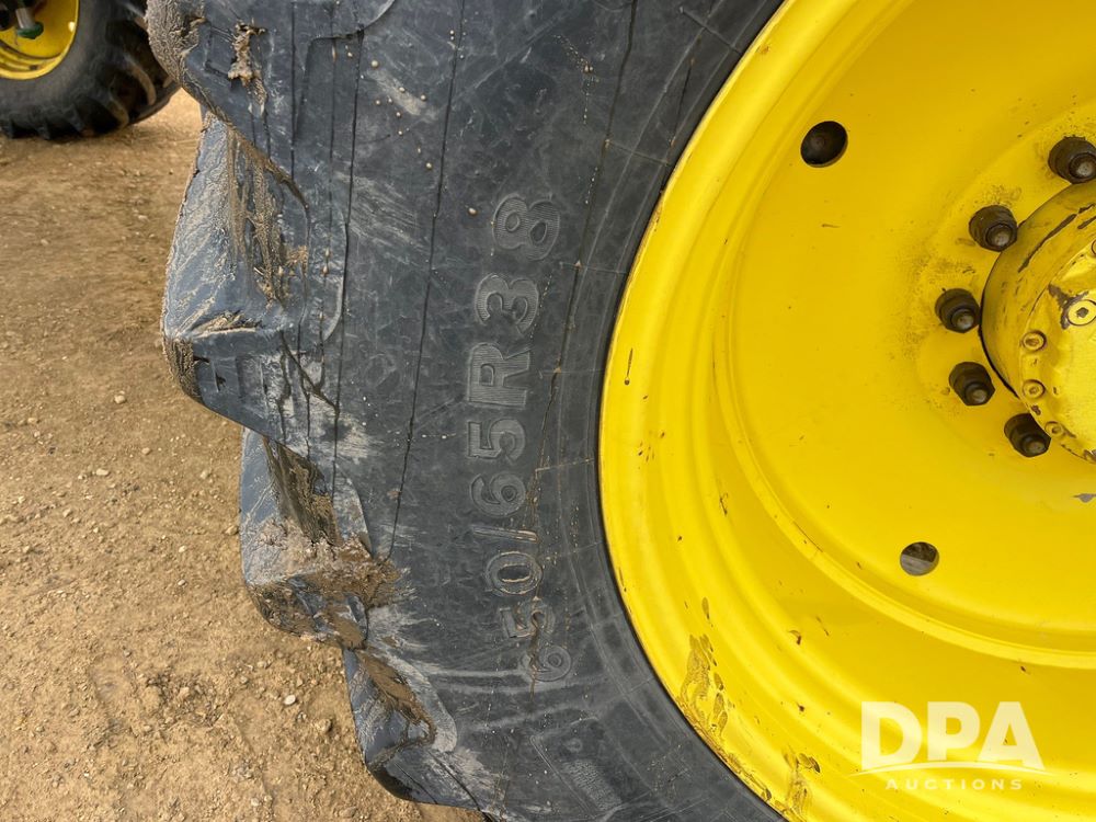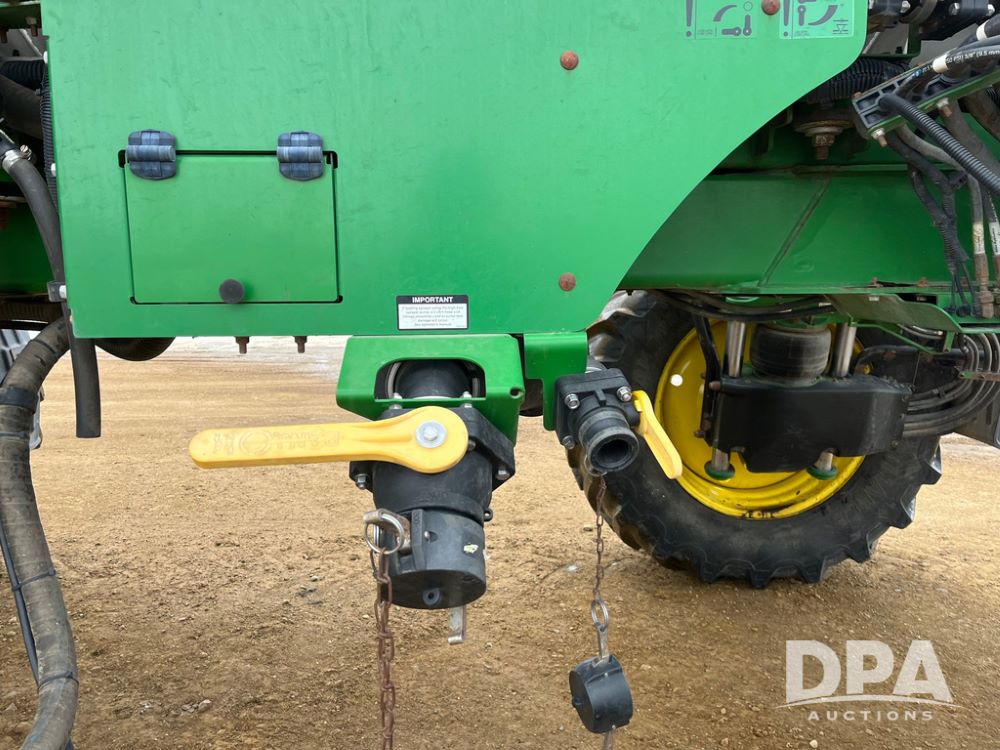 2019 John Deere R4038 Sprayer (JN4097, Unit 1834), John Deere diesel engine (S/N RG6090U060422), hydrostatic transmission, air conditioning, heat, Am/Fm radio, leather seat, buddy seat, beacon lights, 1000 gallon stainless steel liquid system, 120' boom, rear poly rinse tank, stainless steel chemical inductor, automatic solution control, front fill, Alliance Agri-Star 365 650/65R38 flotation tires, fenders, John Deere StarFire 7000 globe, John Deere monitor, shows 2,287 hours.