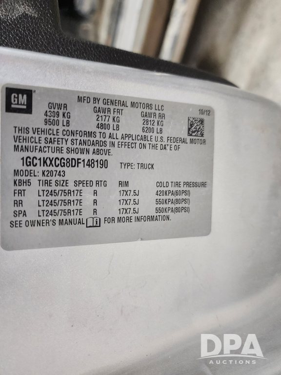 Serial Number: 1GC1KXCG8DF148190