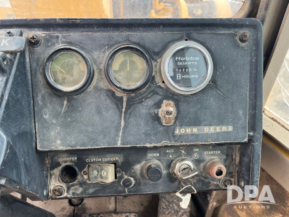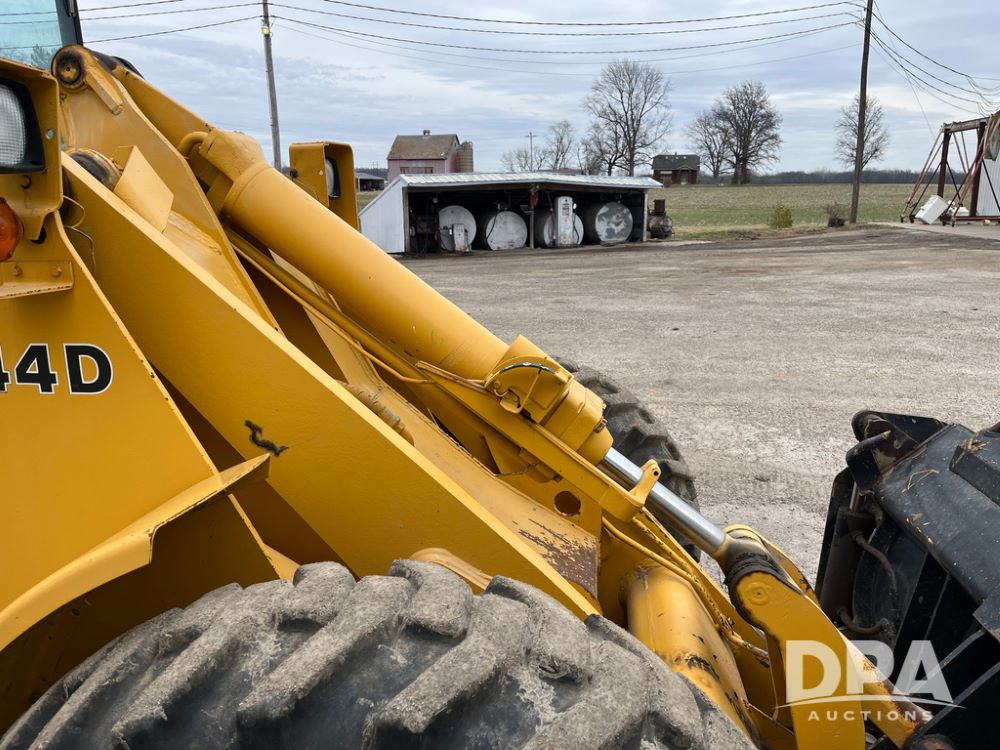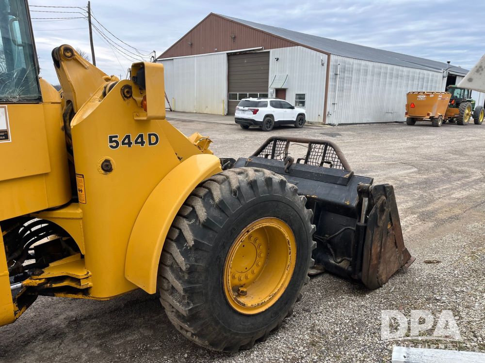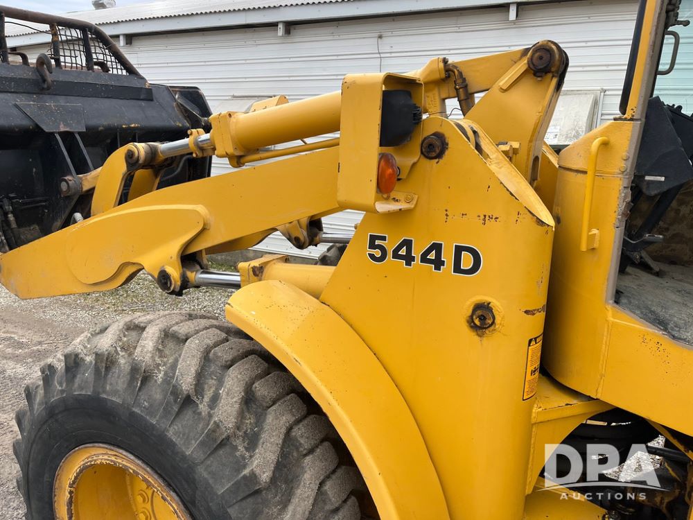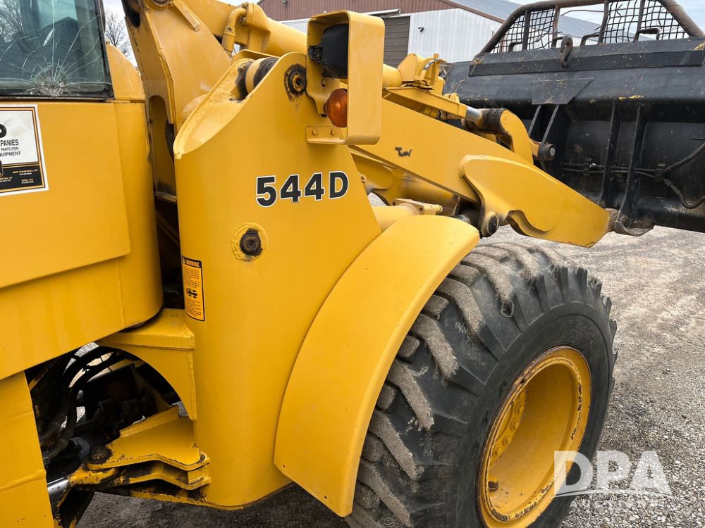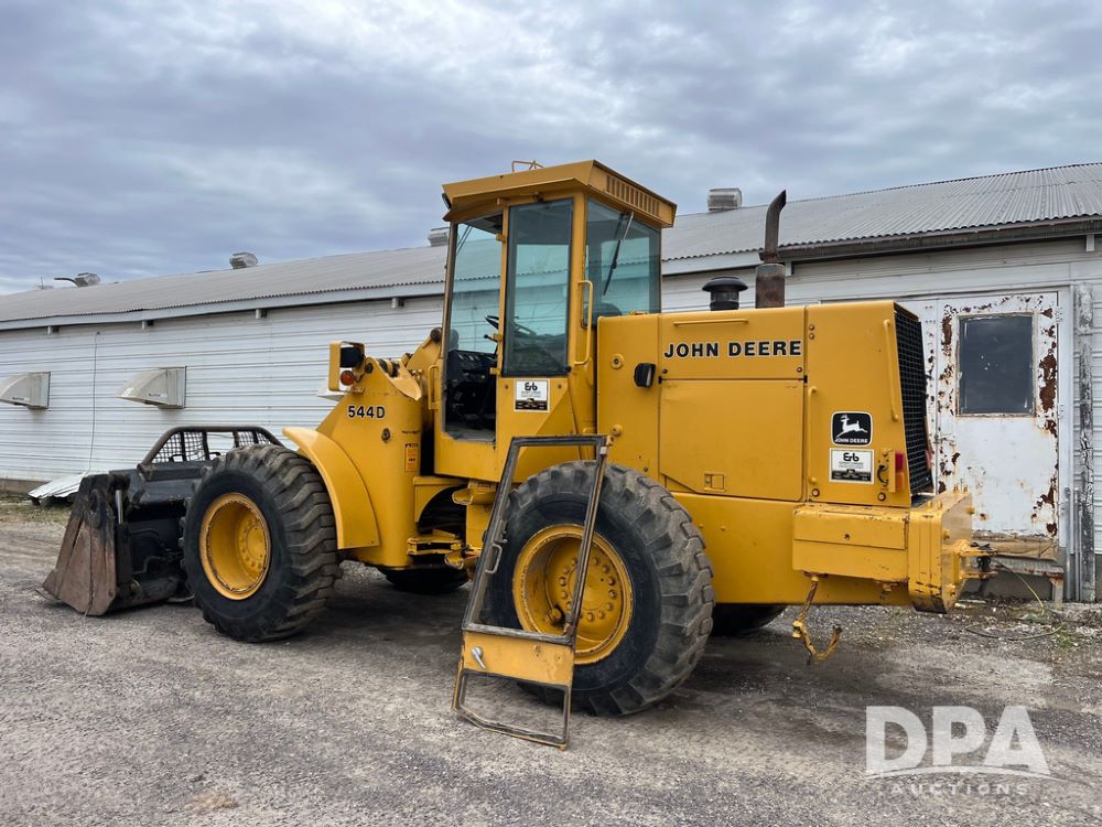 1986 John Deere 544D Wheel Loader (JN4041), diesel engine, shuttle shift transmission, cab, lights, approx. 92in wide by 41in tall bucket, 17.5-25 tires, shows 1,425.5 hours.