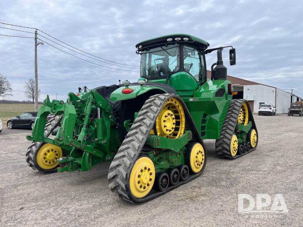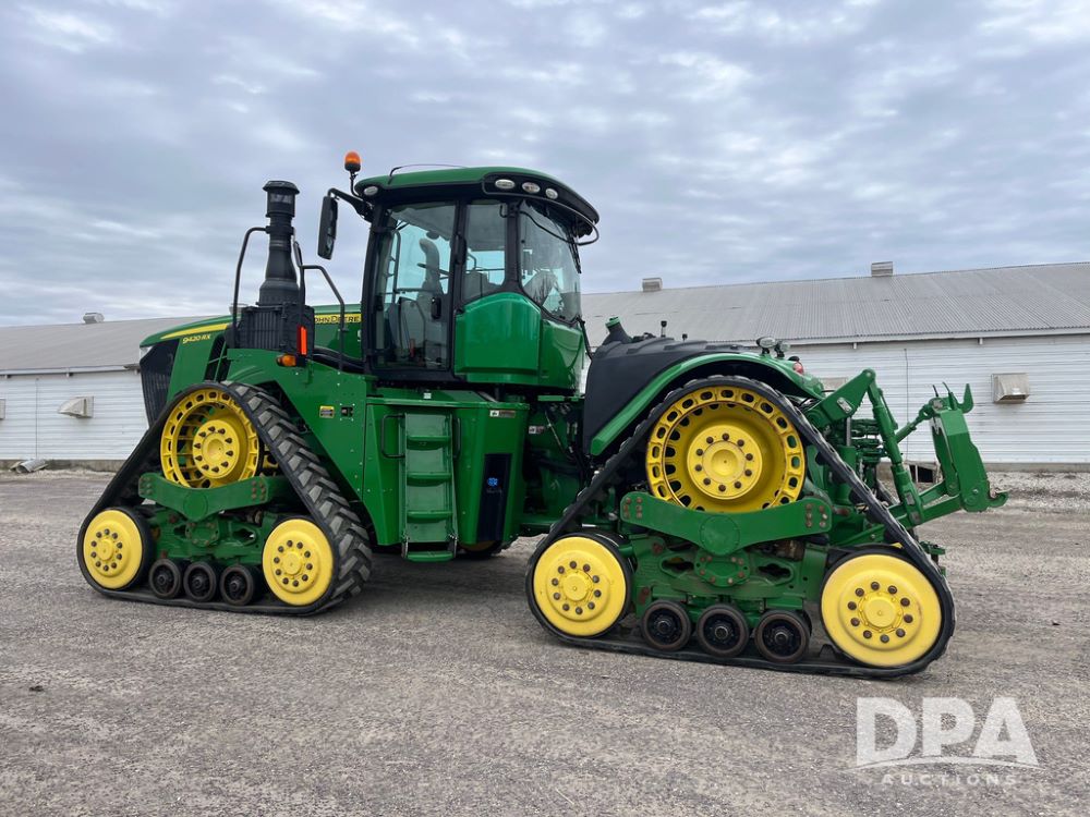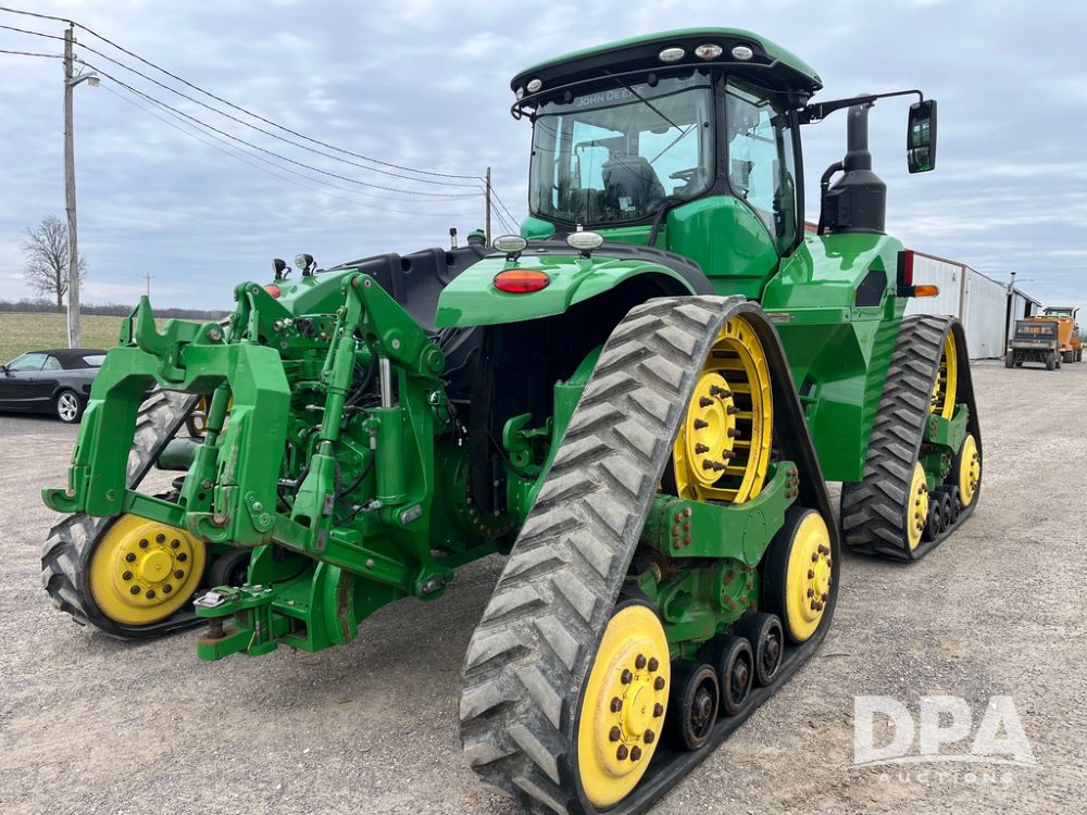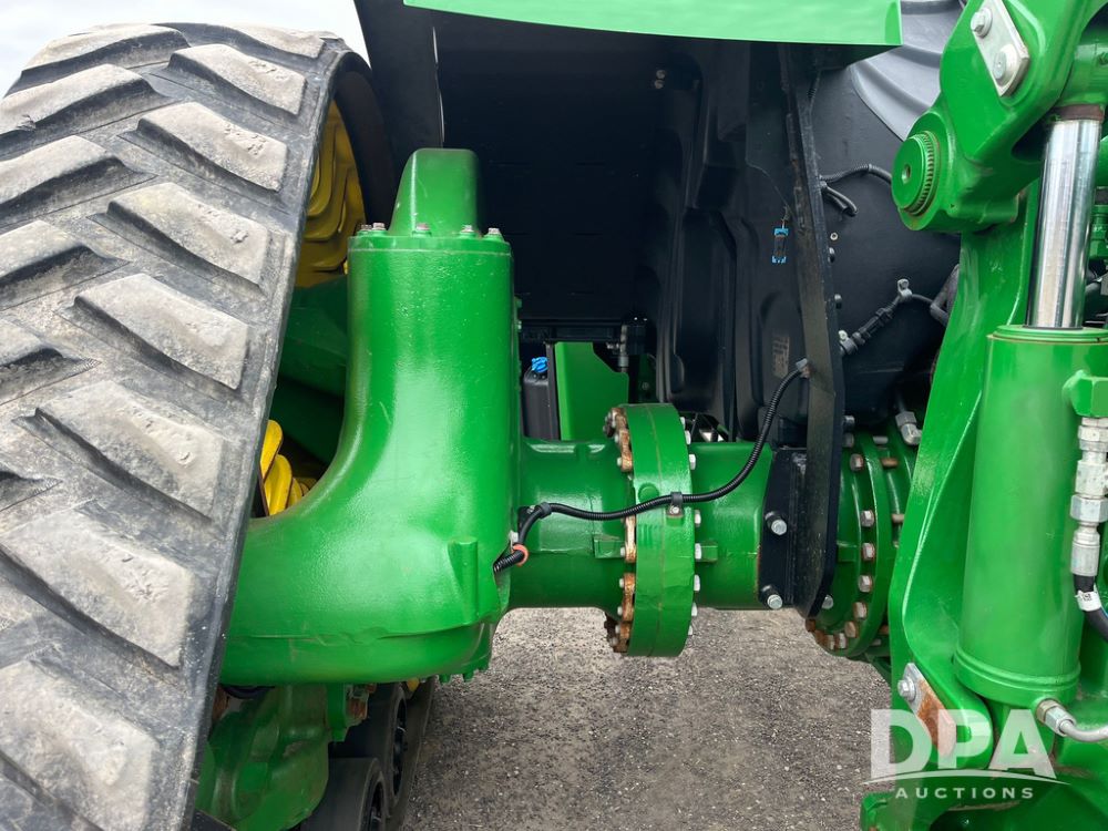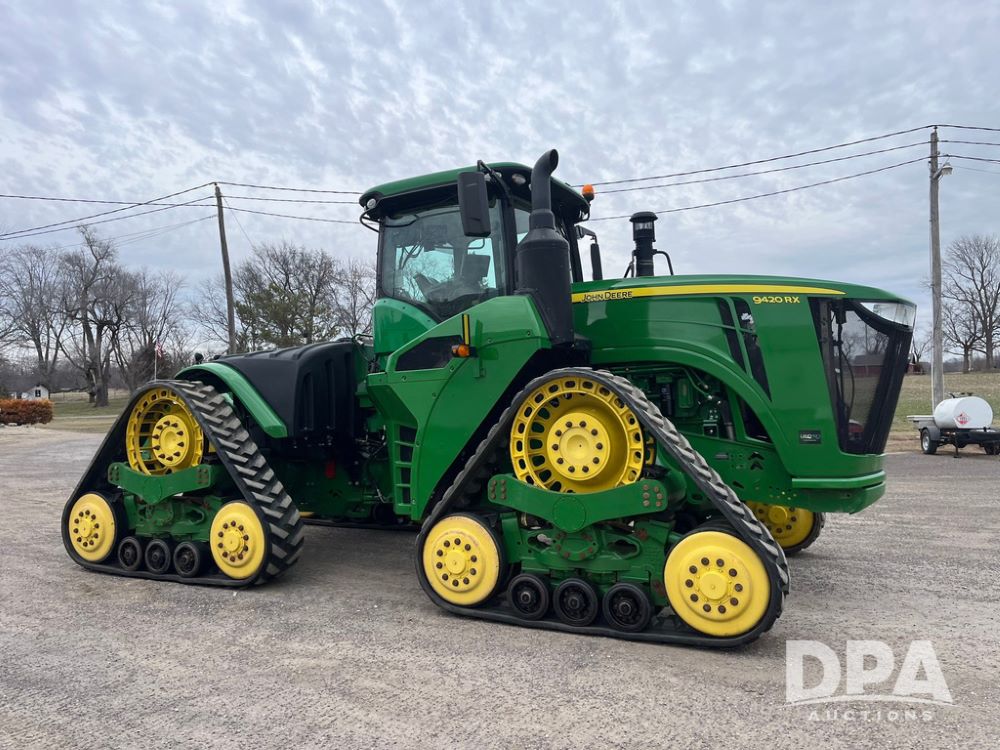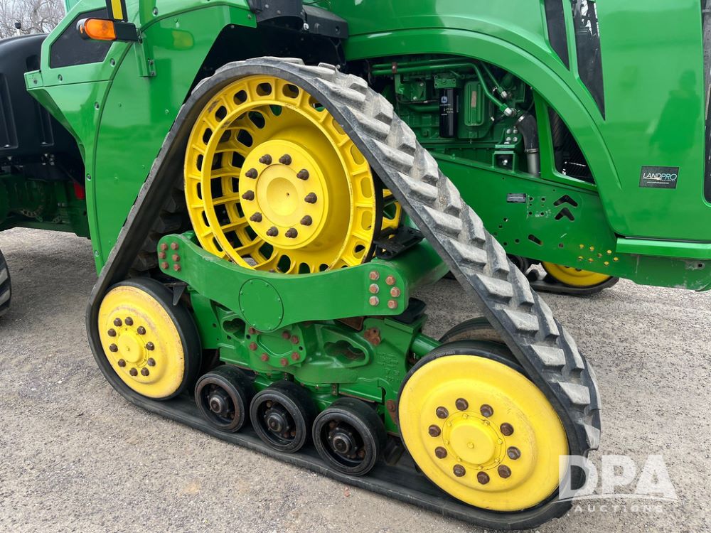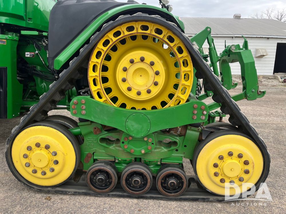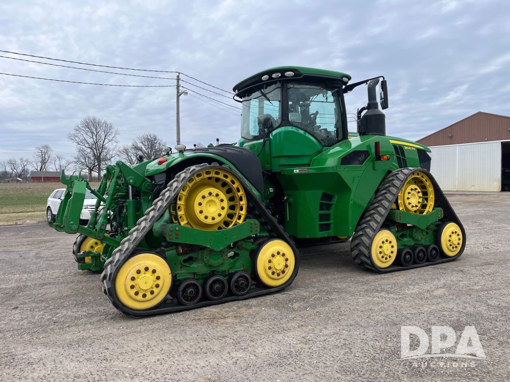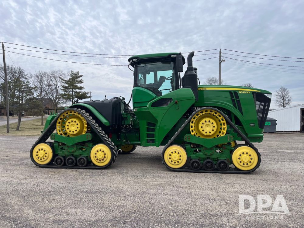 2018 John Deere 9420RX Tractor (JN4048), John Deere diesel engine, 420hp, powershift transmission, premium cab with cab suspension, air conditioning, heat, audio player, leather seats with buddy seat, 4 tracks, 18 inch tracks, high flow system pump, Commandview III with 4 post suspension, 5 rear remotes, 3 point hitch, optional capability (machine sync, Row Sense, AutoPath, AutoTrac, JD Link Connect), shows 2,273 hours.
