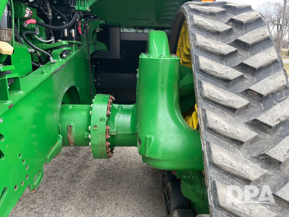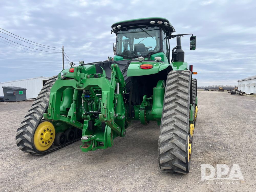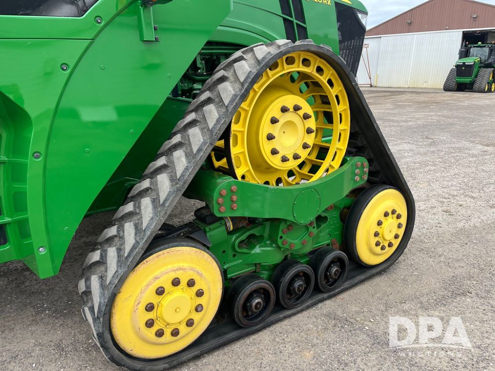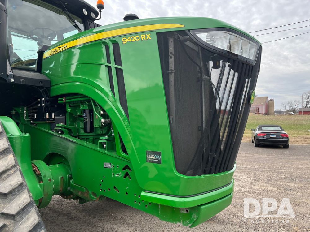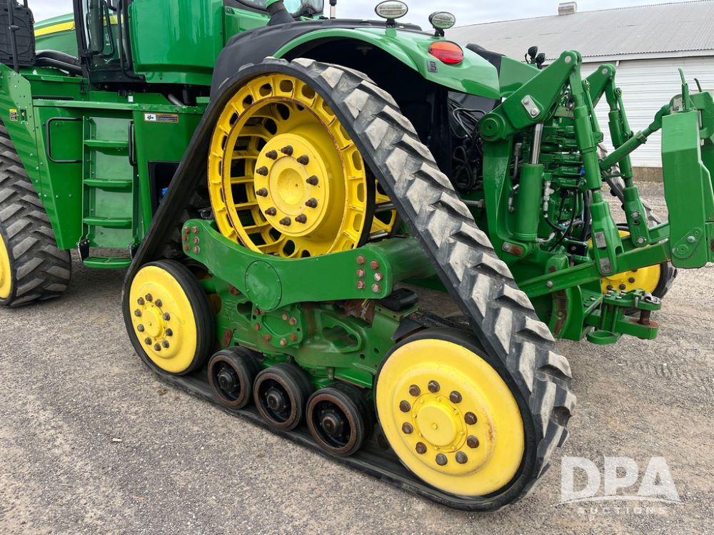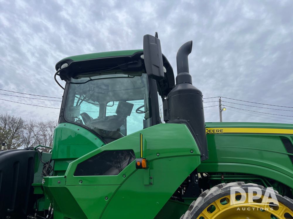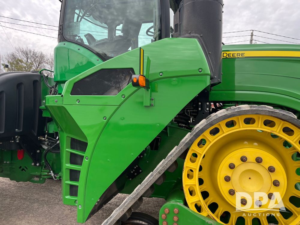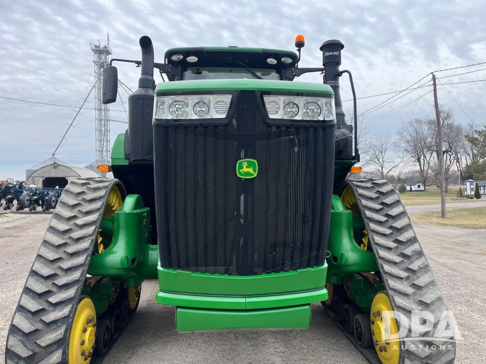 2018 John Deere 9420RX Tractor (JN4048), John Deere diesel engine, 420hp, powershift transmission, premium cab with cab suspension, air conditioning, heat, audio player, leather seats with buddy seat, 4 tracks, 18 inch tracks, high flow system pump, Commandview III with 4 post suspension, 5 rear remotes, 3 point hitch, optional capability (machine sync, Row Sense, AutoPath, AutoTrac, JD Link Connect), shows 2,273 hours.