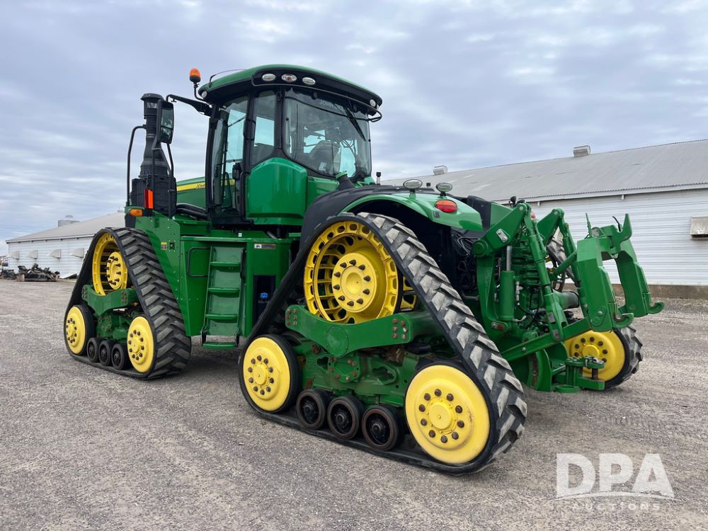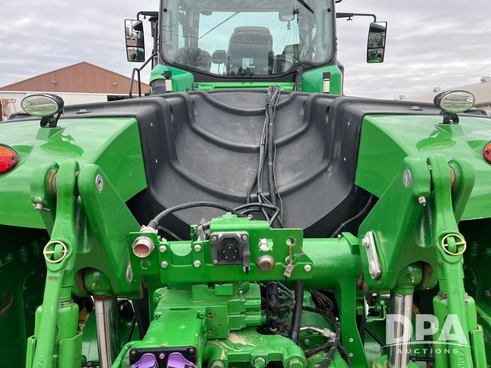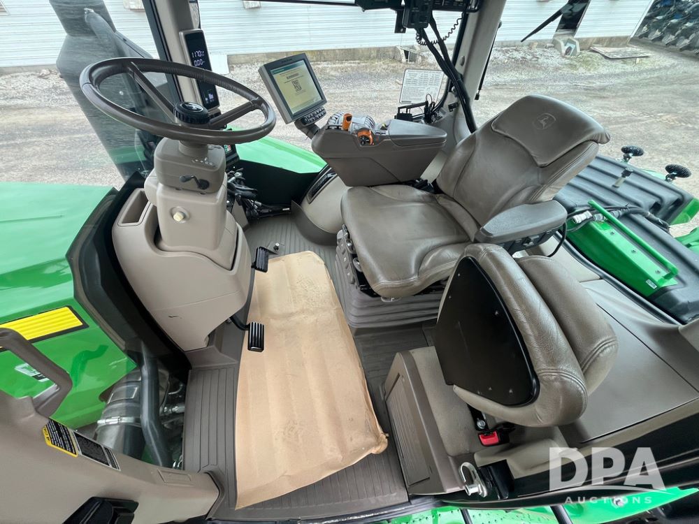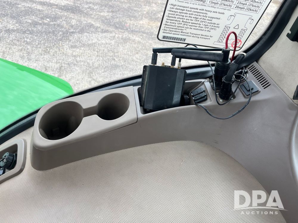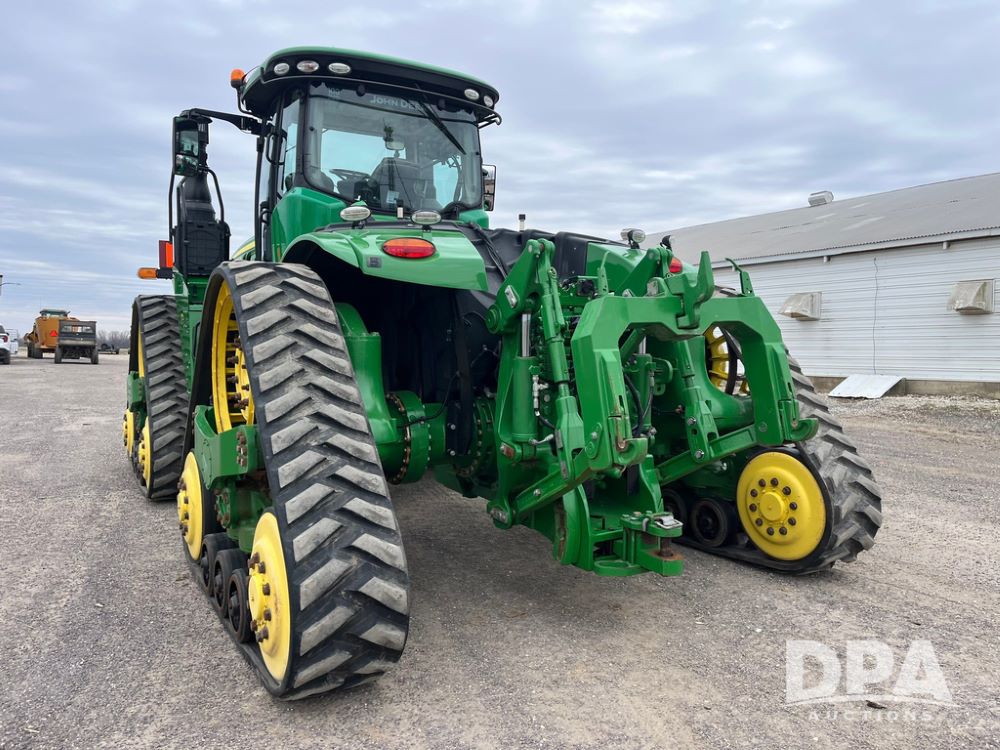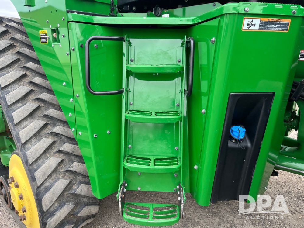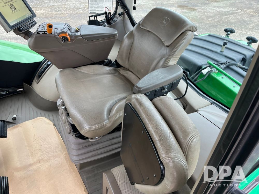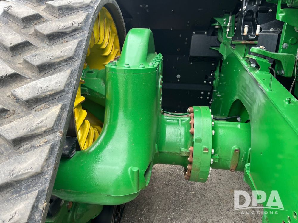 2018 John Deere 9420RX Tractor (JN4048), John Deere diesel engine, 420hp, powershift transmission, premium cab with cab suspension, air conditioning, heat, audio player, leather seats with buddy seat, 4 tracks, 18 inch tracks, high flow system pump, Commandview III with 4 post suspension, 5 rear remotes, 3 point hitch, optional capability (machine sync, Row Sense, AutoPath, AutoTrac, JD Link Connect), shows 2,273 hours.