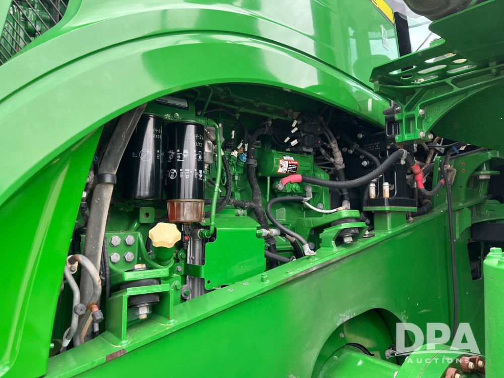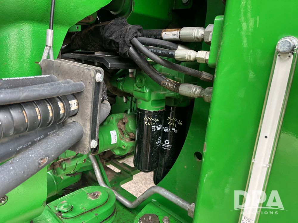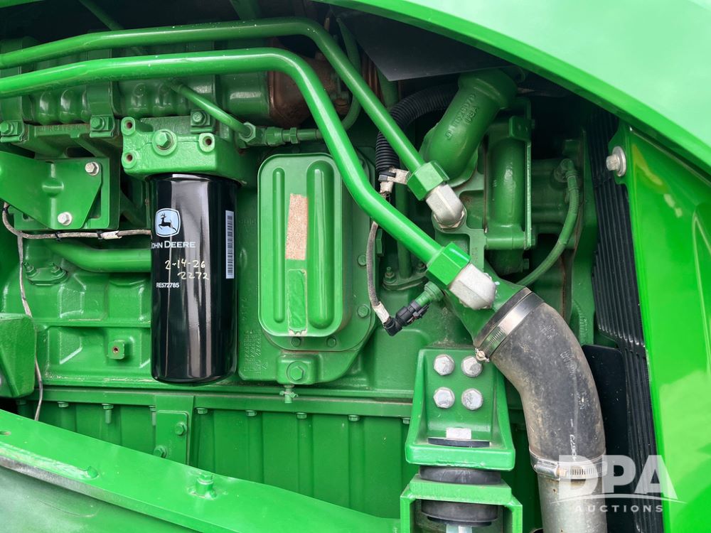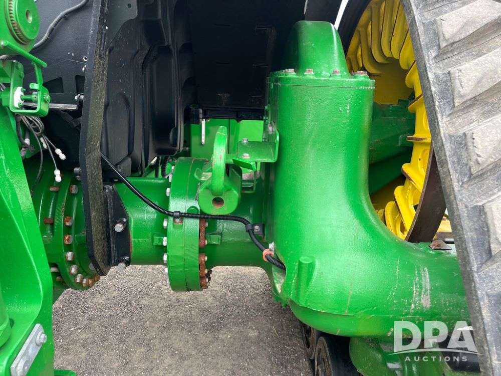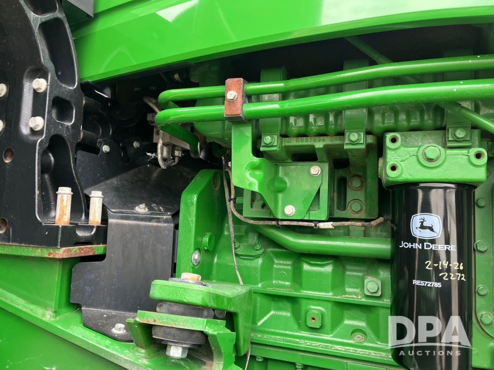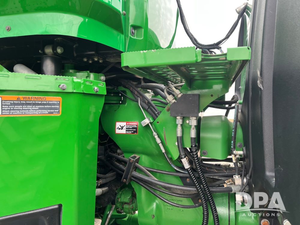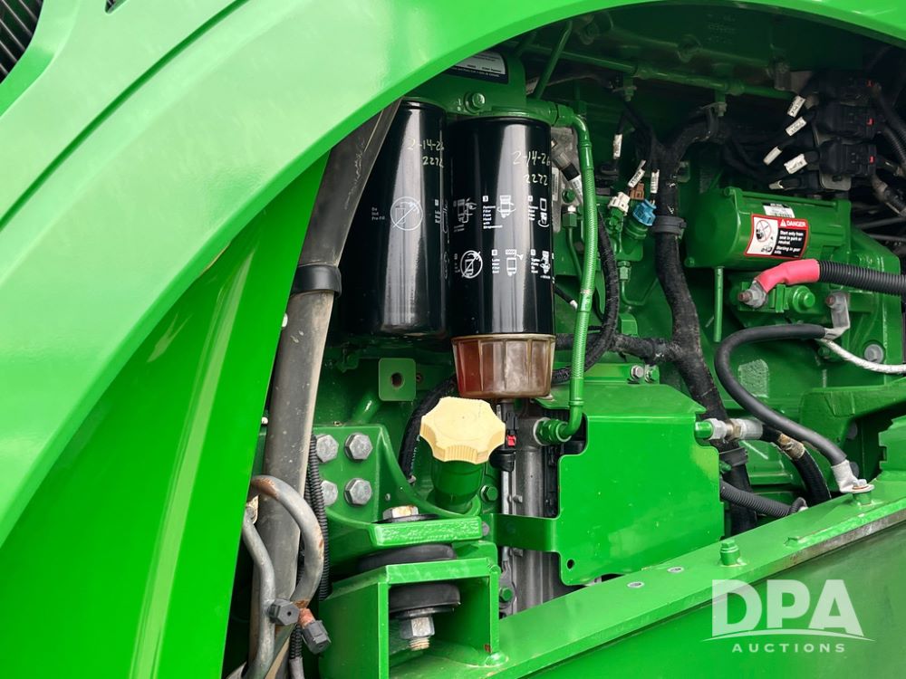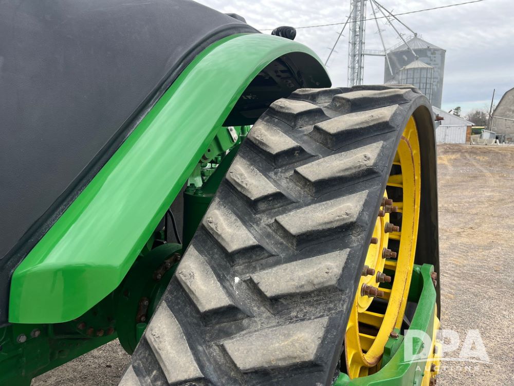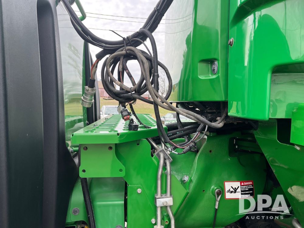 2018 John Deere 9420RX Tractor (JN4048), John Deere diesel engine, 420hp, powershift transmission, premium cab with cab suspension, air conditioning, heat, audio player, leather seats with buddy seat, 4 tracks, 18 inch tracks, high flow system pump, Commandview III with 4 post suspension, 5 rear remotes, 3 point hitch, optional capability (machine sync, Row Sense, AutoPath, AutoTrac, JD Link Connect), shows 2,273 hours.