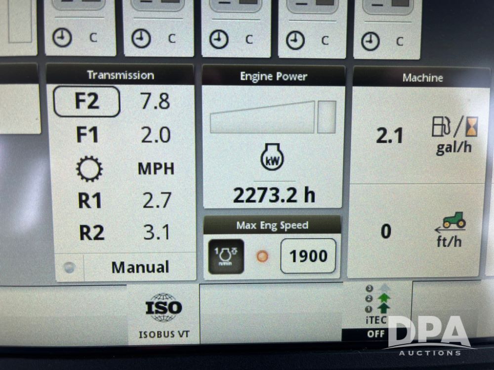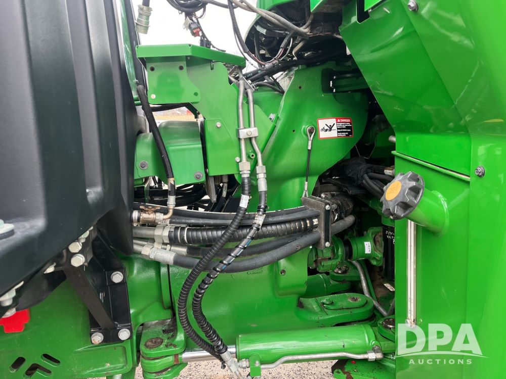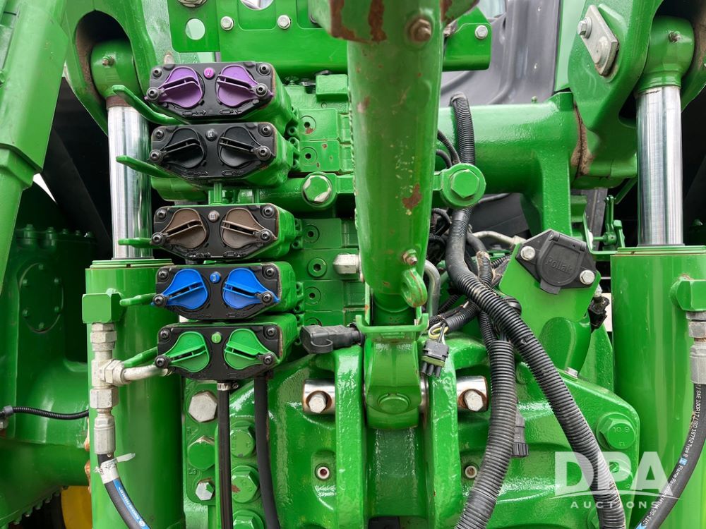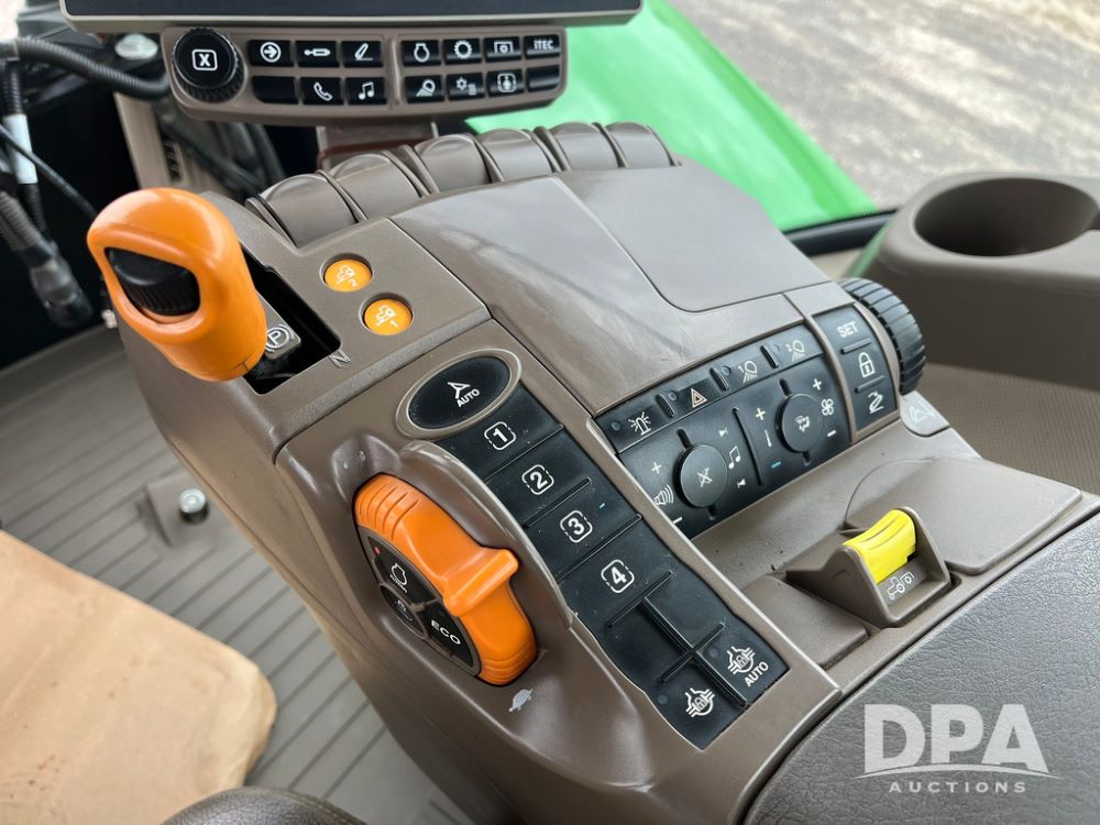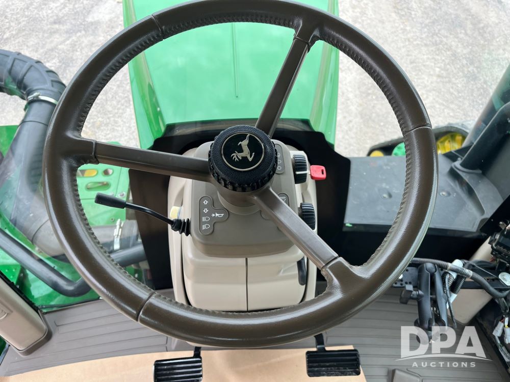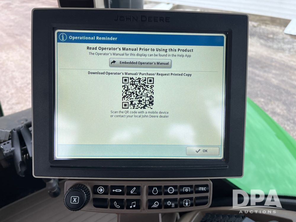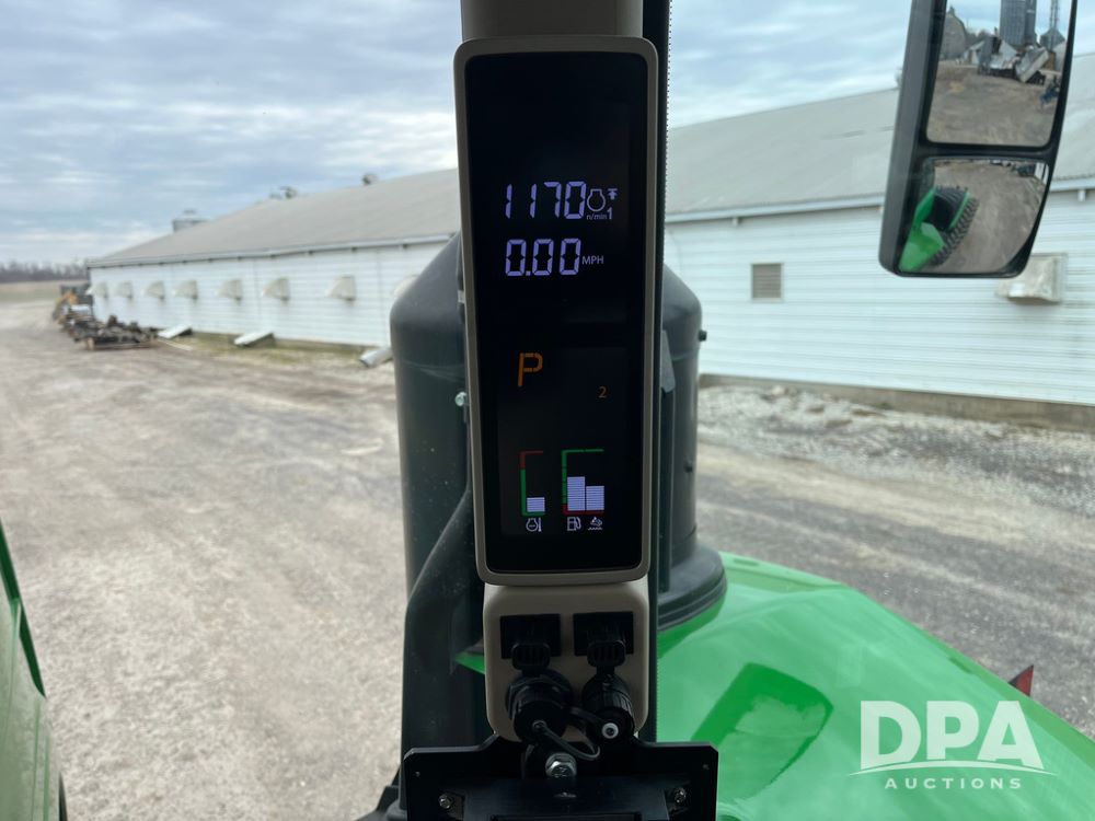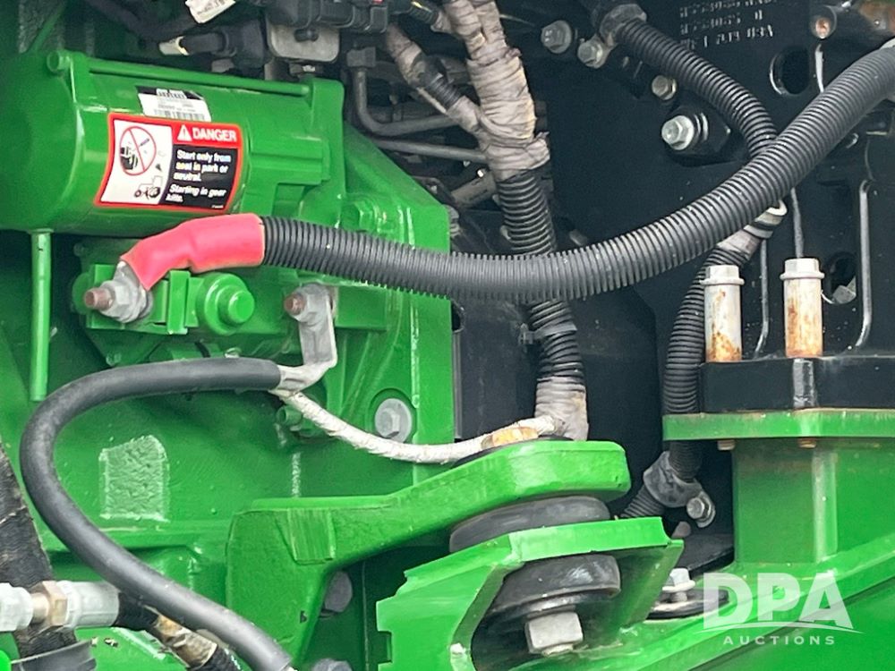 2018 John Deere 9420RX Tractor (JN4048), John Deere diesel engine, 420hp, powershift transmission, premium cab with cab suspension, air conditioning, heat, audio player, leather seats with buddy seat, 4 tracks, 18 inch tracks, high flow system pump, Commandview III with 4 post suspension, 5 rear remotes, 3 point hitch, optional capability (machine sync, Row Sense, AutoPath, AutoTrac, JD Link Connect), shows 2,273 hours.