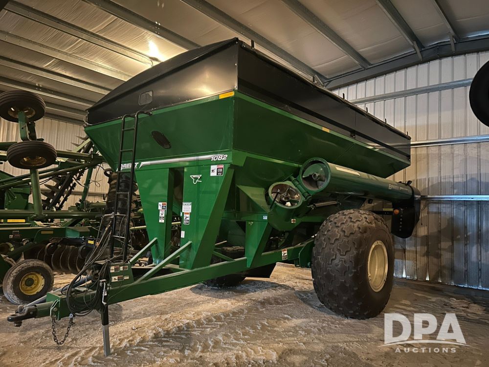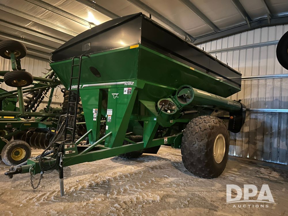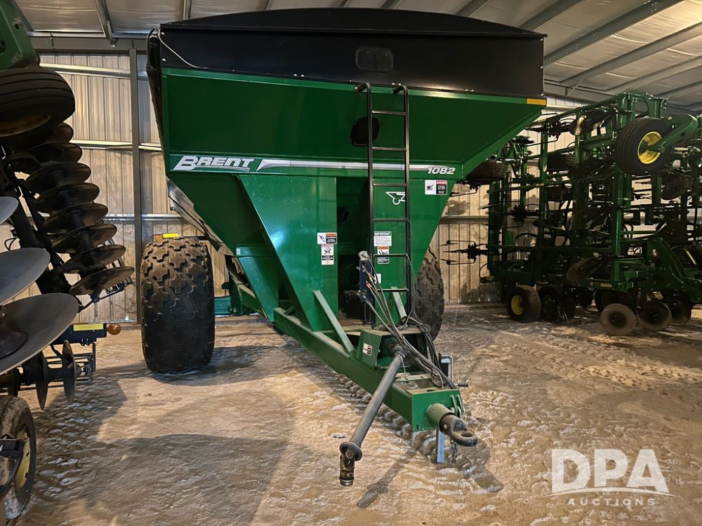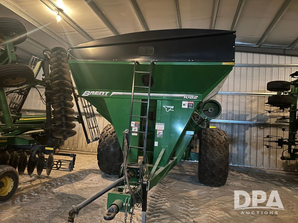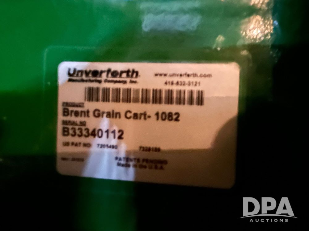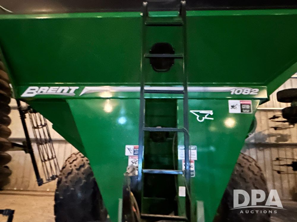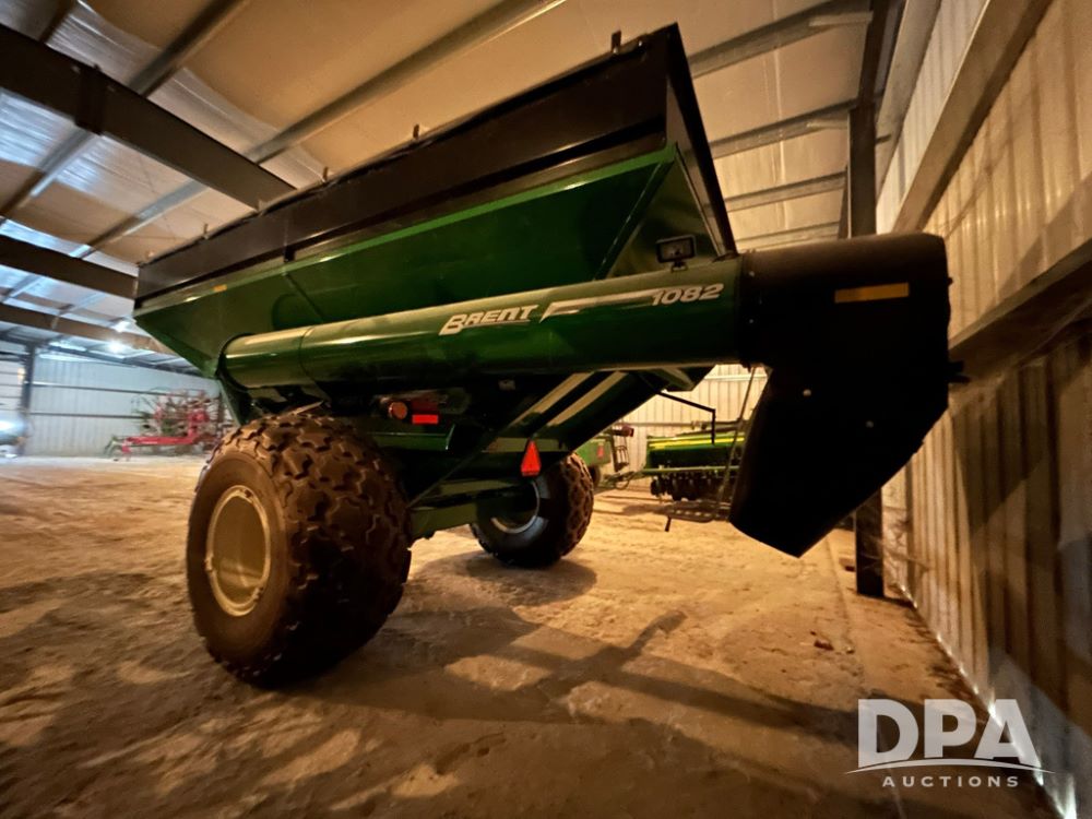 1082 Brent Single Auger Grain Cart (LS0486), 1,000 bushel capacity, manual roll tarp, single auger, manual jack, weigh scale included, 35.5L-32 tires, tires are in great shape, extremely clean and low use grain cart, always stored inside.