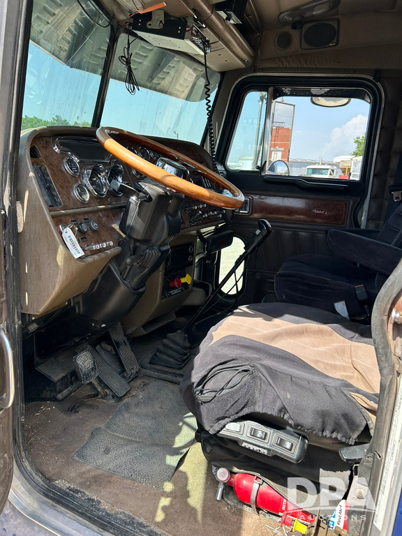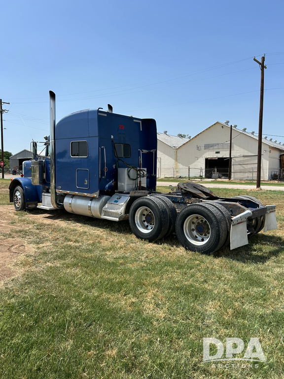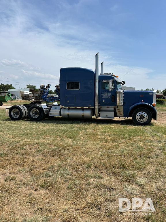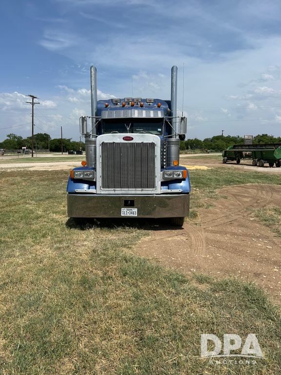 2001 Peterbilt 379 (CG467), Cat C15 diesel engine, 18 speed Eaton fuller transmission, tandem axle, 5th wheel plate, dual chrome stacks, drop vizor, dual fuel tanks, engine brake, heat, ac, cruise control, am/fm radio