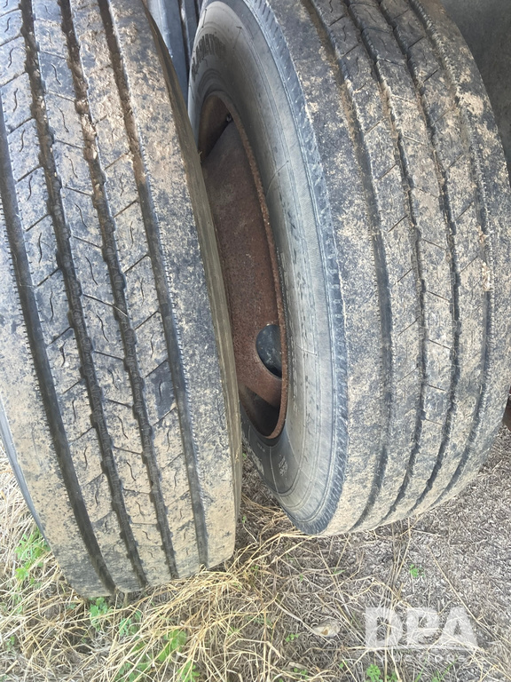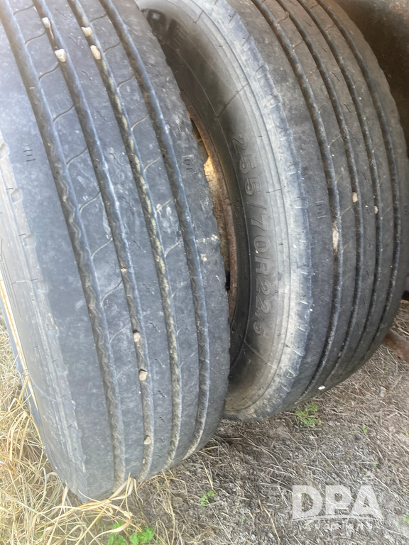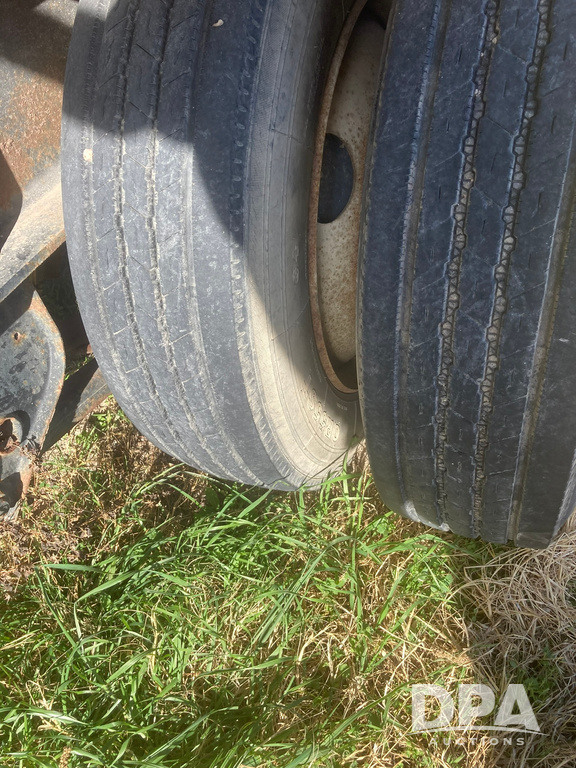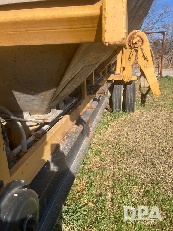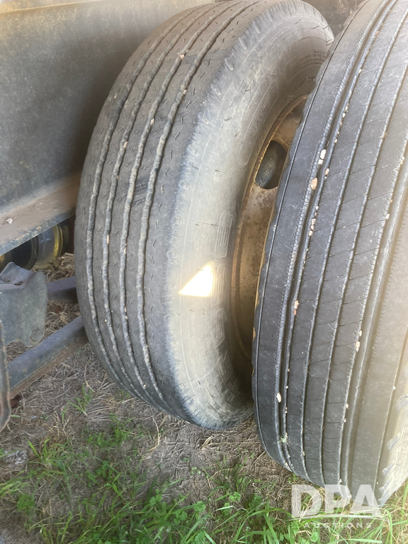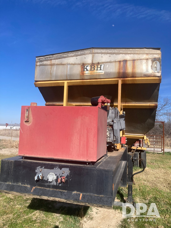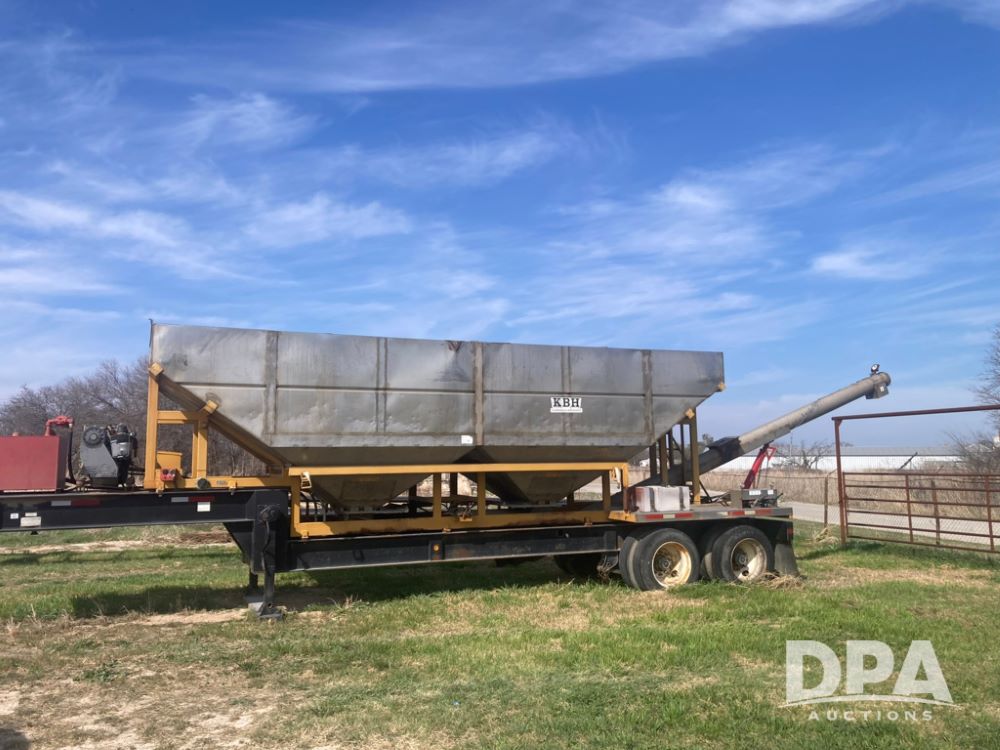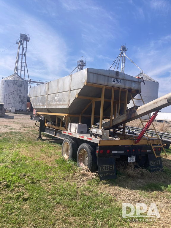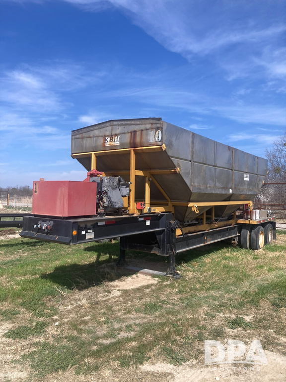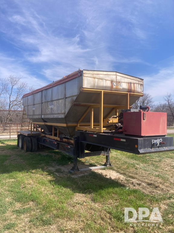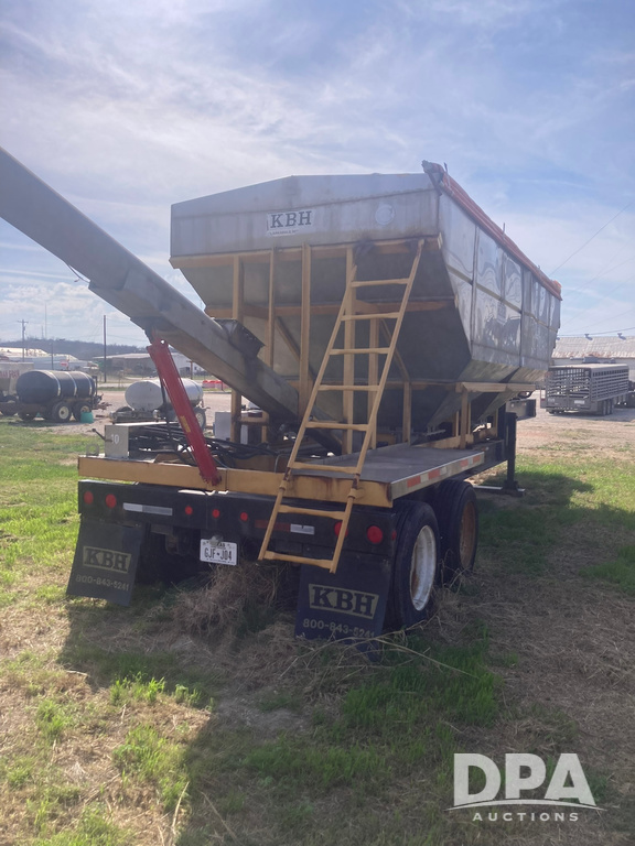 2003 KBH Tender Trailer (CG468), 24 ton stainless steel hydraulic dry tender trailer, self contained hydraulics, diesel engine, rear auger, roll tarp, 255/70R22.5 tires.