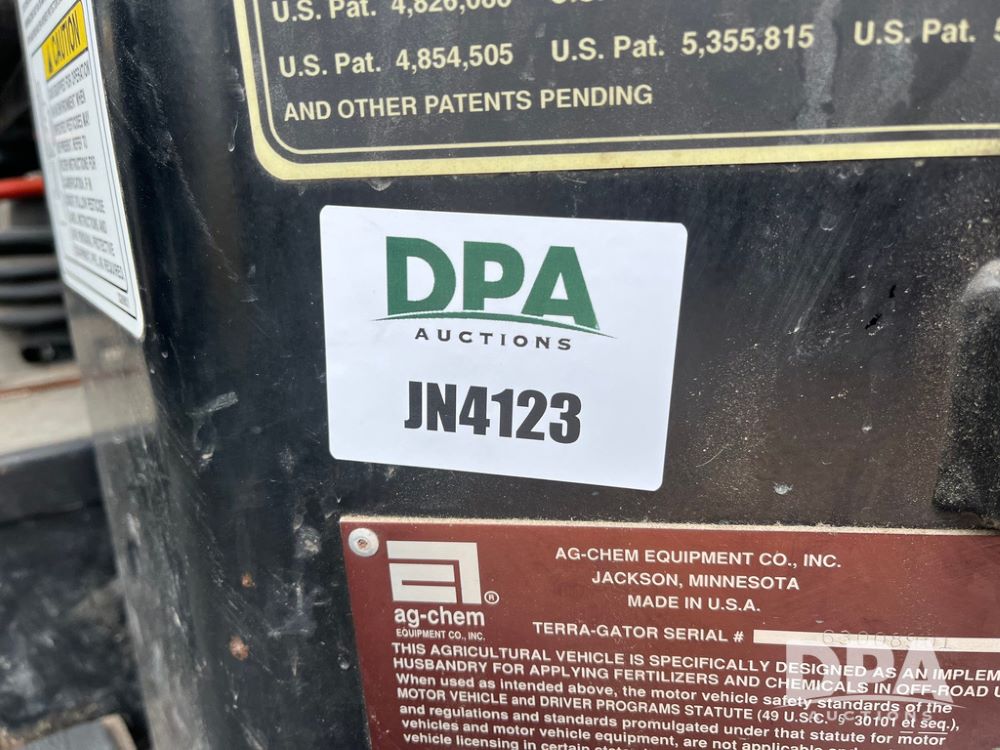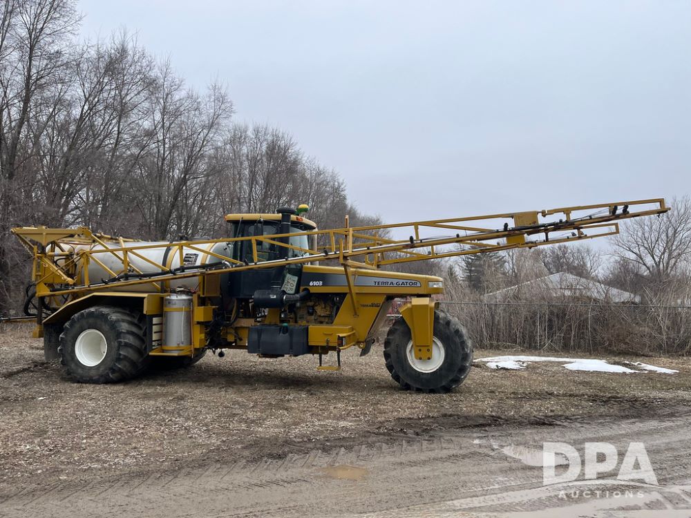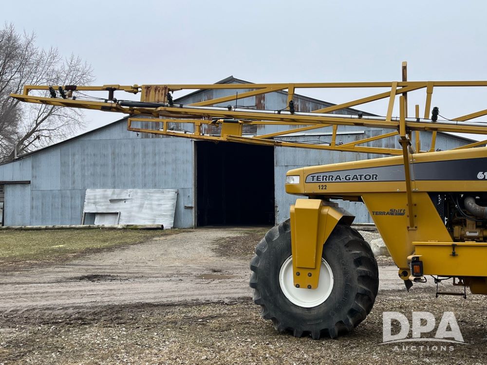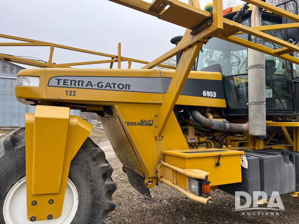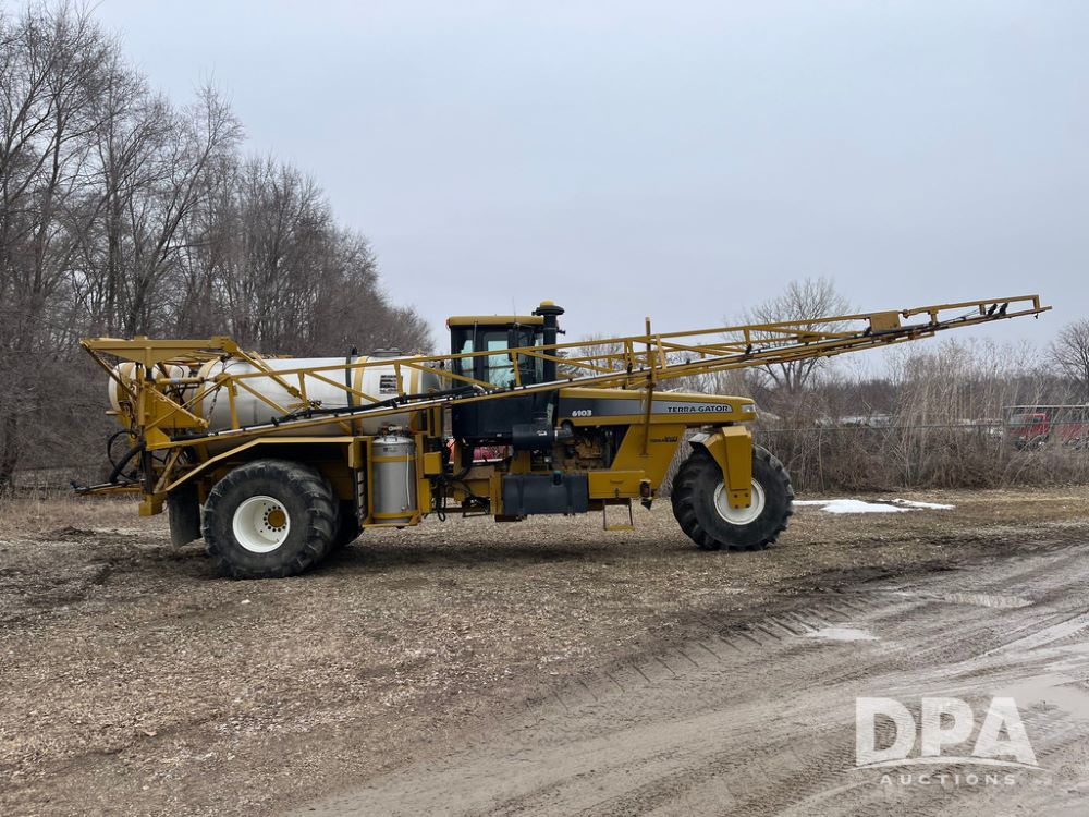 2001 Terra Gator 6103 Liquid Floater (JN4123, Unit 122), John Deere diesel engine, Terra Shift transmission, heat, Am/Fm radio, 1,800 gallon stainless steel liquid system (S/N L181819), 80' boom, 55 gallon stainless steel foam marker tank, 100 gallon rear mount poly rinse tank, 66x43.00-25 front tire, 1000/50R25 rear tires, StarFire 3000 globe, John Deere monitor, shows 43,646 miles, shows 4,063 hours.