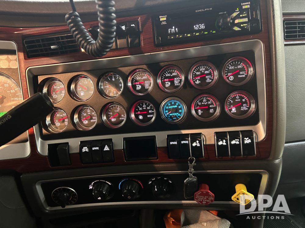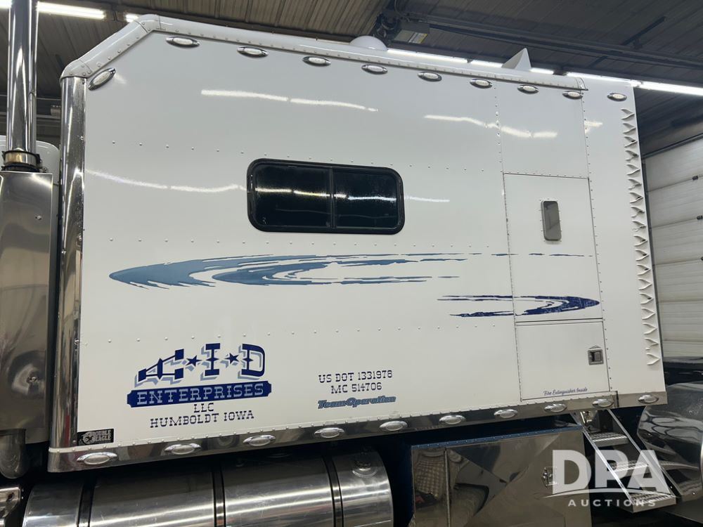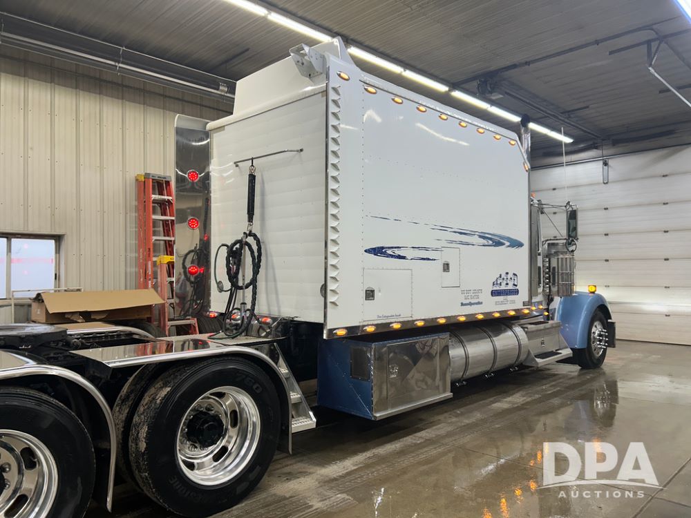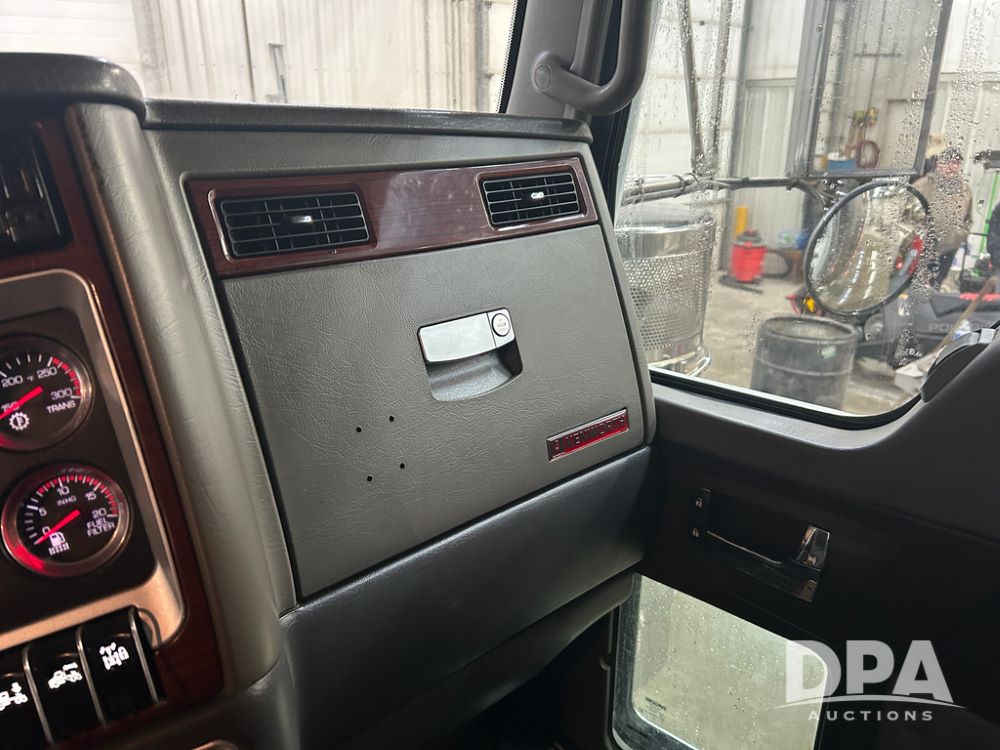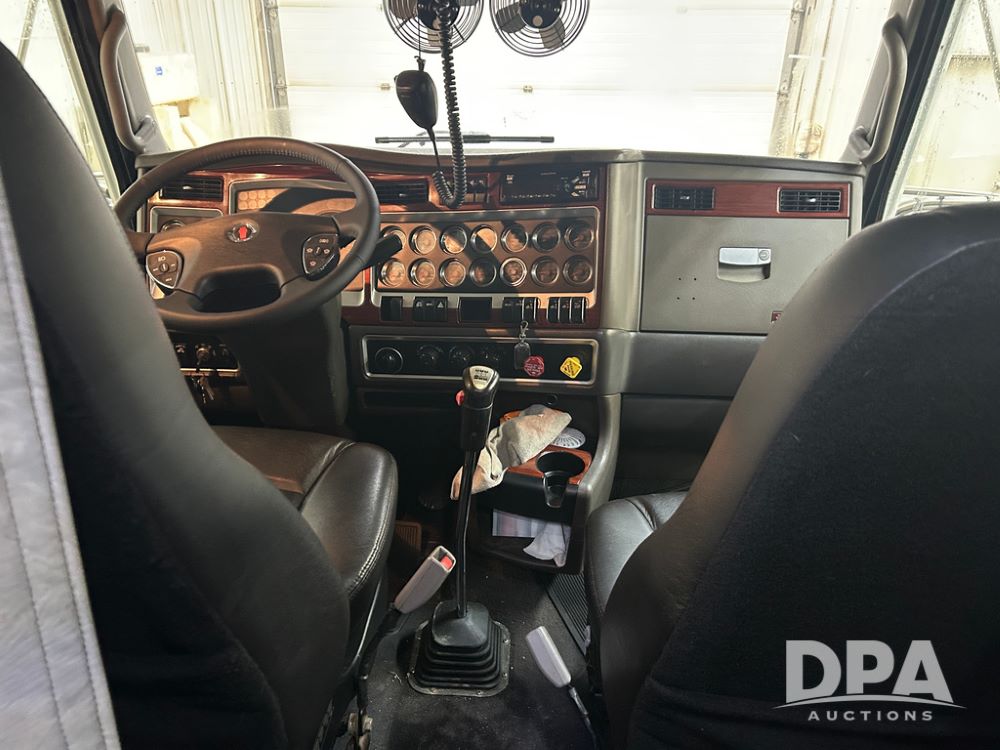 2007 Kenworth W900L Truck (CP1804), Cat C15 diesel engine (overhauled with paperwork from CAT), 550hp, Eaton Fuller 13 speed transmission, Double Eagle custom built Super Eagle 130in sleeper, air ride cab, air conditioning, heat, (dual controls and thermostat in sleeper), refrigerator, microwave, coffee pot, shower, stool, TV, multiple storage compartments in cab, Gen Pac diesel powered generator, dual chrome stacks, dual chrome air breathers, chrome bumper, tandem axle, air ride suspension, 366in wheel base, individual full stainless steel fenders, 285/75R24.5 tires, 1,185,608 miles on chassis, approx. 301,034 miles on overhauled engine.