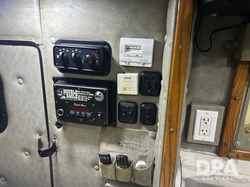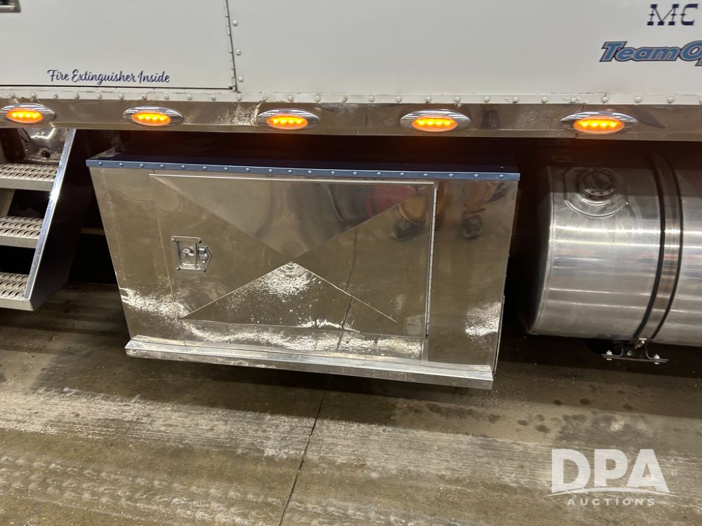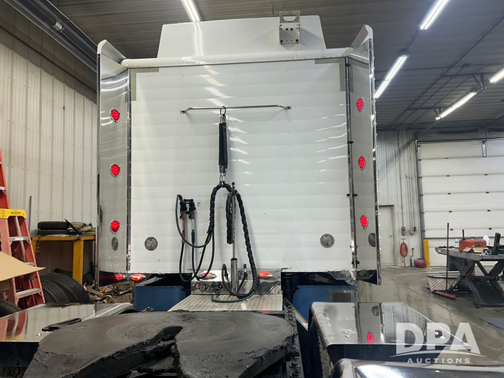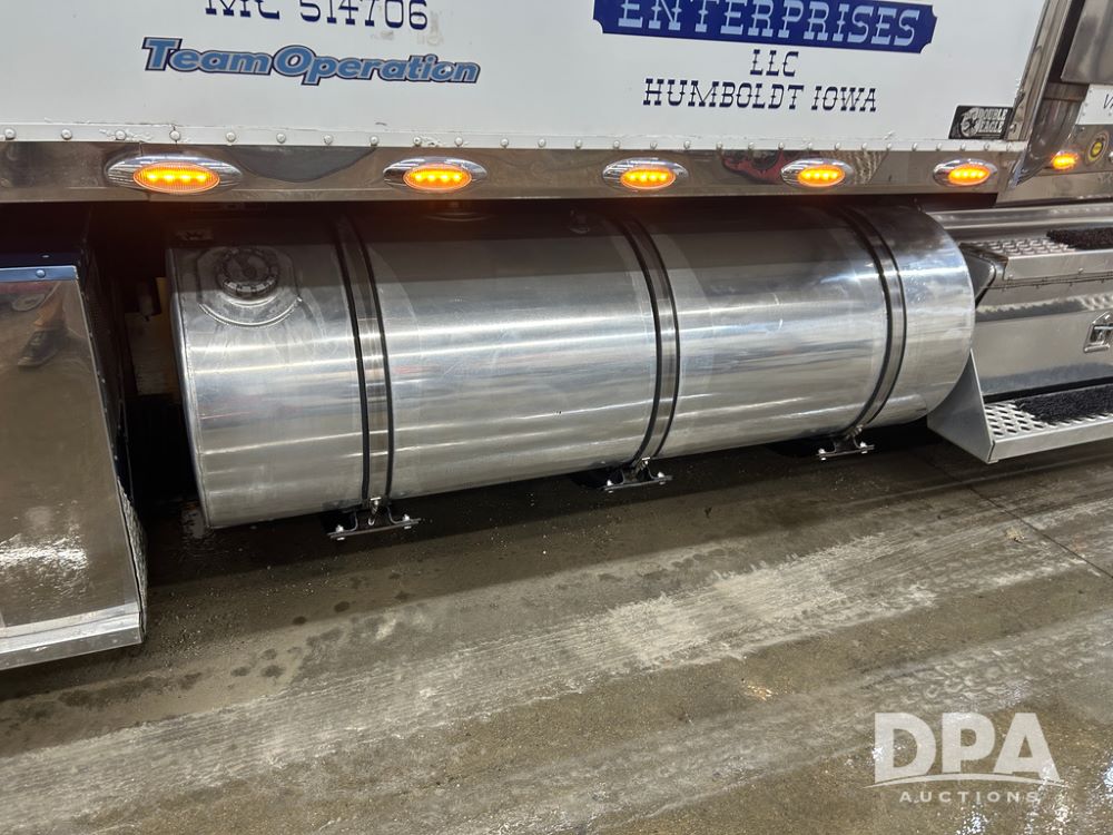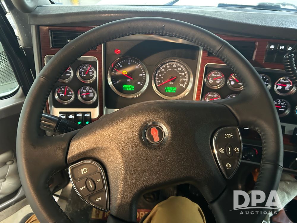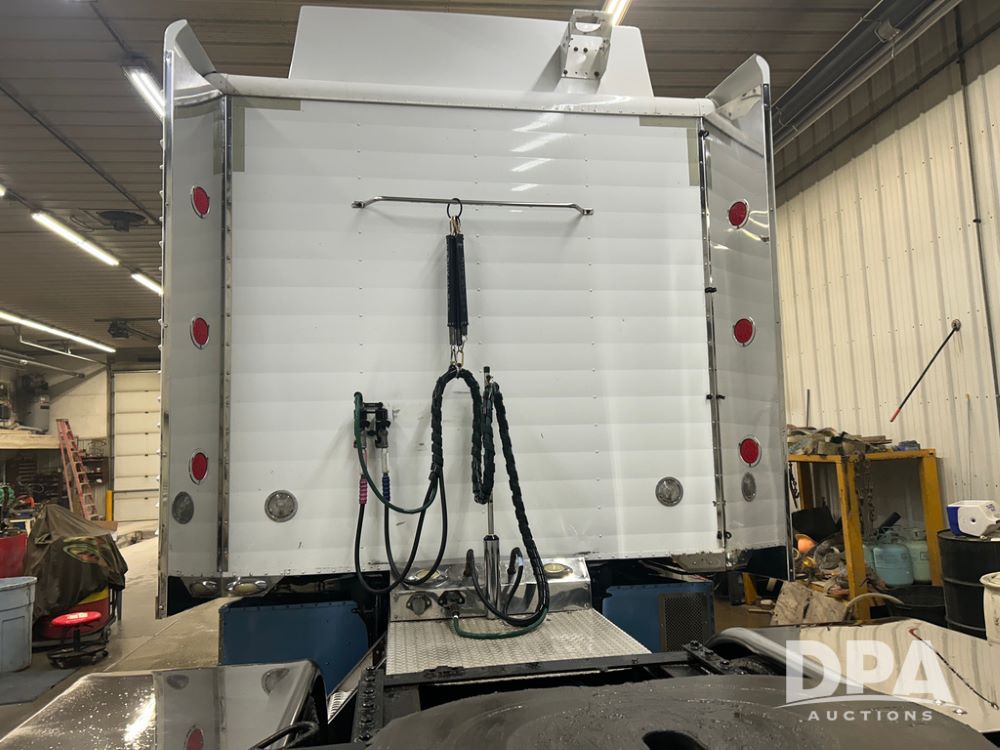 2007 Kenworth W900L Truck (CP1804), Cat C15 diesel engine (overhauled with paperwork from CAT), 550hp, Eaton Fuller 13 speed transmission, Double Eagle custom built Super Eagle 130in sleeper, air ride cab, air conditioning, heat, (dual controls and thermostat in sleeper), refrigerator, microwave, coffee pot, shower, stool, TV, multiple storage compartments in cab, Gen Pac diesel powered generator, dual chrome stacks, dual chrome air breathers, chrome bumper, tandem axle, air ride suspension, 366in wheel base, individual full stainless steel fenders, 285/75R24.5 tires, 1,185,608 miles on chassis, approx. 301,034 miles on overhauled engine.