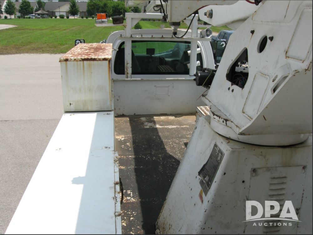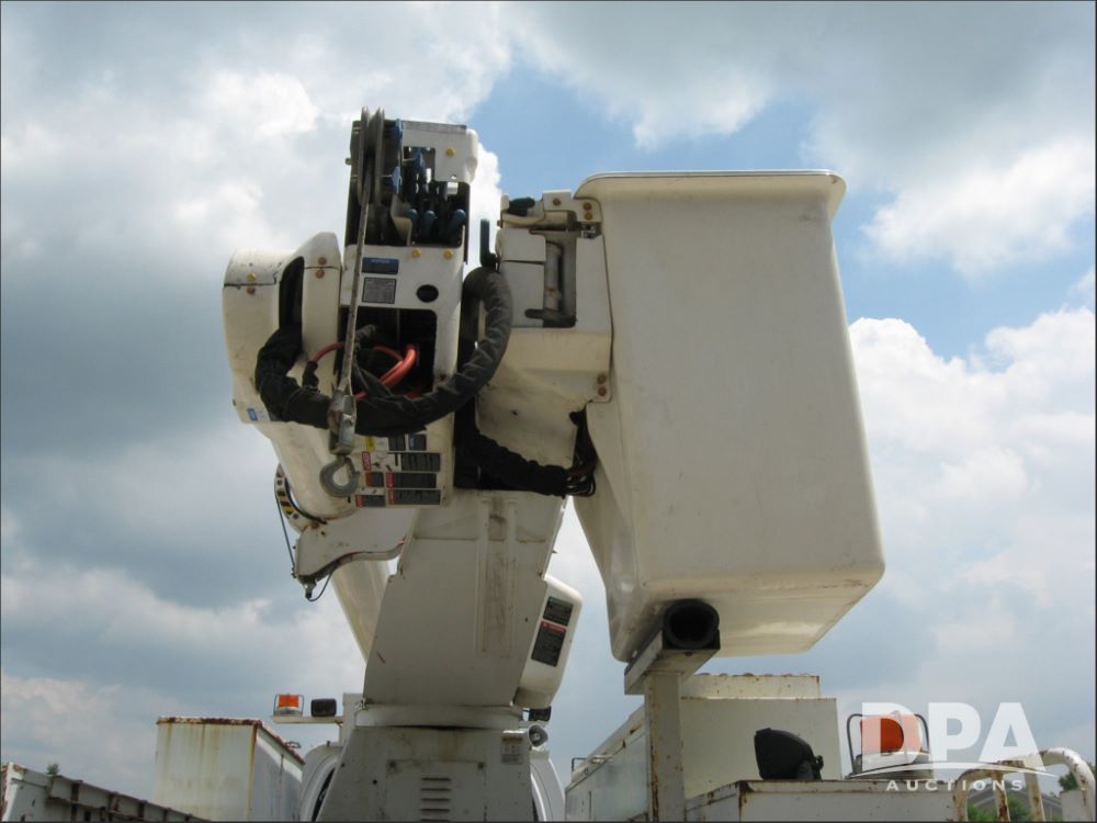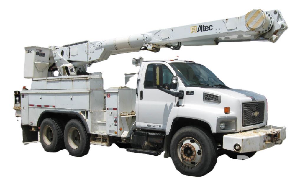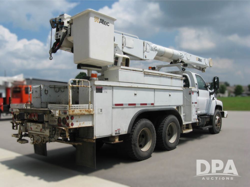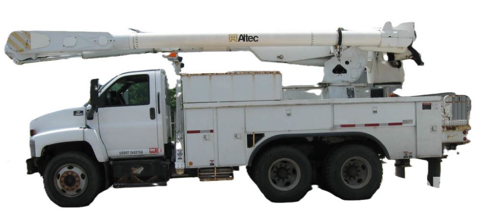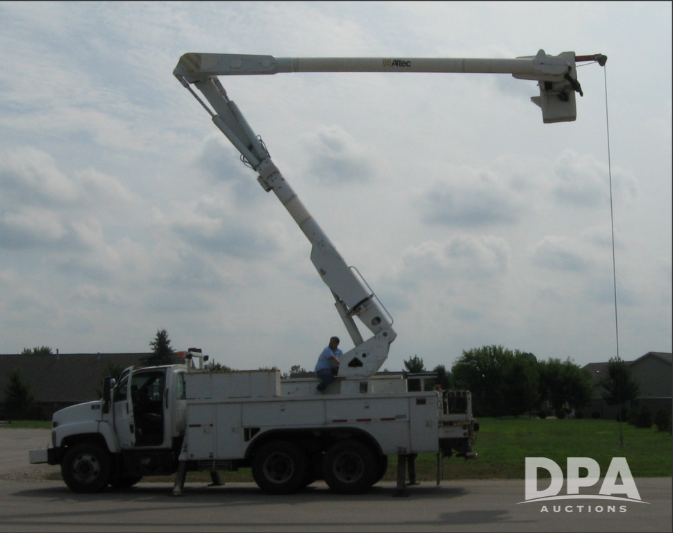 2005 Chevrolet C8500 C8C064 Bucket Truck (JM769), turbo diesel engine, 6 gear Allison transmission, spring ride suspension, air brakes, dual axle, air conditioning, heat, AM/FM radio, manual windows and locks, two fuel tanks, 96 inch wheel base, 11R 22.5 tires, 84,448 miles.