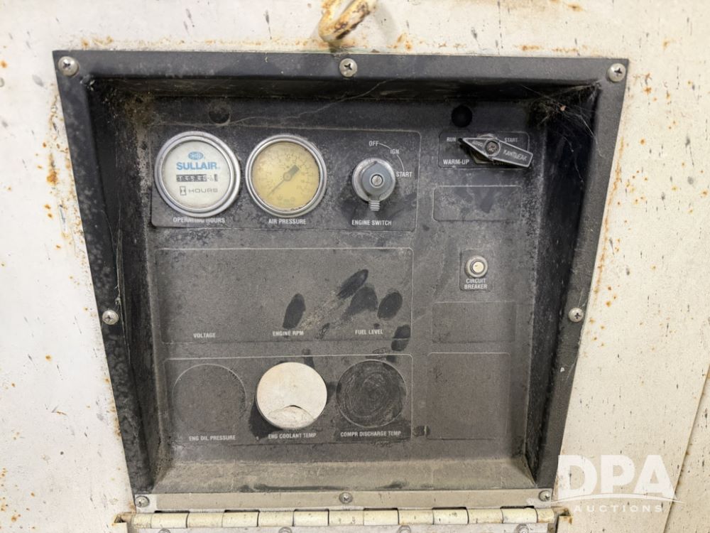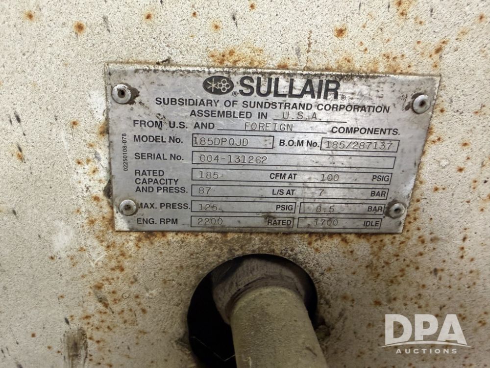 Sullair Diesel Air Compressor (ED5518), model 185DPQJD, portable, front hitch, shows 1,454 hours.