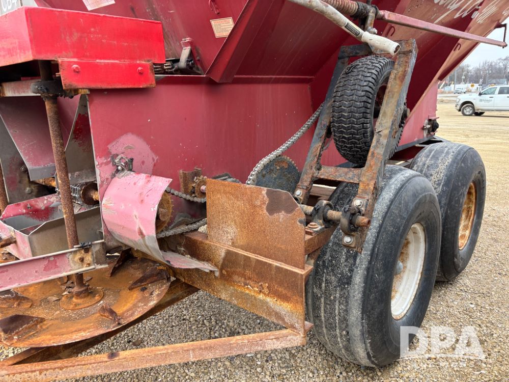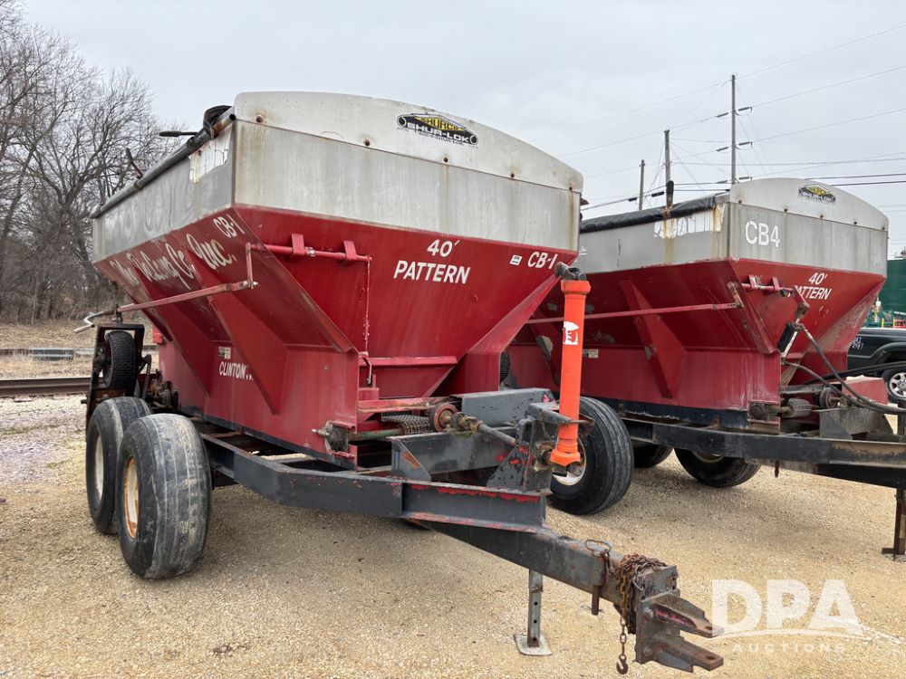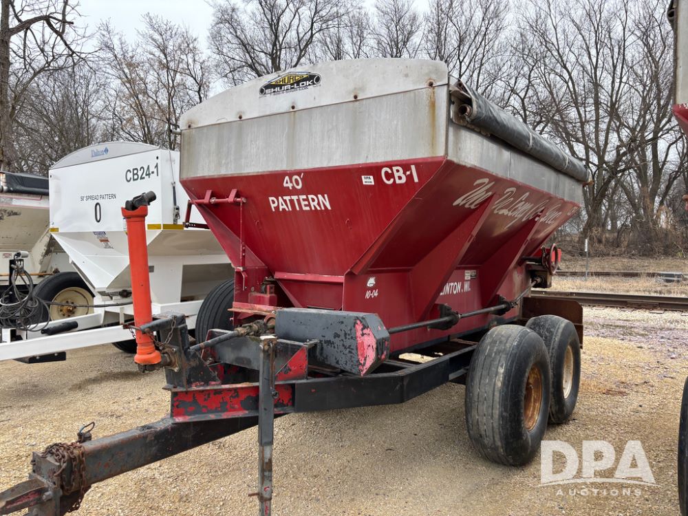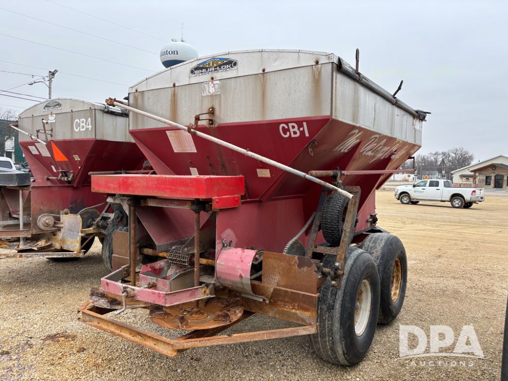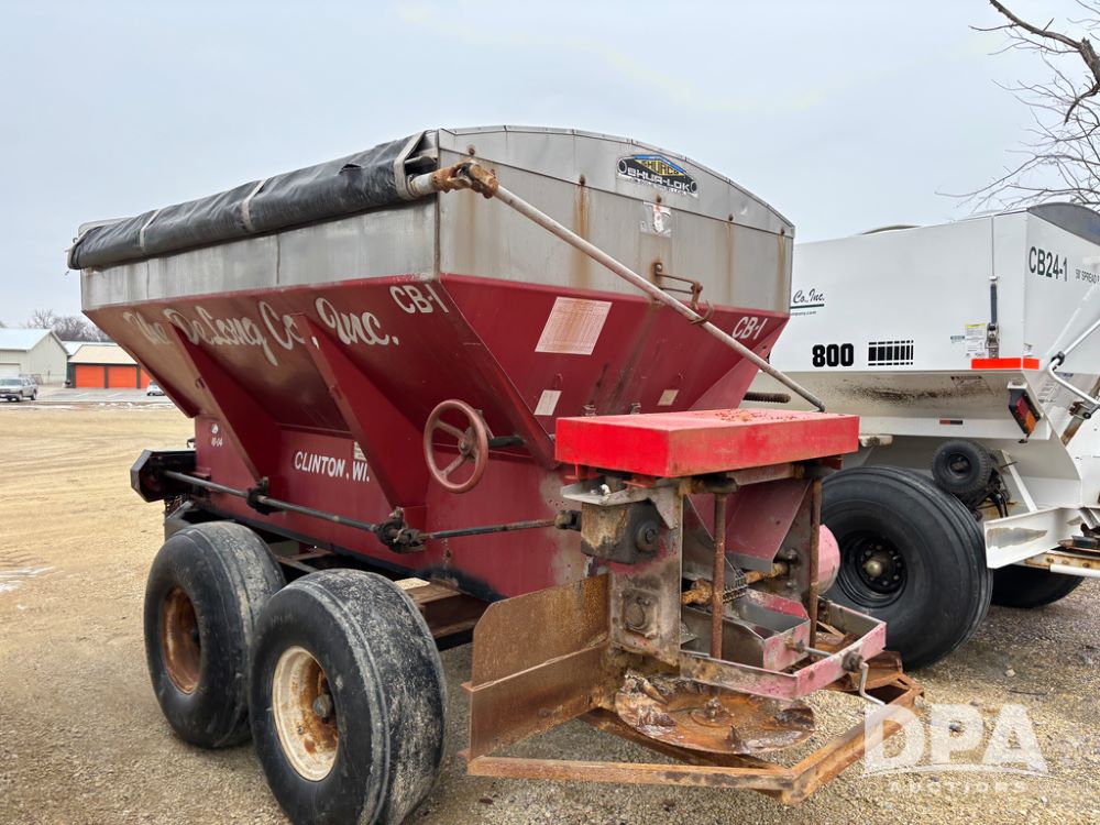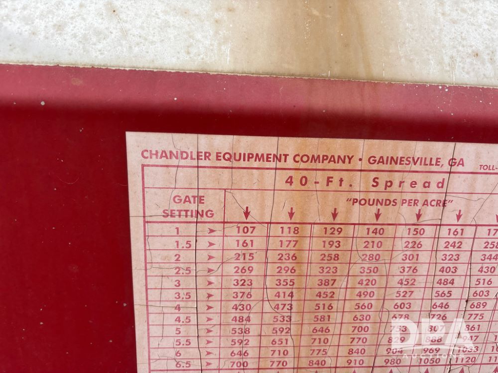 Chandler Dry Spreader Buggy (DR13285 Unit CB-1), stainless steel dry spreader buggy, dual PTO drive rear spinner pans, 40' pattern, ground drive web chain, roll over tarp, 14L-16.1 tires.