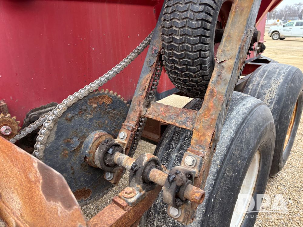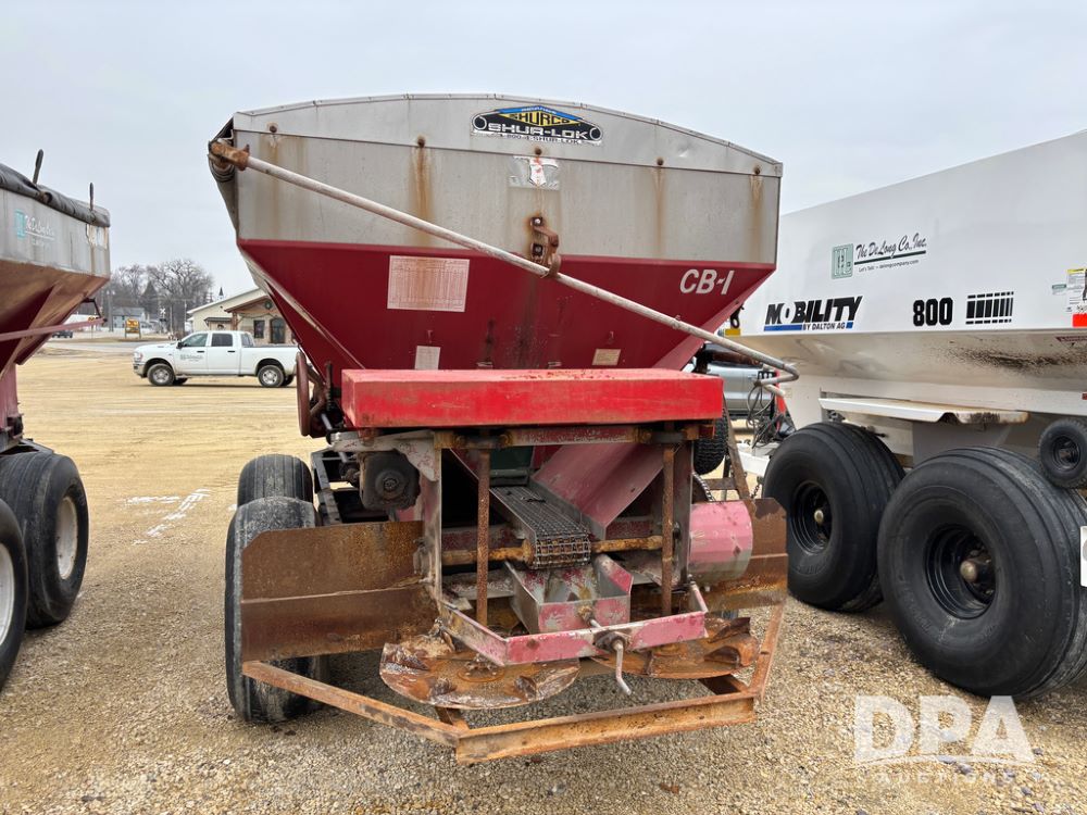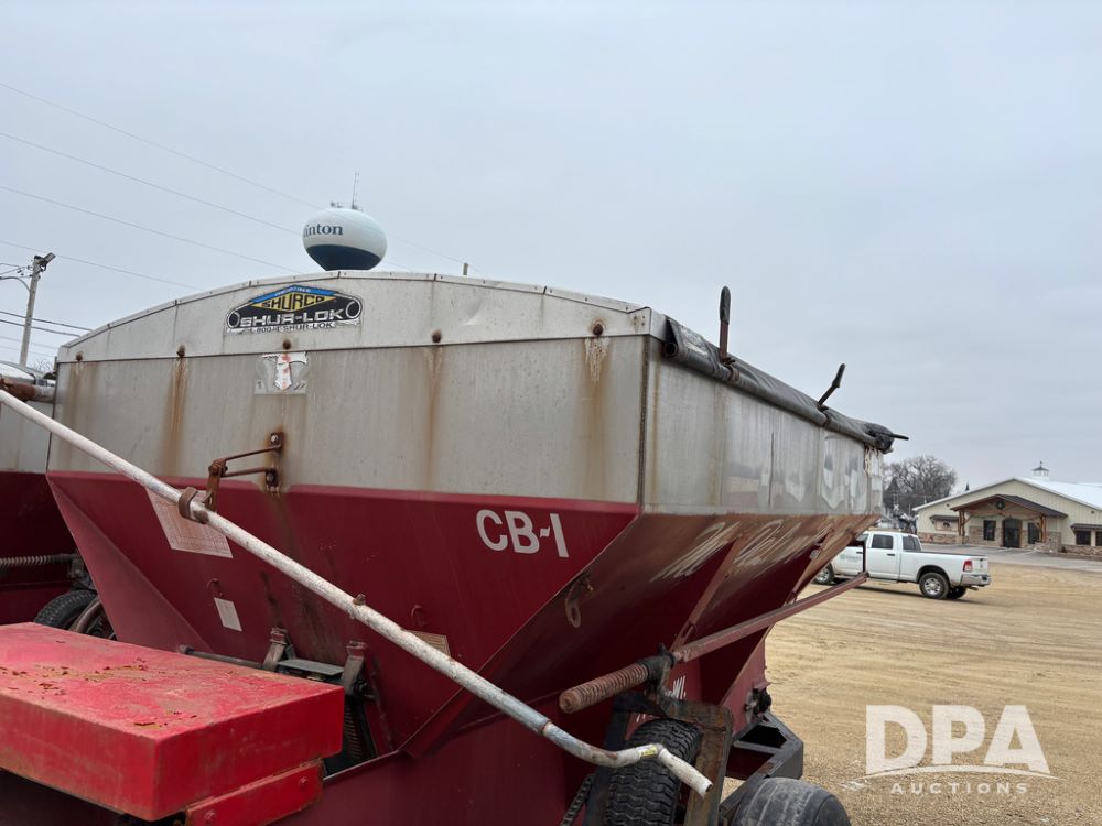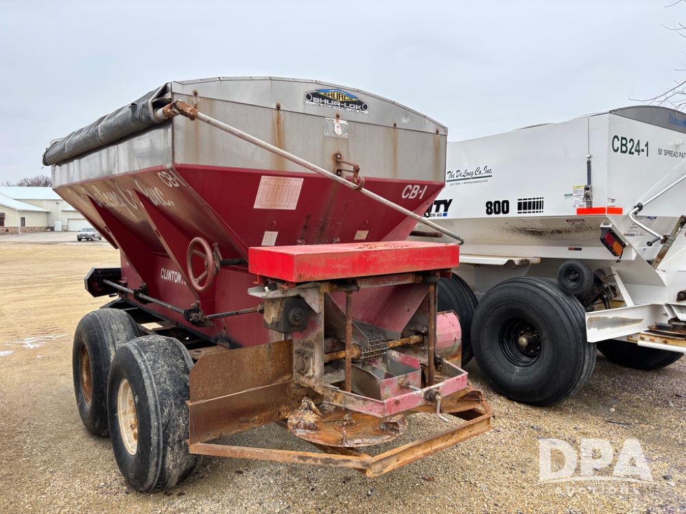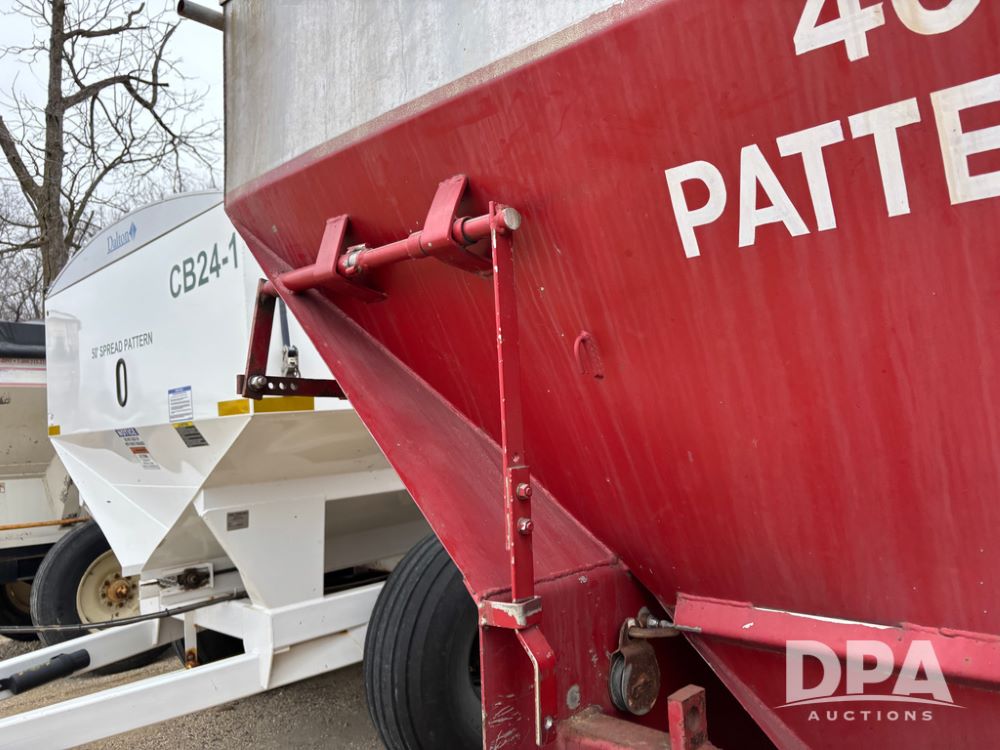 Chandler Dry Spreader Buggy (DR13285 Unit CB-1), stainless steel dry spreader buggy, dual PTO drive rear spinner pans, 40' pattern, ground drive web chain, roll over tarp, 14L-16.1 tires.