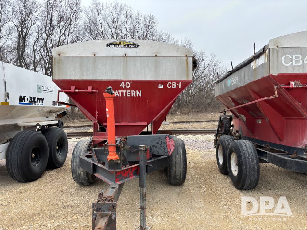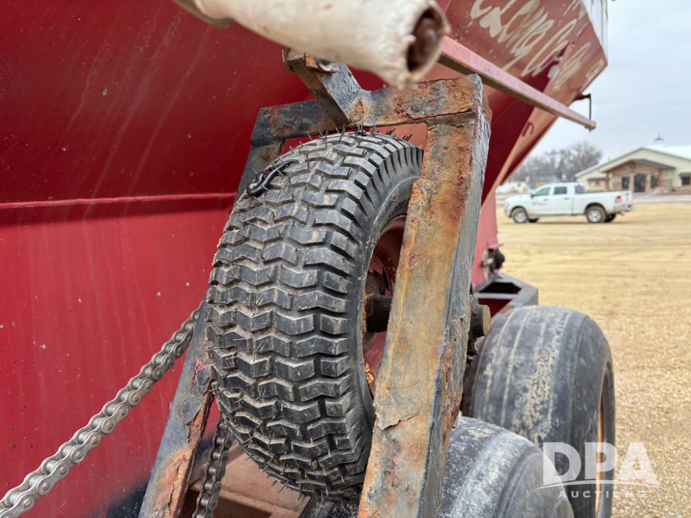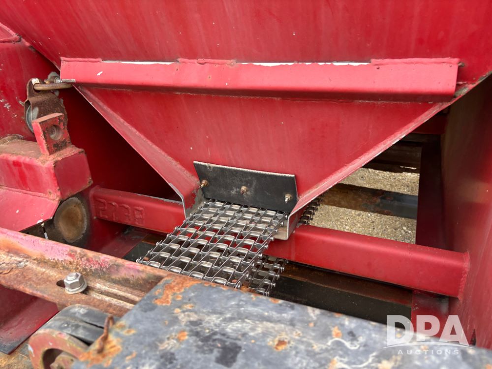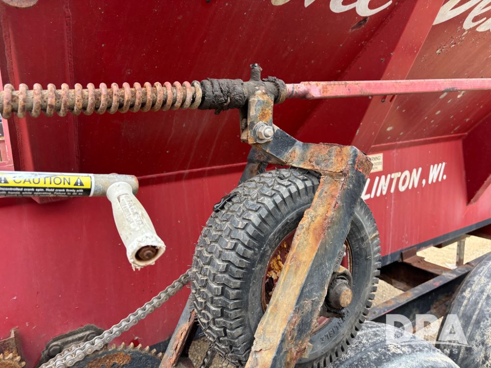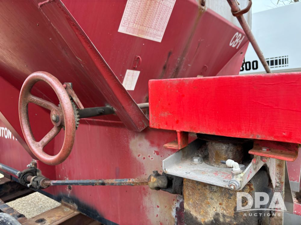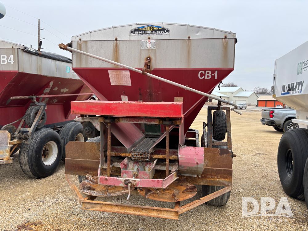 Chandler Dry Spreader Buggy (DR13285 Unit CB-1), stainless steel dry spreader buggy, dual PTO drive rear spinner pans, 40' pattern, ground drive web chain, roll over tarp, 14L-16.1 tires.