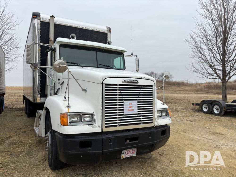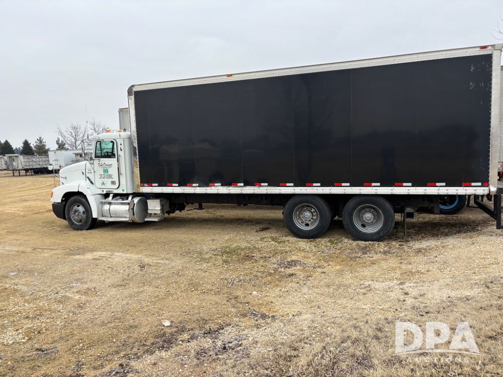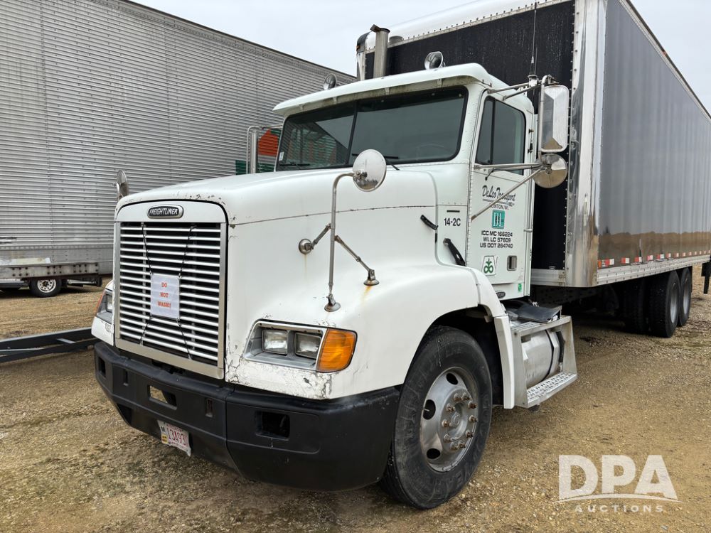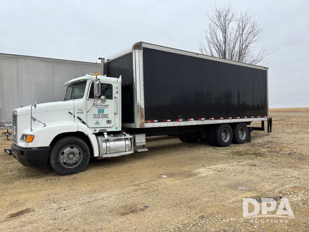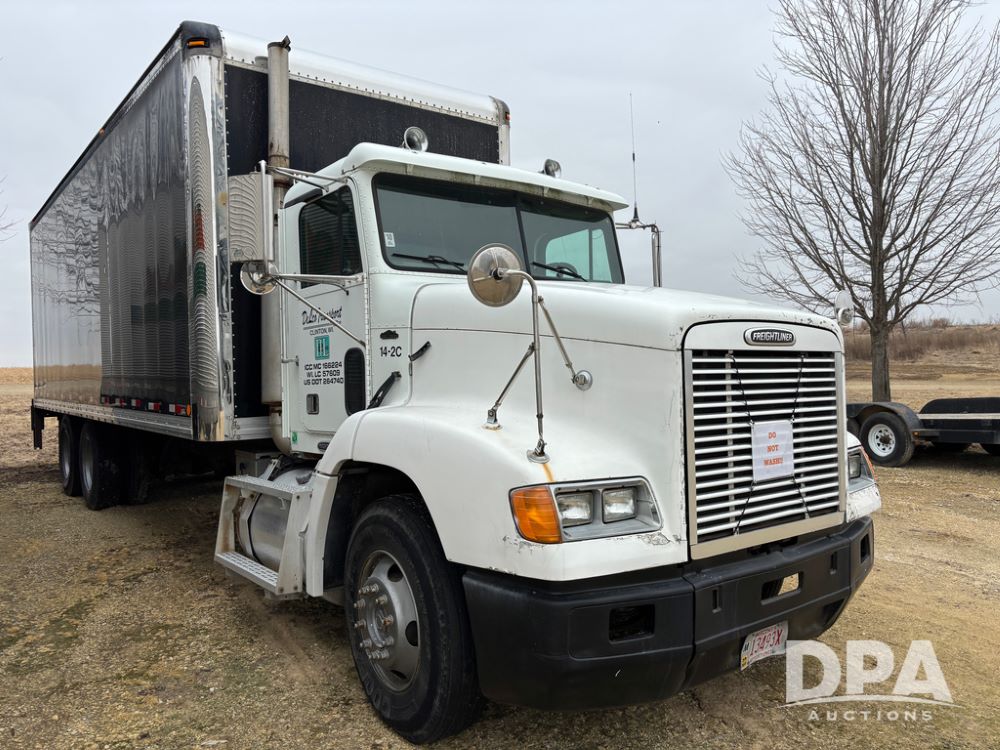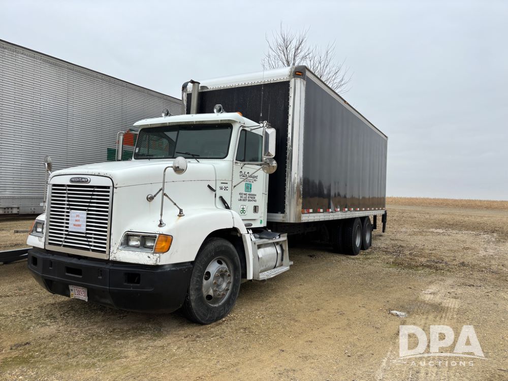 1999 Freightliner Van Truck (DR13282 Unit 14-2C), Cummins diesel engine, 10 speed transmission, tandem axle full screw, air ride suspension, Ohnsorg 26' van box, rear roll up door, light panel roof, cruise control, cab heat/air conditioning, dual aluminum fuel tanks, 22.5 tire.