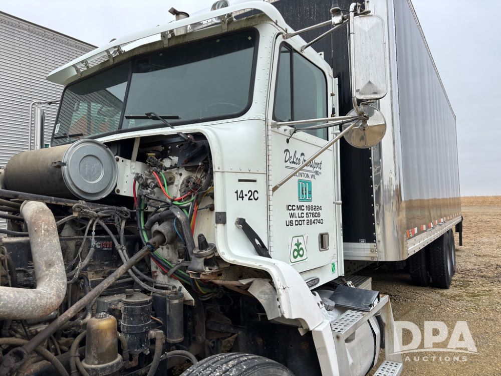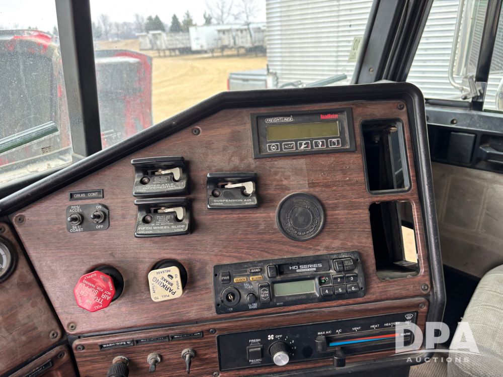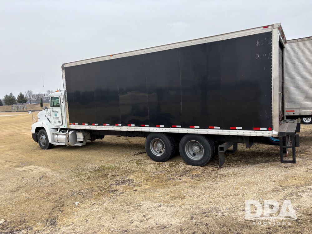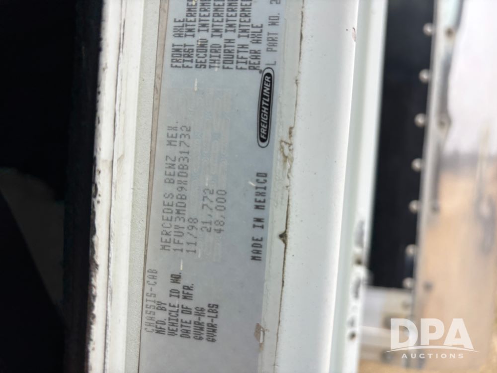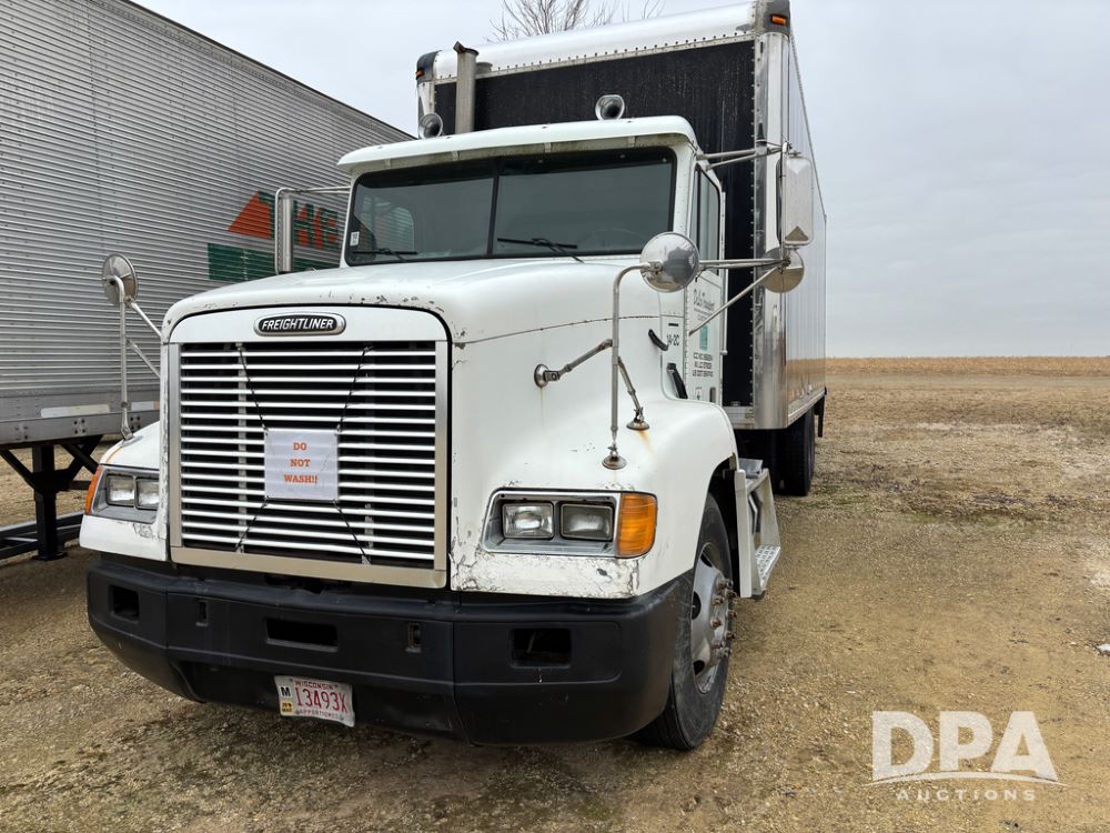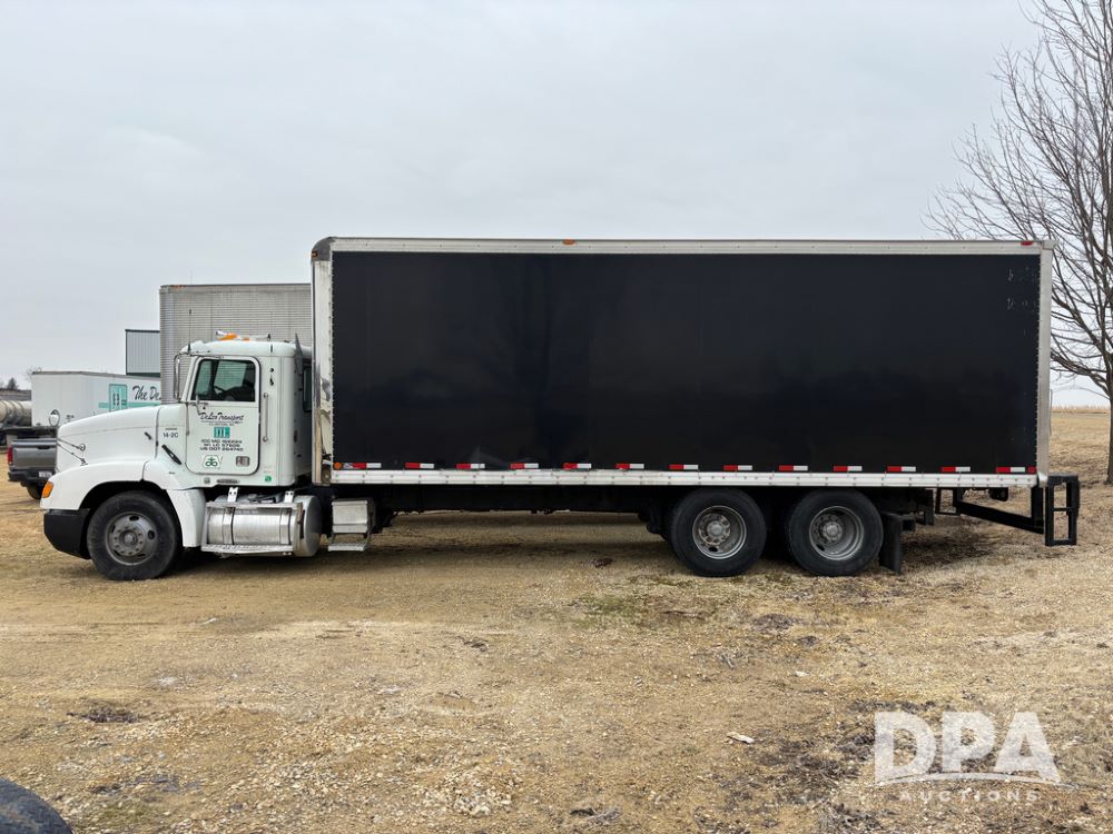 1999 Freightliner Van Truck (DR13282 Unit 14-2C), Cummins diesel engine, 10 speed transmission, tandem axle full screw, air ride suspension, Ohnsorg 26' van box, rear roll up door, light panel roof, cruise control, cab heat/air conditioning, dual aluminum fuel tanks, 22.5 tire.