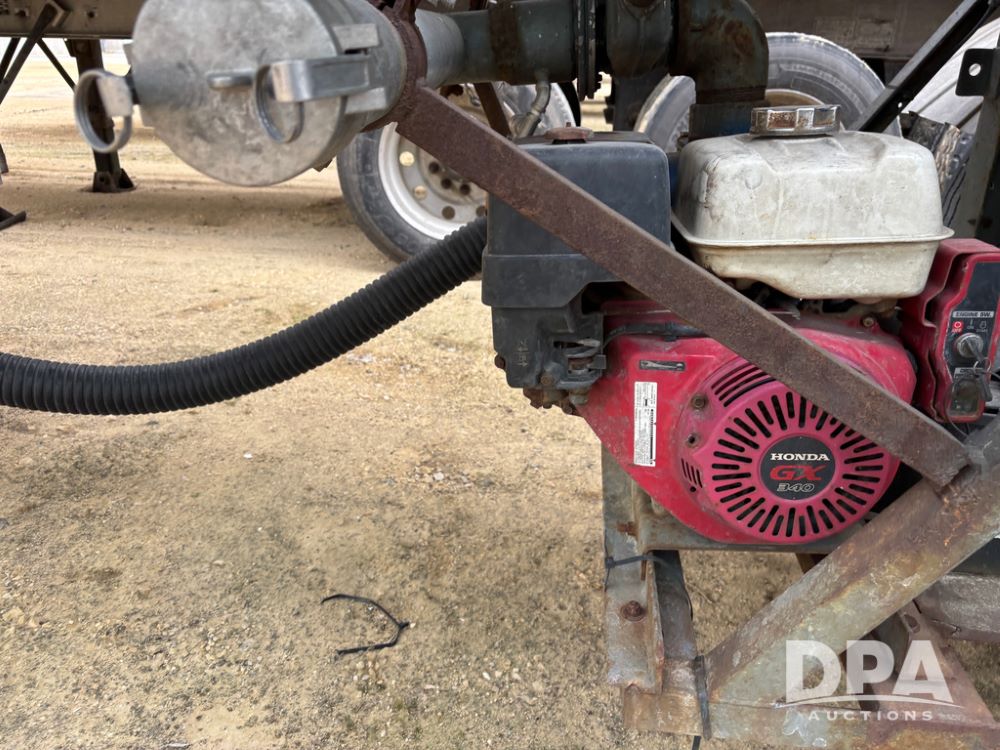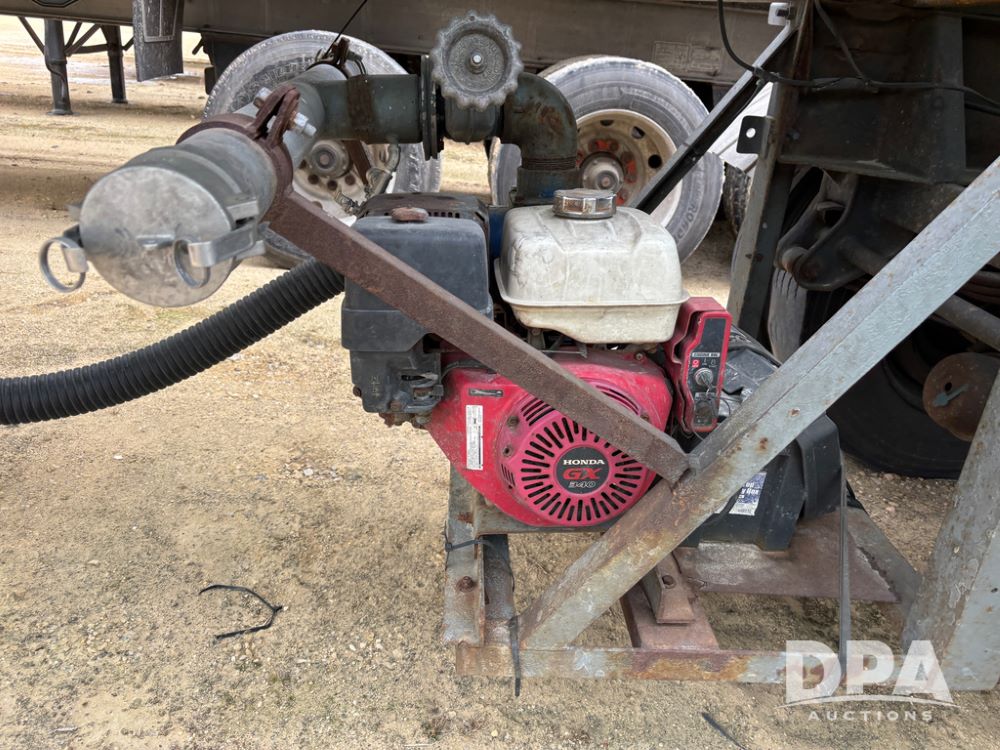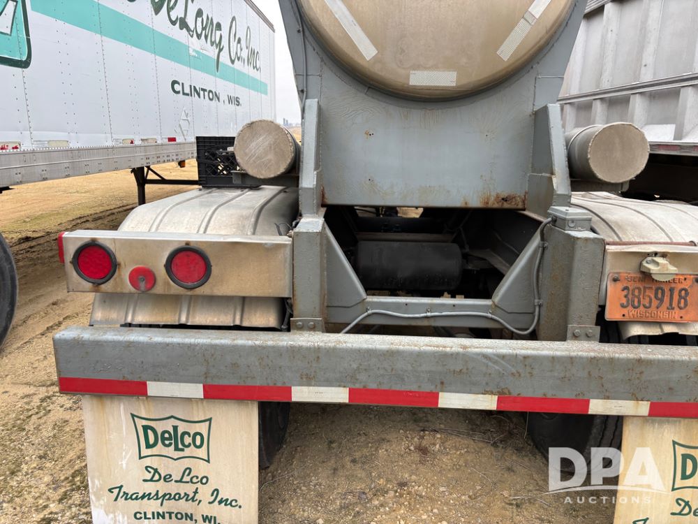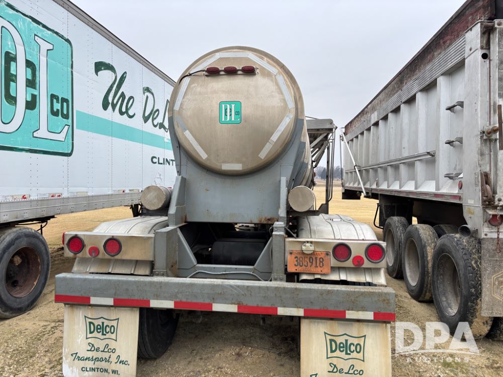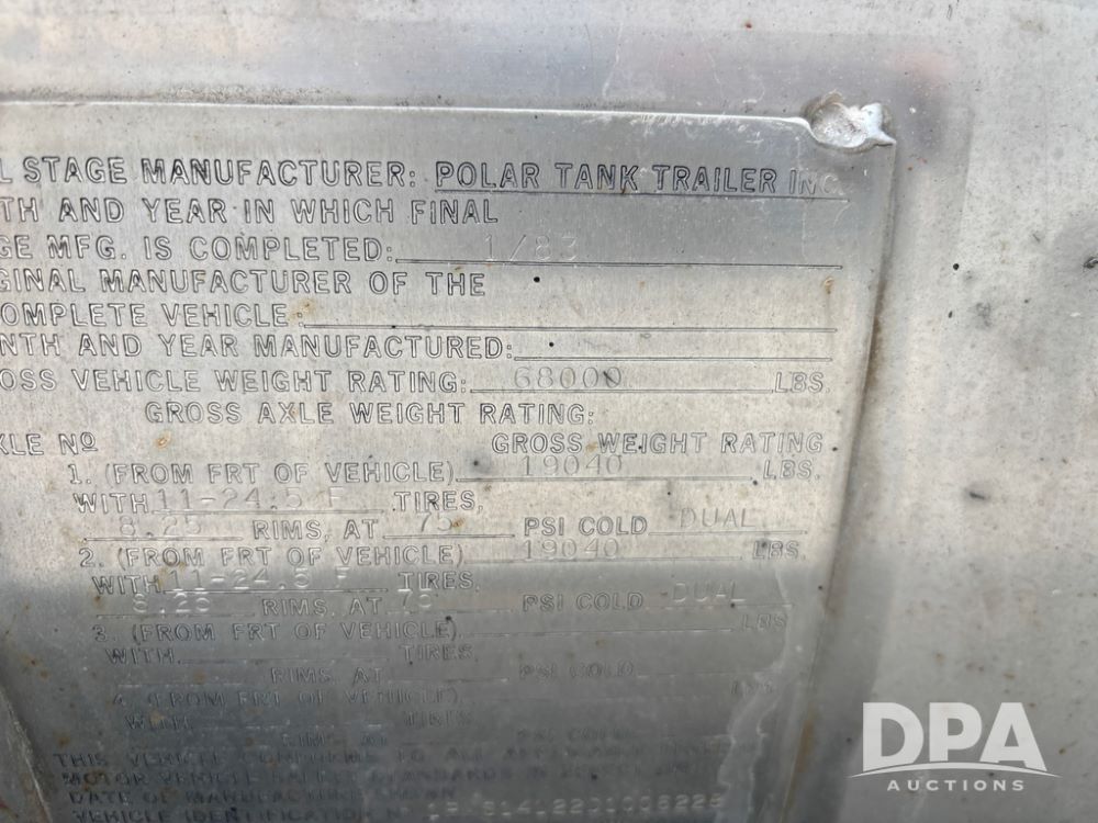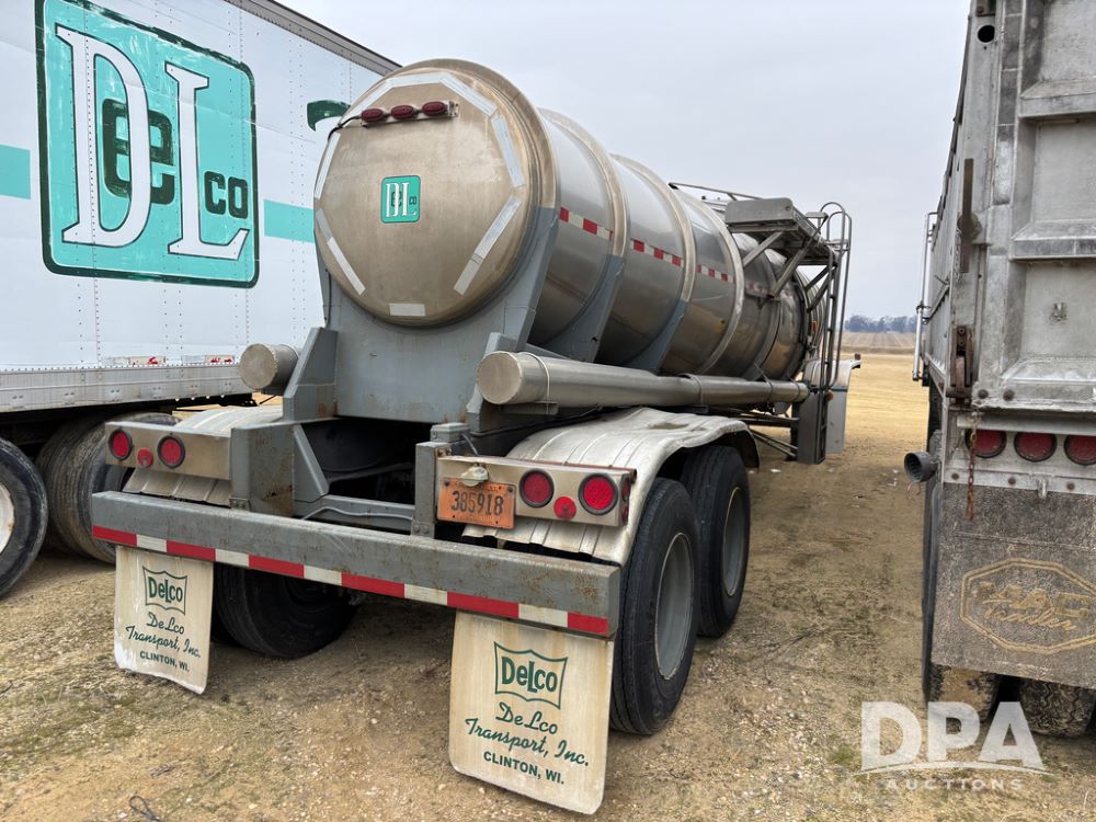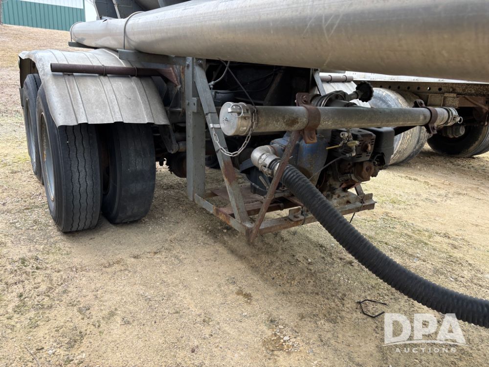 1983 Polar Liquid Trailer (DR13283 Unit 83-3), drop belly stainless steel liquid transport trailer, tank has baffles, gas engine w/electric start, 3'' liquid pump, tandem axle, spring suspension, 22.5 tires.
