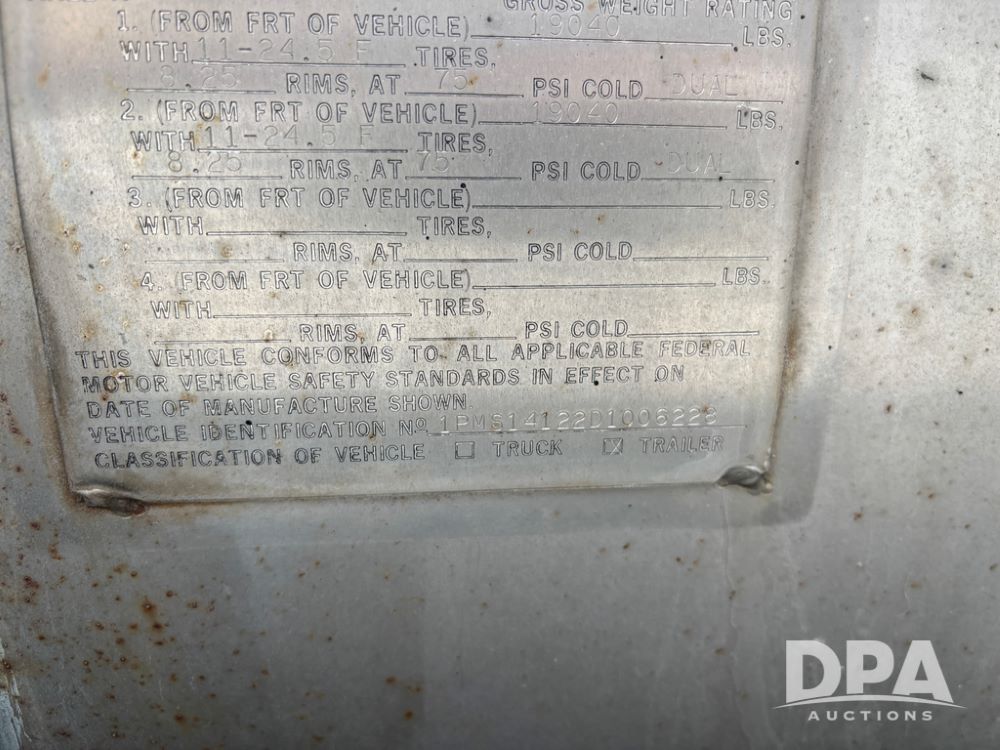 Notes: This liquid trailer has a seep at one of the ring supports. This trailer was in use until January 2026. Call seller for more details.