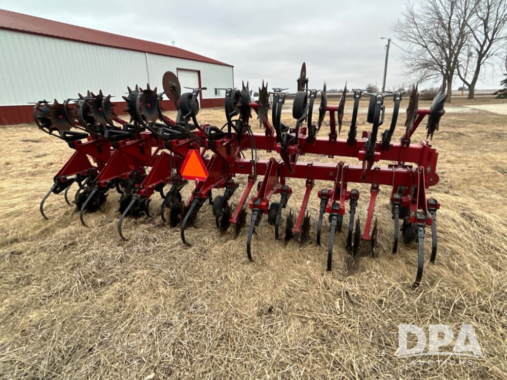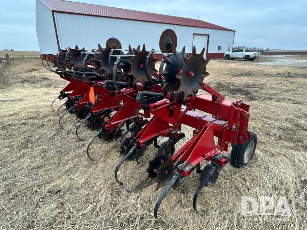 Case IH 183 Row Crop Cultivator (LS0550), 12-row, 3-section folding, 3-pt hitch mounted, hydraulic raise/lower, hydraulic fold/unfold, rolling shields.