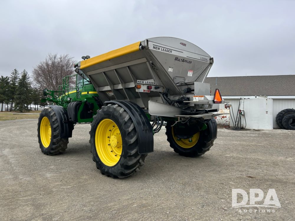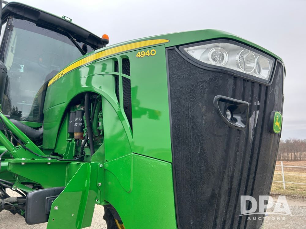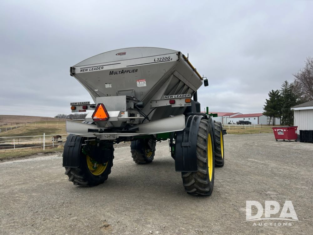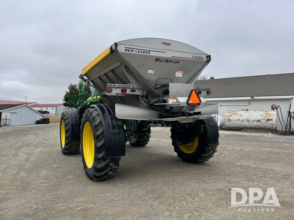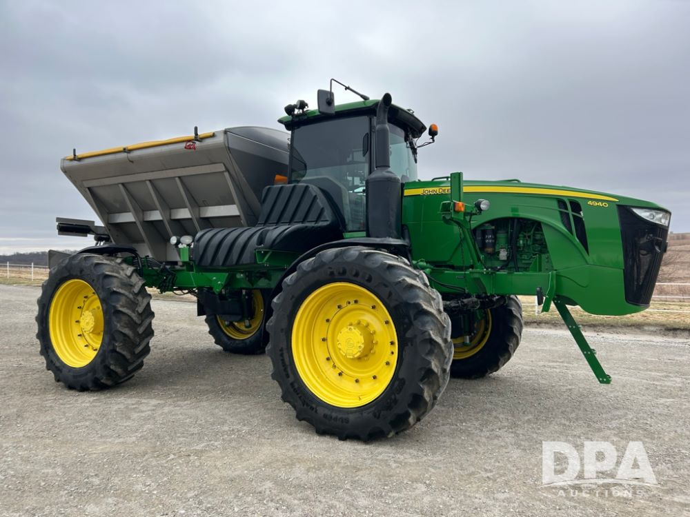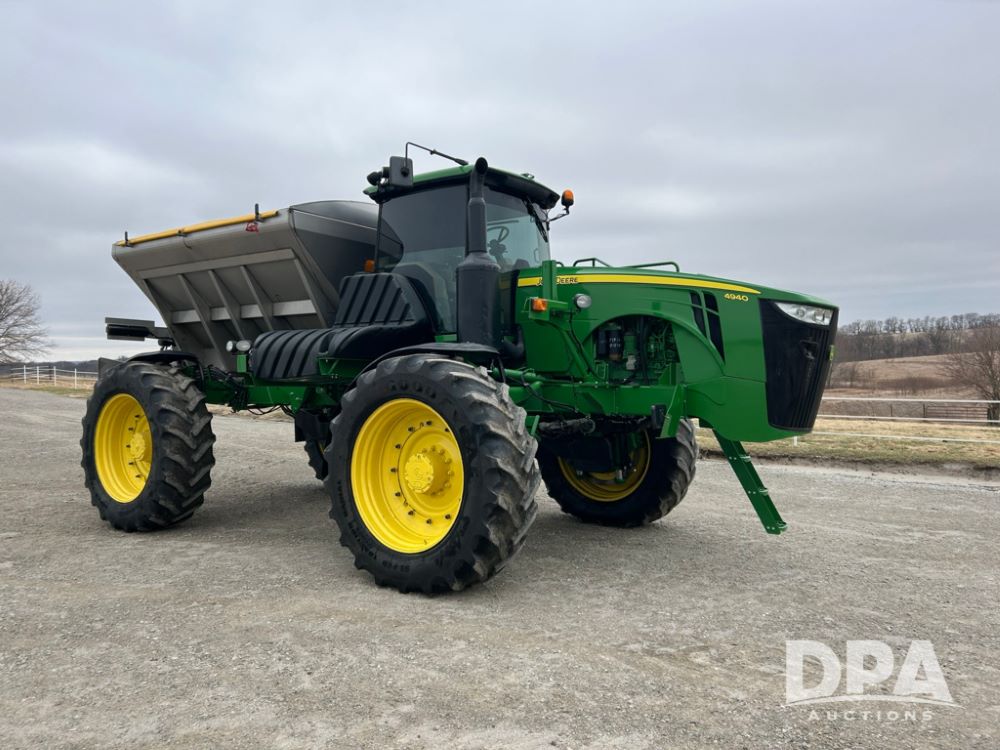 2012 John Deere 4940 Dry Fertilizer Applicator (LT1551), pre DEF engine, New Leader 3220G4 stainless steel dry fertilizer bed, L3220 5 ft MultApplier insert, camera in each bin, 2630 Display, 3000 receiver, LED lighting, beacon lights, hydraulic tread adjust, fenders, field office, tinted windows, foot pegs, backup camera, 620/70R46 tires, electric roll tarp, shows 3,840 hours.