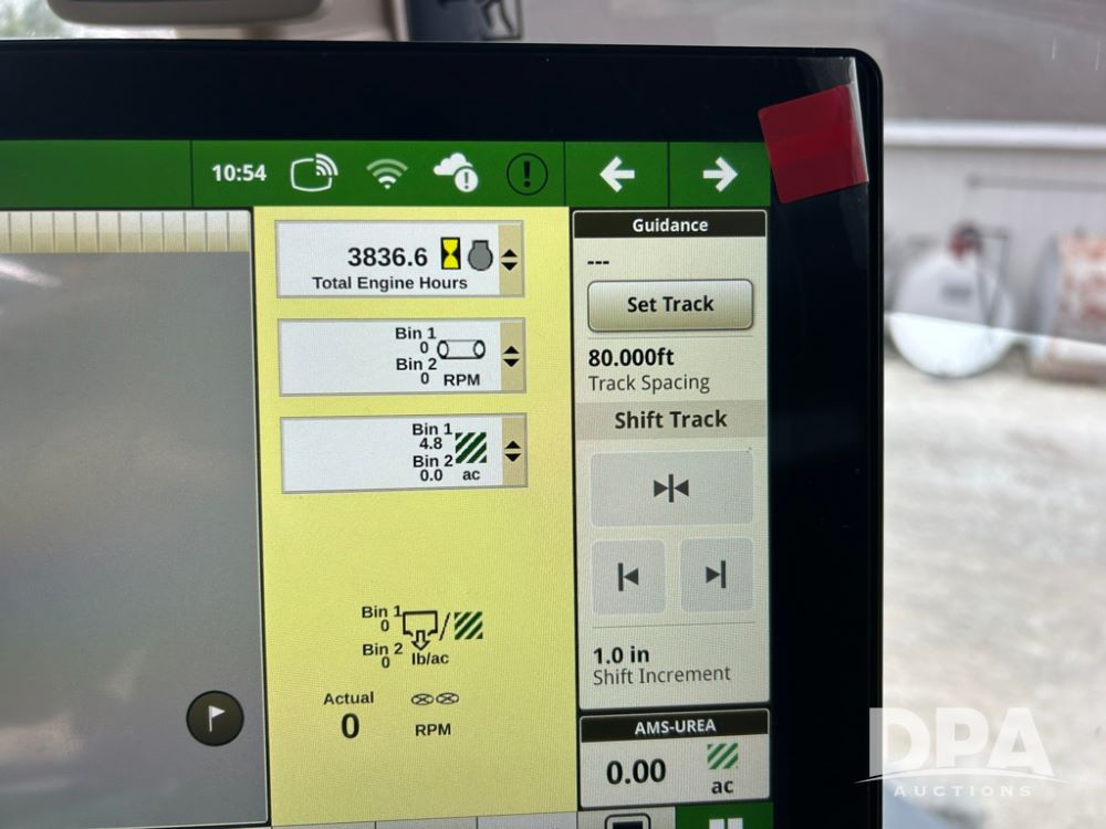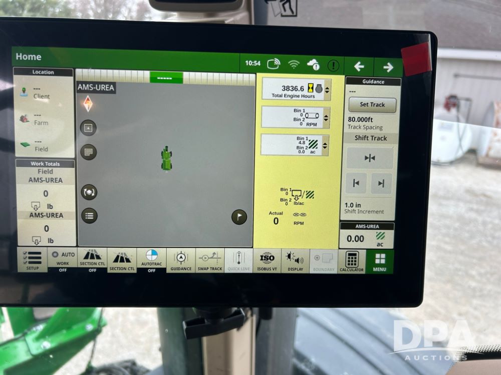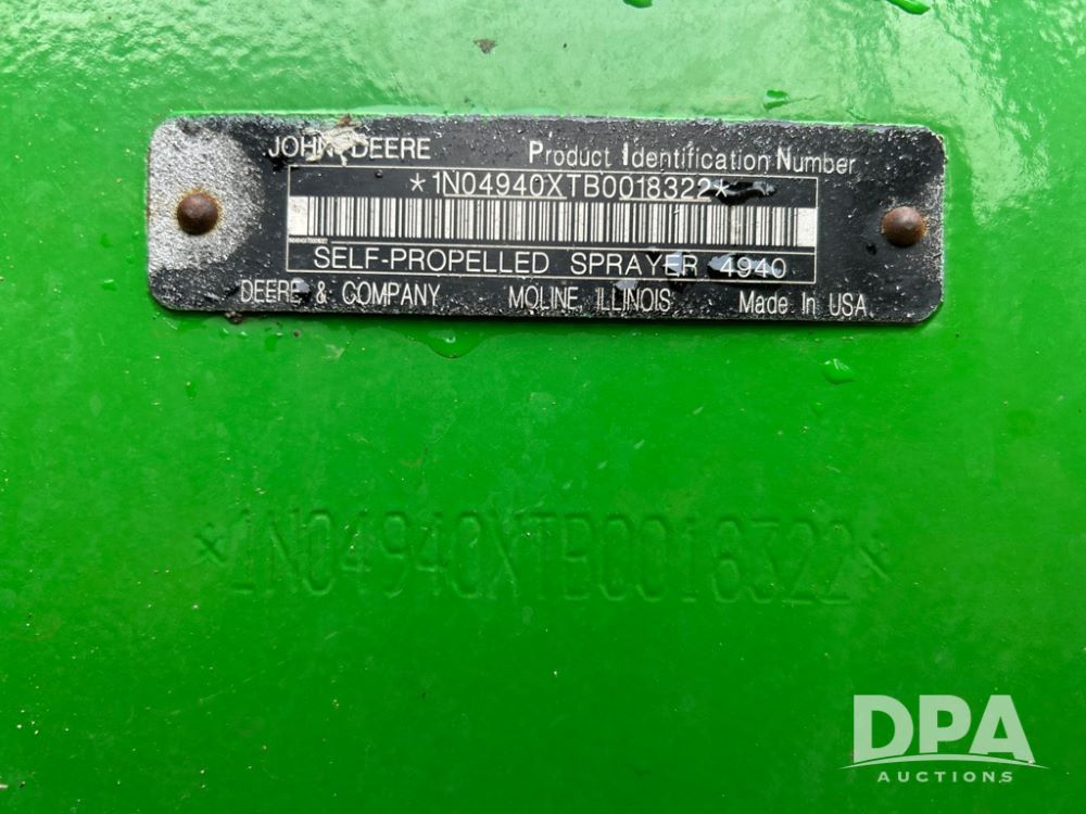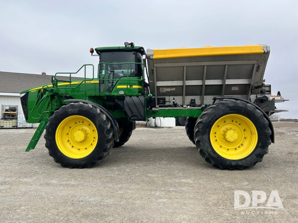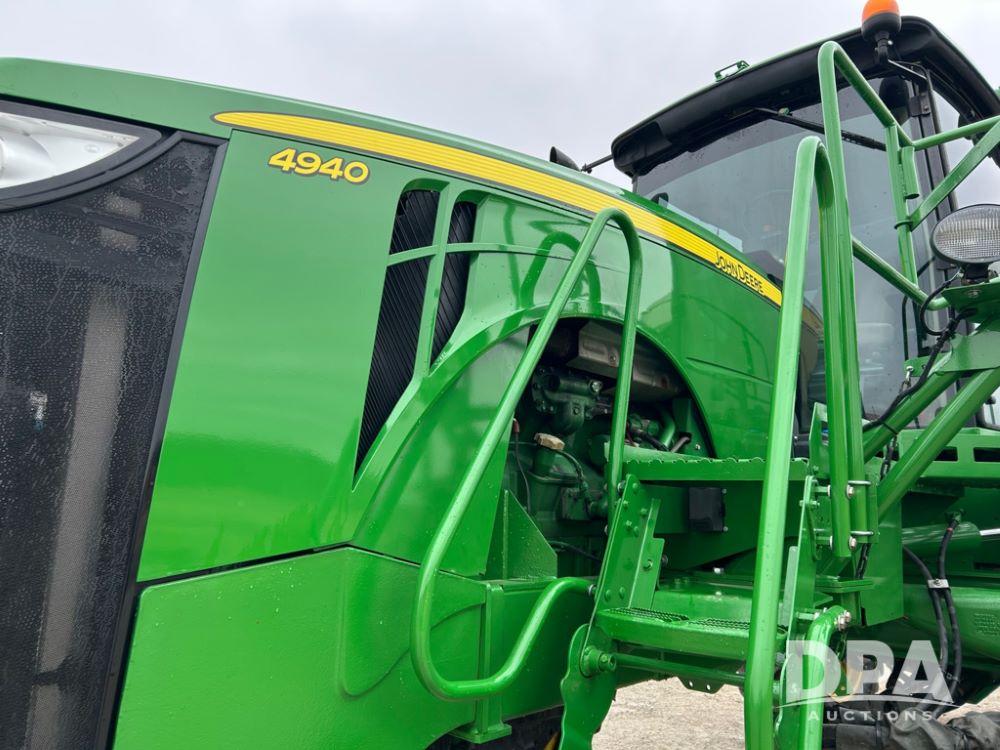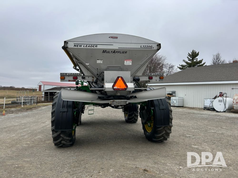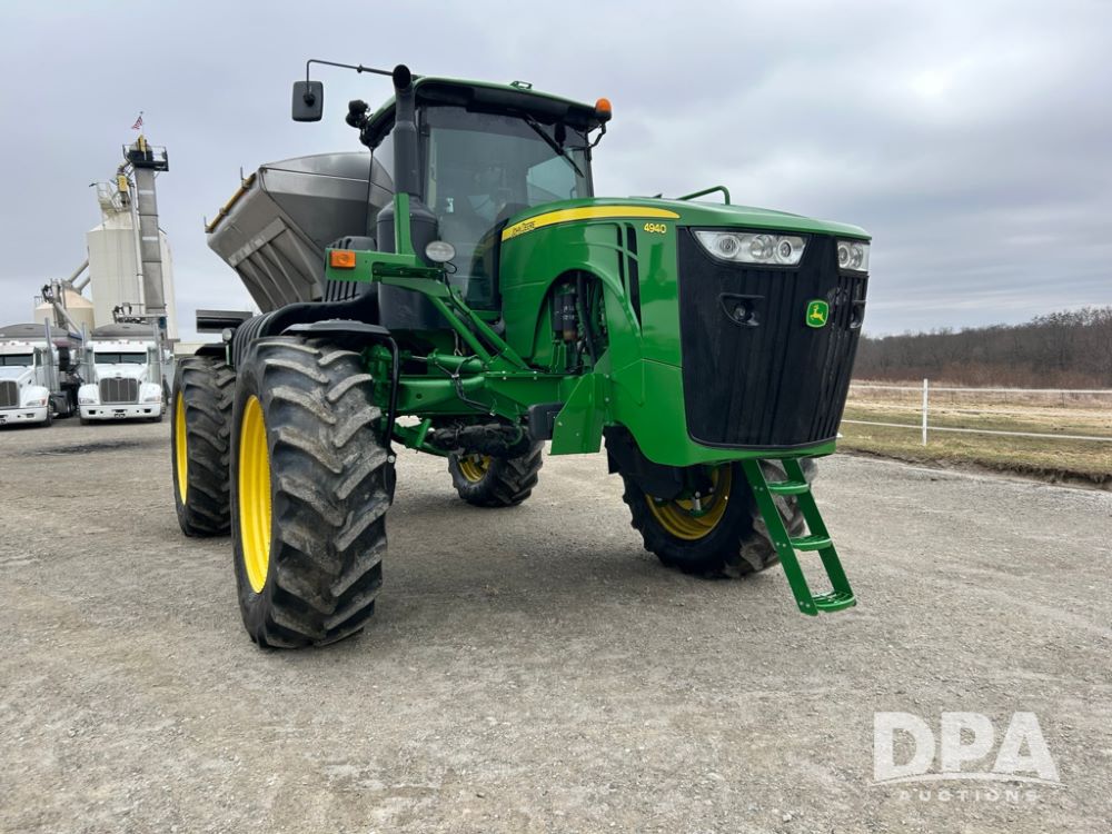 2012 John Deere 4940 Dry Fertilizer Applicator (LT1551), pre DEF engine, New Leader 3220G4 stainless steel dry fertilizer bed, L3220 5 ft MultApplier insert, camera in each bin, 2630 Display, 3000 receiver, LED lighting, beacon lights, hydraulic tread adjust, fenders, field office, tinted windows, foot pegs, backup camera, 620/70R46 tires, electric roll tarp, shows 3,840 hours.