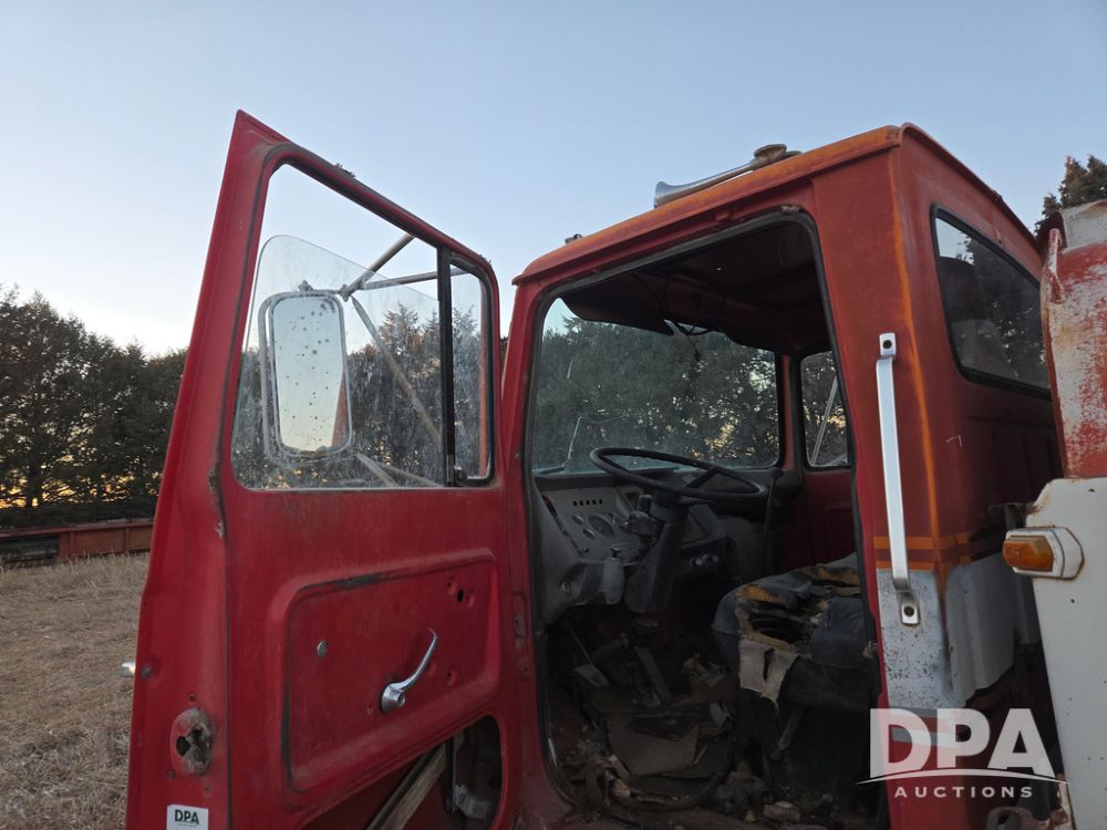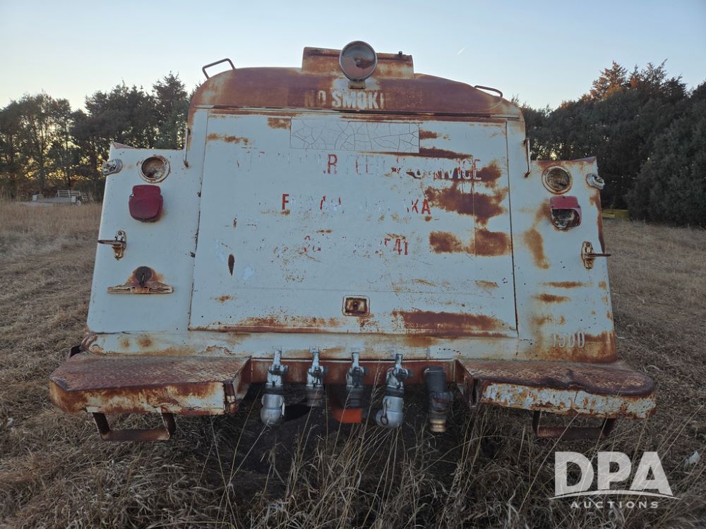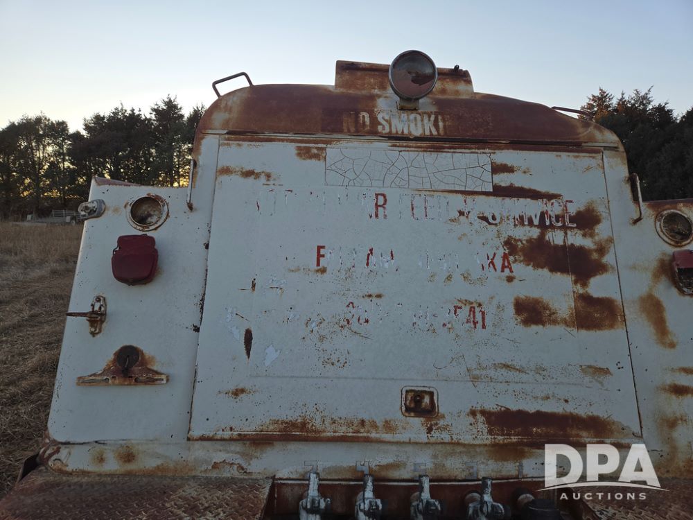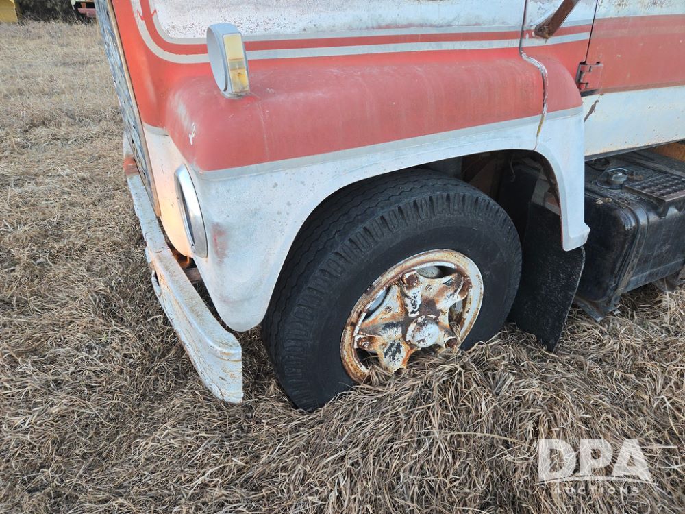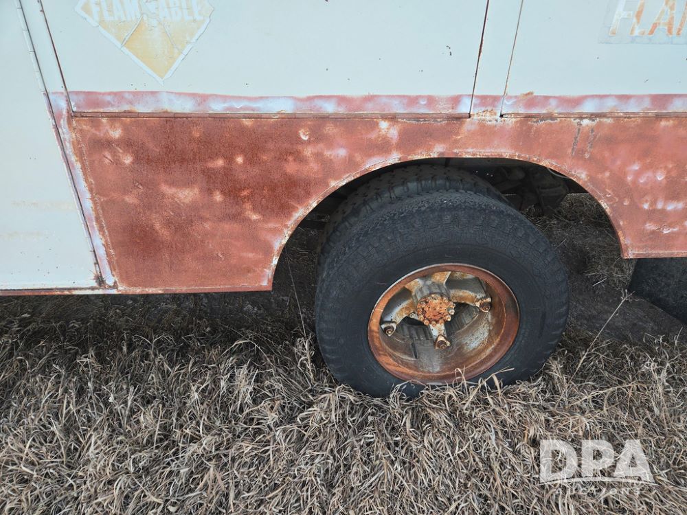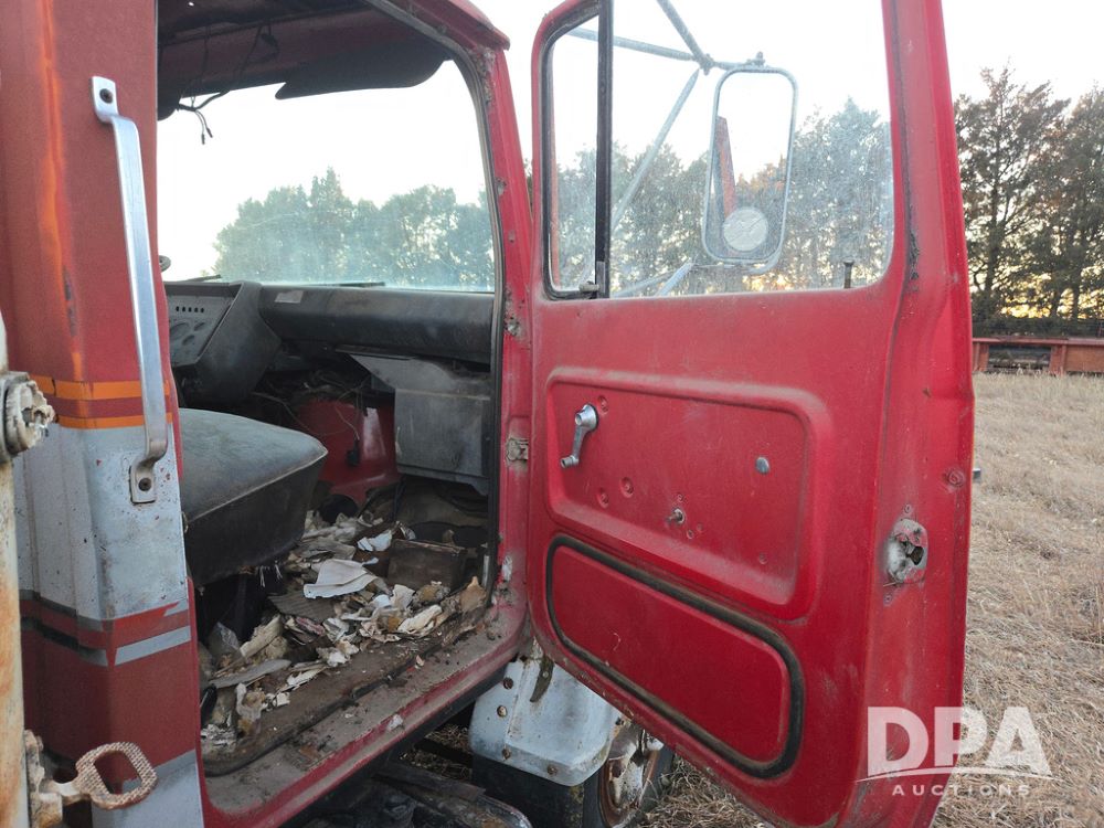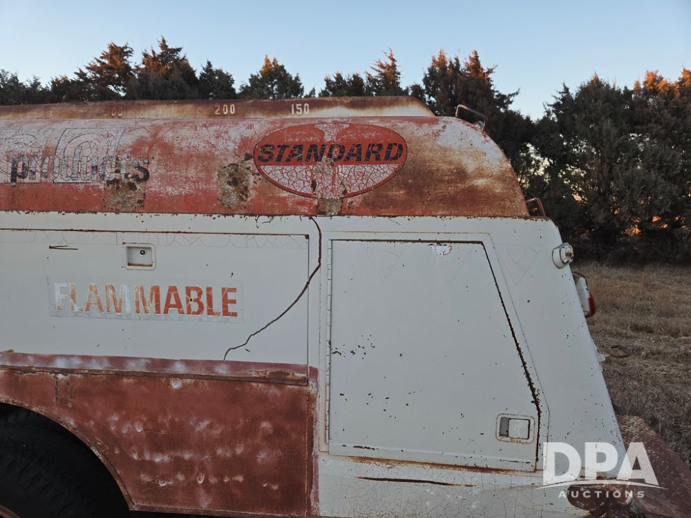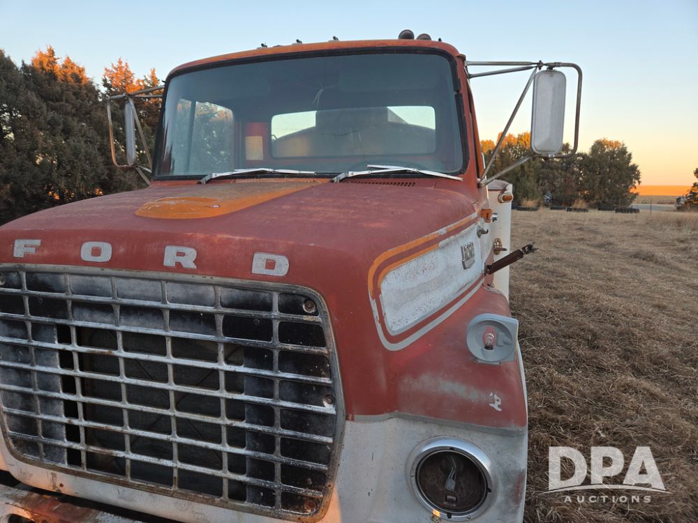 1971 Ford LN 750 S/A Fuel Truck (KS0105), 361 gas motor, 5 speed manual transmission, 2 speed rear axle, PTO, Dayton hubs, air brakes, air park brakes, dual fuel tanks, 10.00/20 tires, fuel body: 5 tanks totaling 1500 gallon, (1) 500 gallon, (1) 350 gallon, (1) 300 gallon, (1) 200 gallon, (1) 150 gallon, dual manual hose reels, only 1 with hose, PTO driven pump with meter.