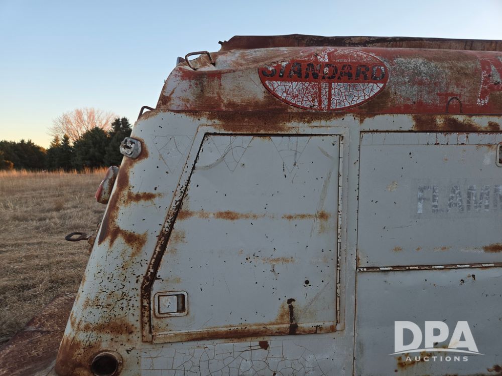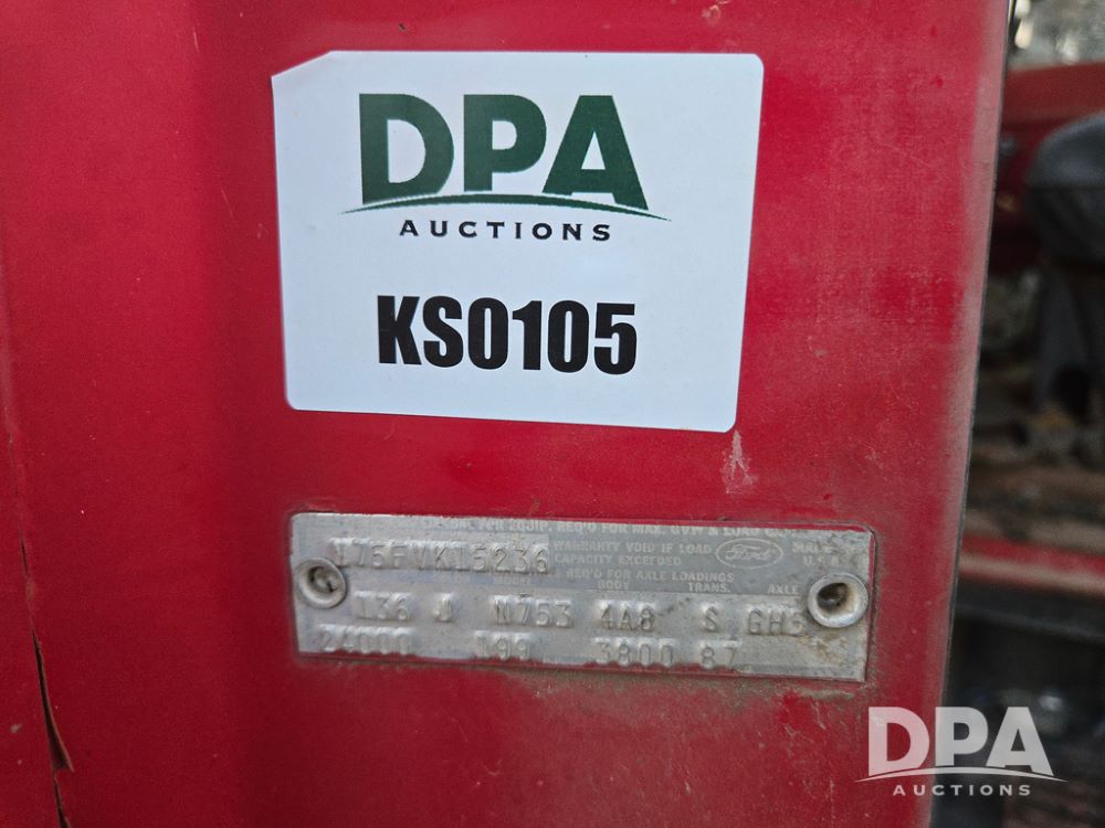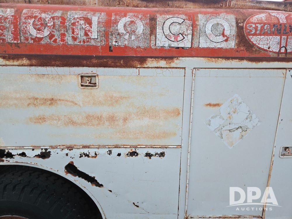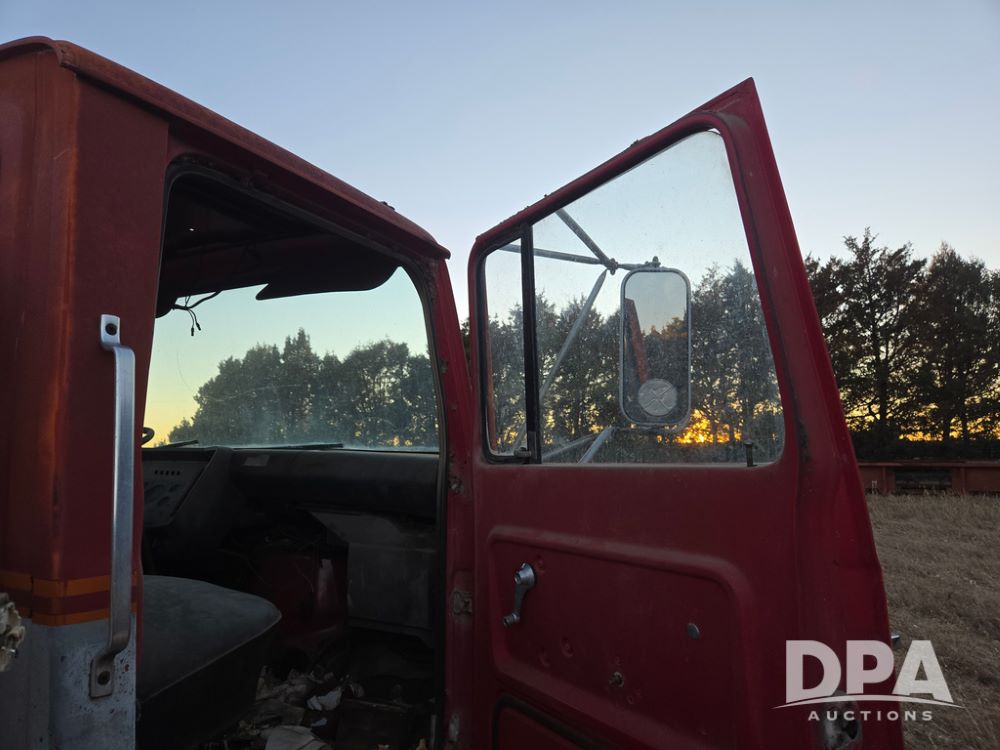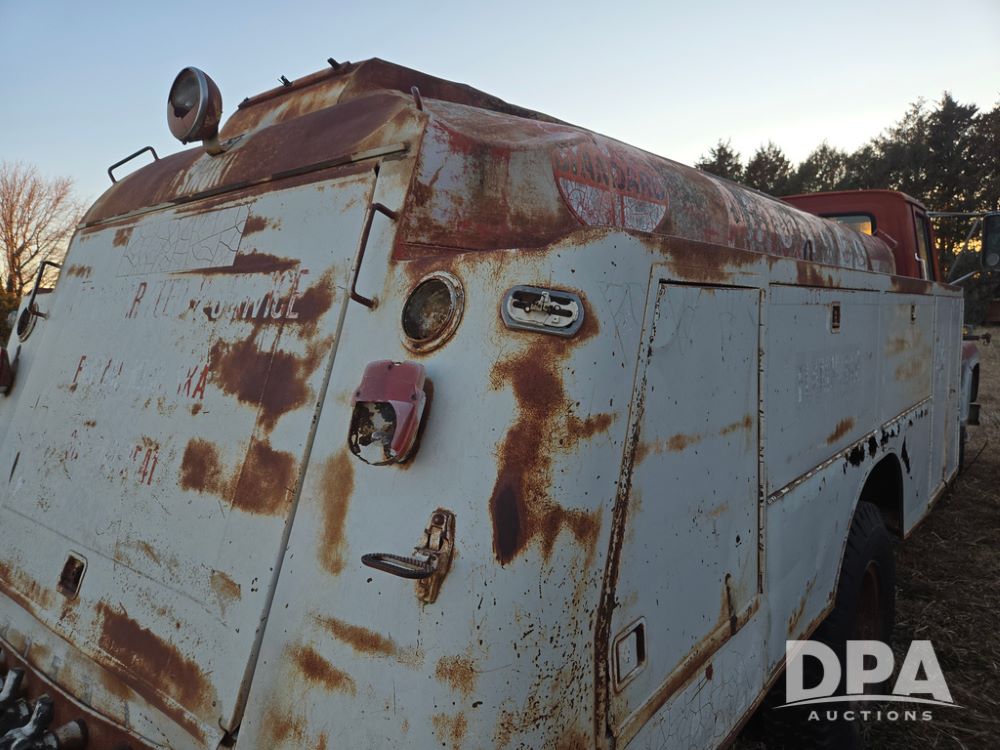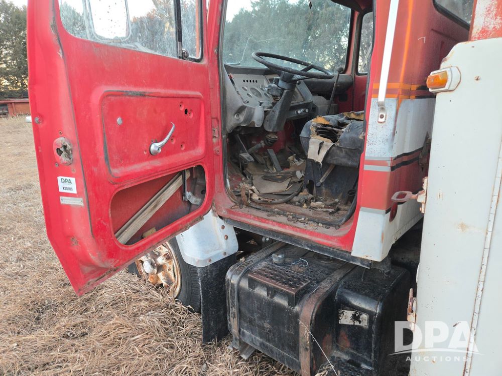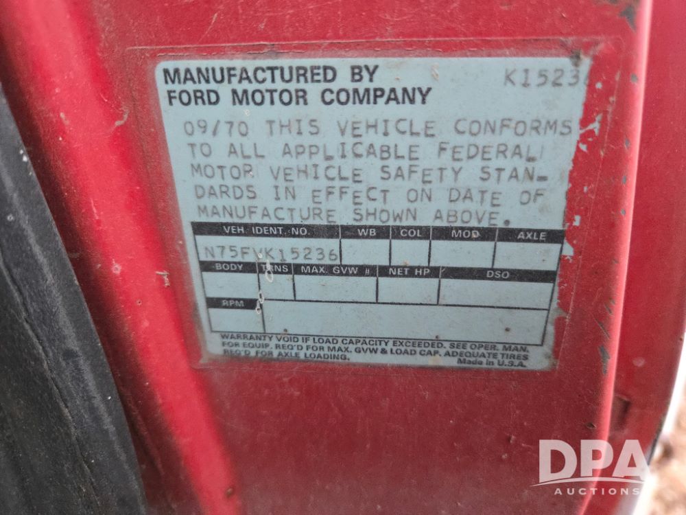 1971 Ford LN 750 S/A Fuel Truck (KS0105), 361 gas motor, 5 speed manual transmission, 2 speed rear axle, PTO, Dayton hubs, air brakes, air park brakes, dual fuel tanks, 10.00/20 tires, fuel body: 5 tanks totaling 1500 gallon, (1) 500 gallon, (1) 350 gallon, (1) 300 gallon, (1) 200 gallon, (1) 150 gallon, dual manual hose reels, only 1 with hose, PTO driven pump with meter.