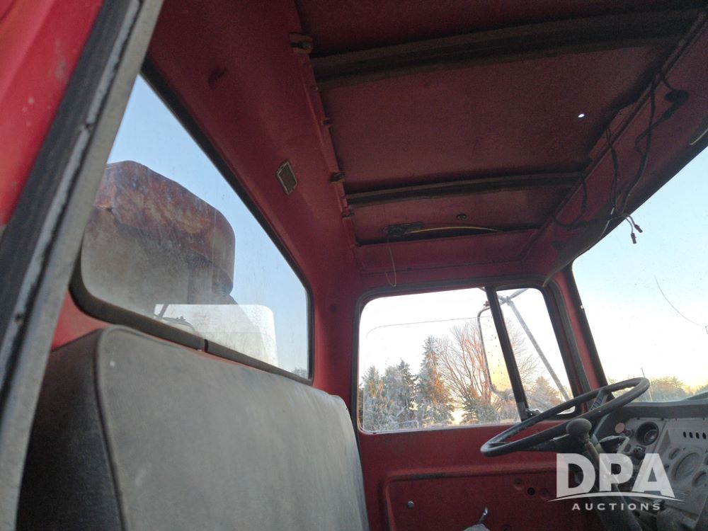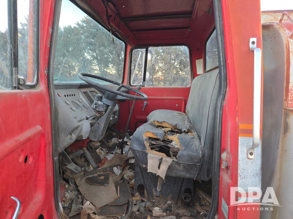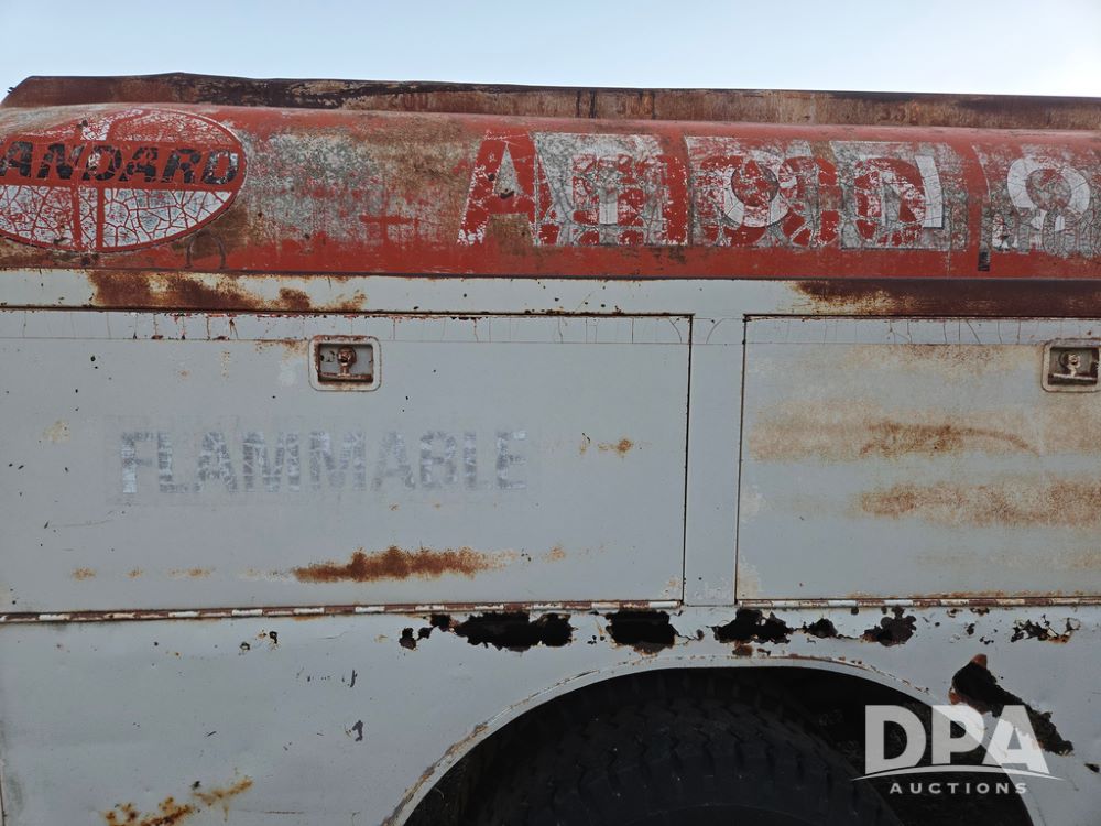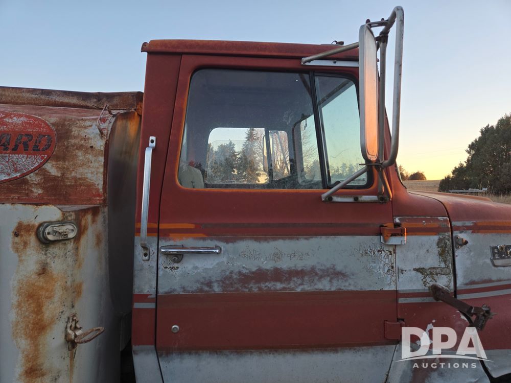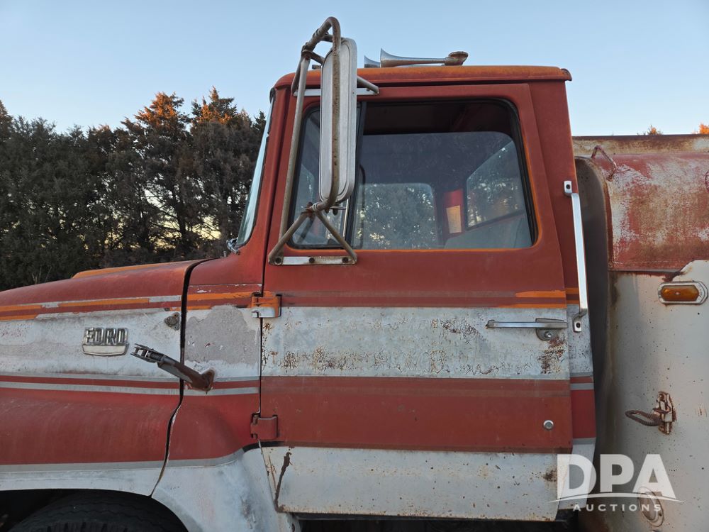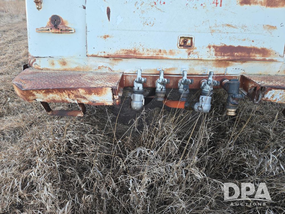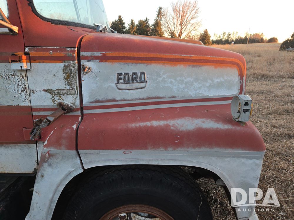 1971 Ford LN 750 S/A Fuel Truck (KS0105), 361 gas motor, 5 speed manual transmission, 2 speed rear axle, PTO, Dayton hubs, air brakes, air park brakes, dual fuel tanks, 10.00/20 tires, fuel body: 5 tanks totaling 1500 gallon, (1) 500 gallon, (1) 350 gallon, (1) 300 gallon, (1) 200 gallon, (1) 150 gallon, dual manual hose reels, only 1 with hose, PTO driven pump with meter.