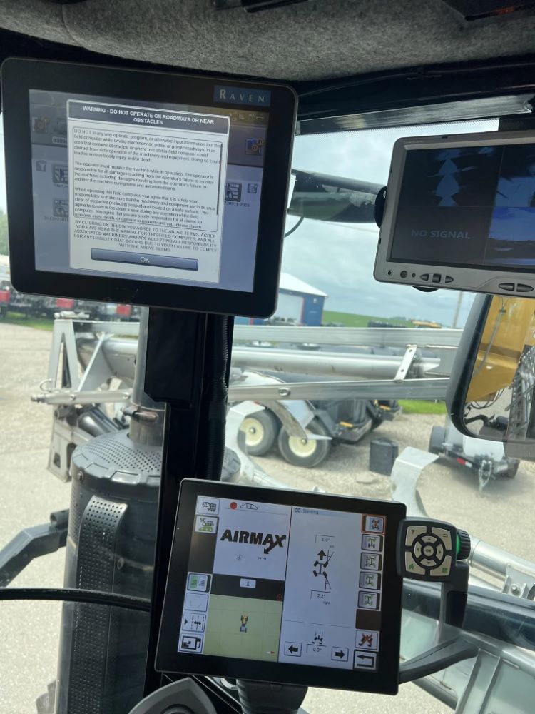 2020 RoGator 1300C Dry Air Flow Machine (PZ14497), AGCO diesel engine, hydro transmission, A/C & heat, leather heated seat, buddy seat, beacon lights, advanced cab, Airmax Precision R2 dry air flow system, New 70' aluminum boom, New booms were installed Per AGCO warranty, hydraulic boom tip fold, 6" box extensions, electric roll tarp, Michelin Spraybib VF 380/90R46 tires, fenders, Dakota 9" cab camera, Raven auto steer, Raven RS1 GPS receiver, Raven Viper 4+ monitor, shows 1,435 hours. Has been through our shop and All engine oils and filters are new, hub oils flushed and changed, Hyd filters replaced, New Air Dryer, Tarp rollers, springs, cables, so tarp system has been rebuilt, cab cleaned and detained, you could eat off the floor...just how we do things, unit is greased, all the yellow paint has been buffed, all controllers, air system and auto steering / GPS all function as they should, very clean machine!