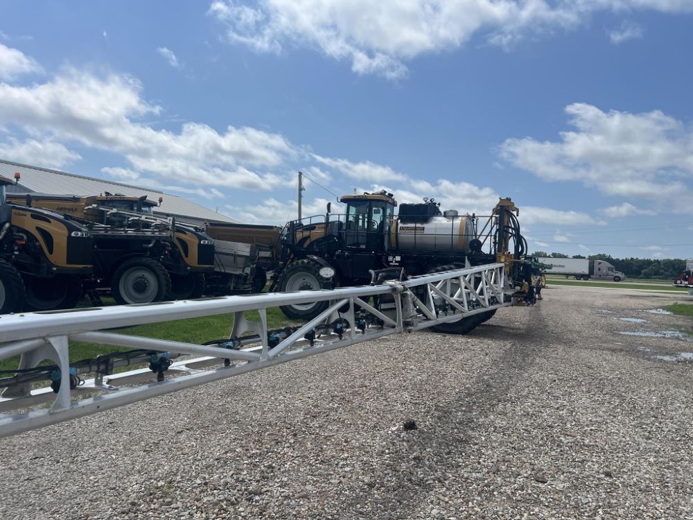2019 RoGator 1100C Sprayer (PZ14499), AGCO 311 hp diesel engine, hydrostatic transmission, a/c & heat, Am/Fm CD Bluetooth radio, leather seat, buddy seat, advanced cab, 1100 gallon stainless steel liquid system, Millenniu 132' aluminum boom, 19" spacing, ClearFlow product recovery boom clean out SV, top poly rinse tank, poly chemical inductor, Titan 480/80R42 tires, fenders, Capstan Pin Point 2 system, Raven Viper 4+ monitor, shows 2,144 hours, all oils and filters changed, hub oils drained, inspected and replaced with Syn oil. A few minor cracks on the boom was repaired by our certified welder, machine has been spray tested and everything functions as it should, A/C serviced, winterized, will be checked over in our shop before it leaves making sure controller, Gps & Liquid system all function as they should