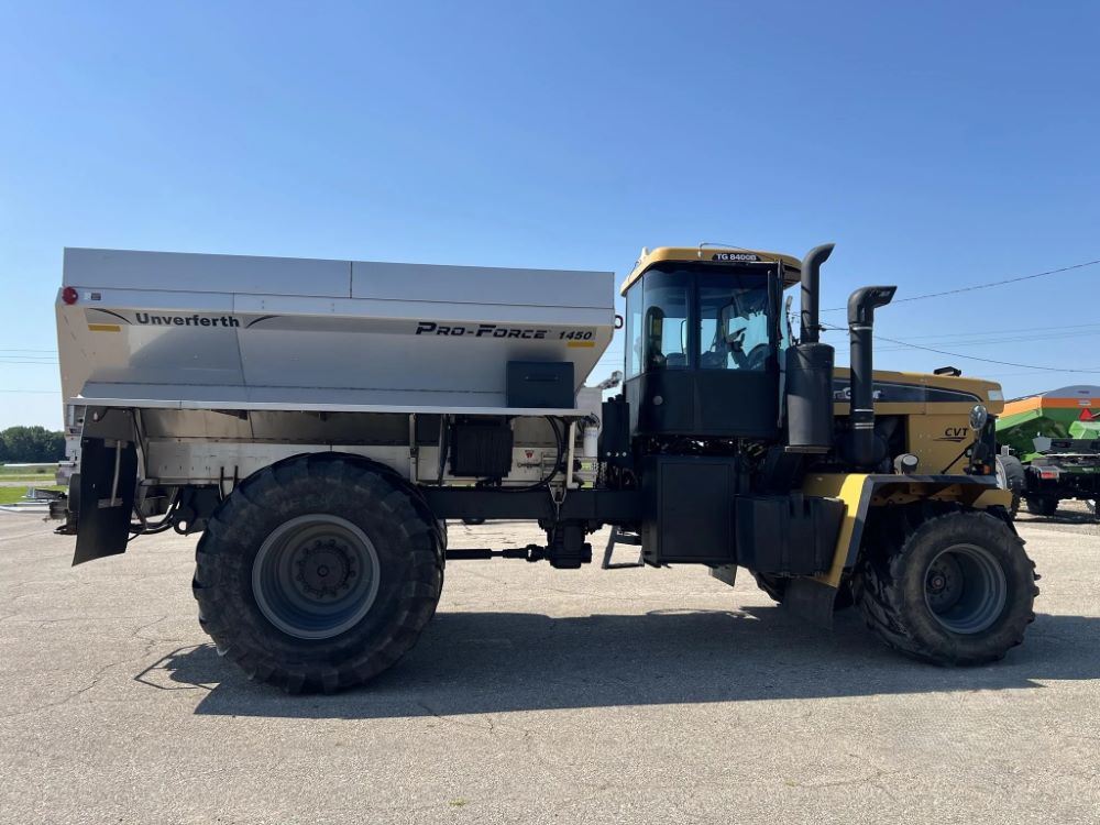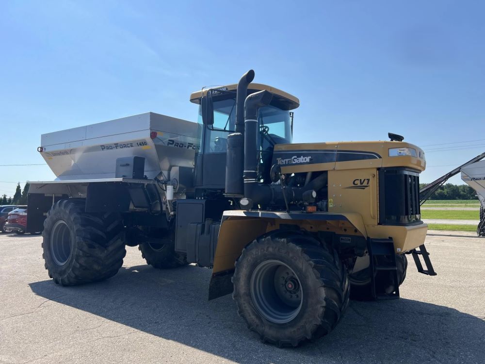 2017 Terra Gator 8400B Dry Floater (PZ14500), AGCO diesel engine, CVT transmission, air conditioning, heat, Am/Fm CD radio, leather seat, buddy seat, Full recon chassis, was not rusty- just policy here when a chassis gets a new system we blast, prime and rynoline everything cab back, front steps, rub out the paint & detail the machine inside & out. Hub oils have been drained & flushed, oil is inspected and new synthetic Brand New Unverferth Pro-Force 1450 stainless steel dry spreader, twin 30" 6 blade spinners, all hydraulic, New hydraulic pump, new bed wiring for the controller Good Year Optitorque 750/50R26 front tires, Michelin Mega X Bib 1050/50R32 rear tires, Raven Viper 4+ monitor & Smart trax auto steering! shows 2,609 hours.. Everything works as it should,