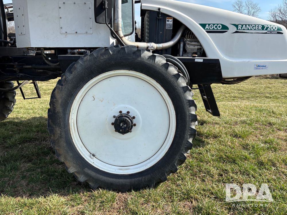 Willmar Ranger 7200 Sprayer (LLD1700), 5.9 Cummins diesel engine, 80 foot boom, 20 inch nozzle spacing, 600 gallon stainless steel tank, stainless steel wet booms, 12.4 x 42 tires, 1 spare tire, shows 3,185 hours.