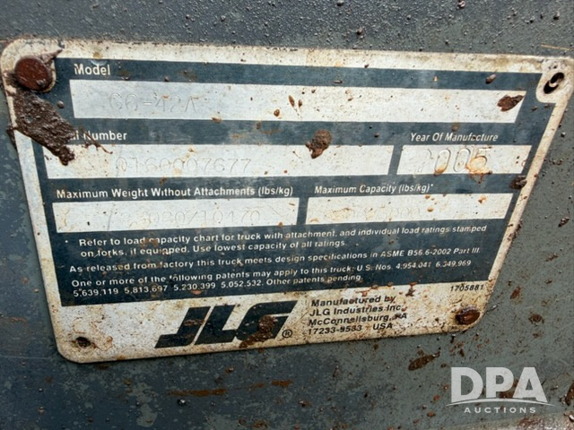 2005 JLG G6-42A Telehandler (NJP532), Cummins engine, powershift transmission, 42ft max lift height, approximately 8,000 hours.